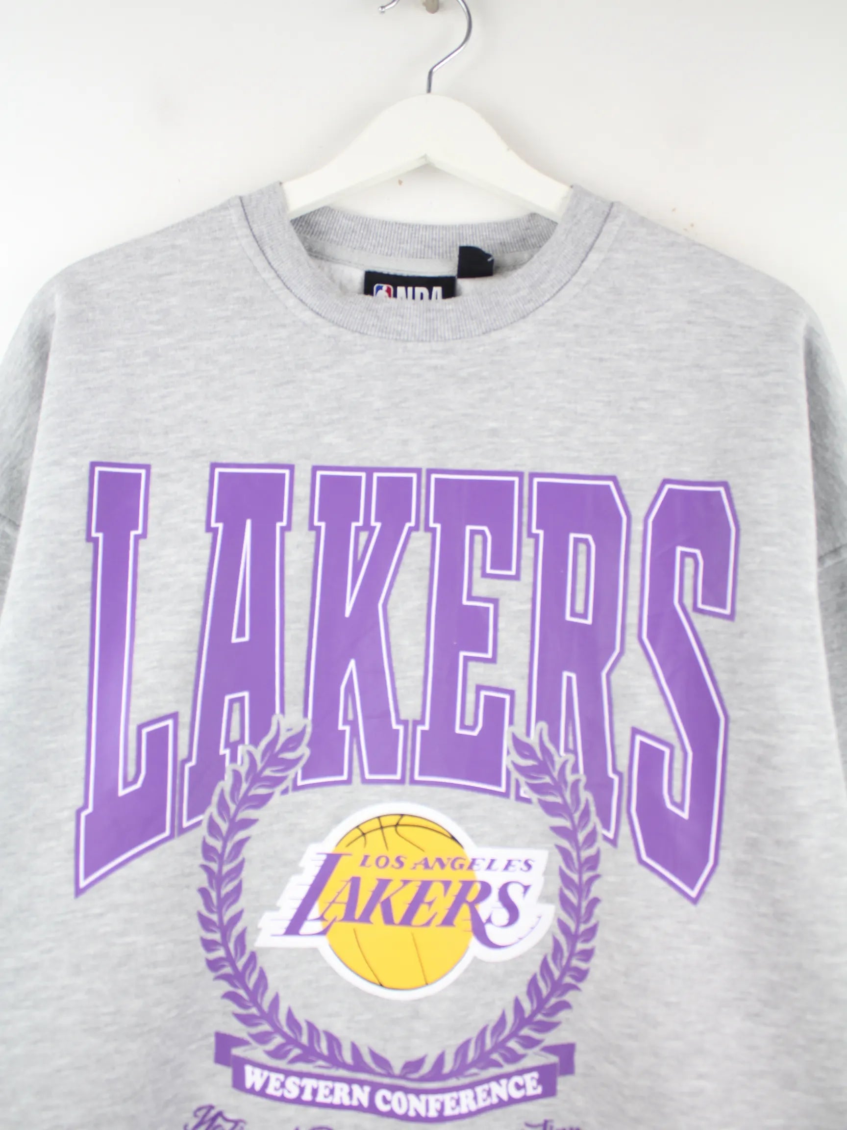 Sweater von NBA in Größe S. Er ist aus einer Baumwollmischung gemacht und in Grau im Angebot. Mit seltenem Lakers Print.