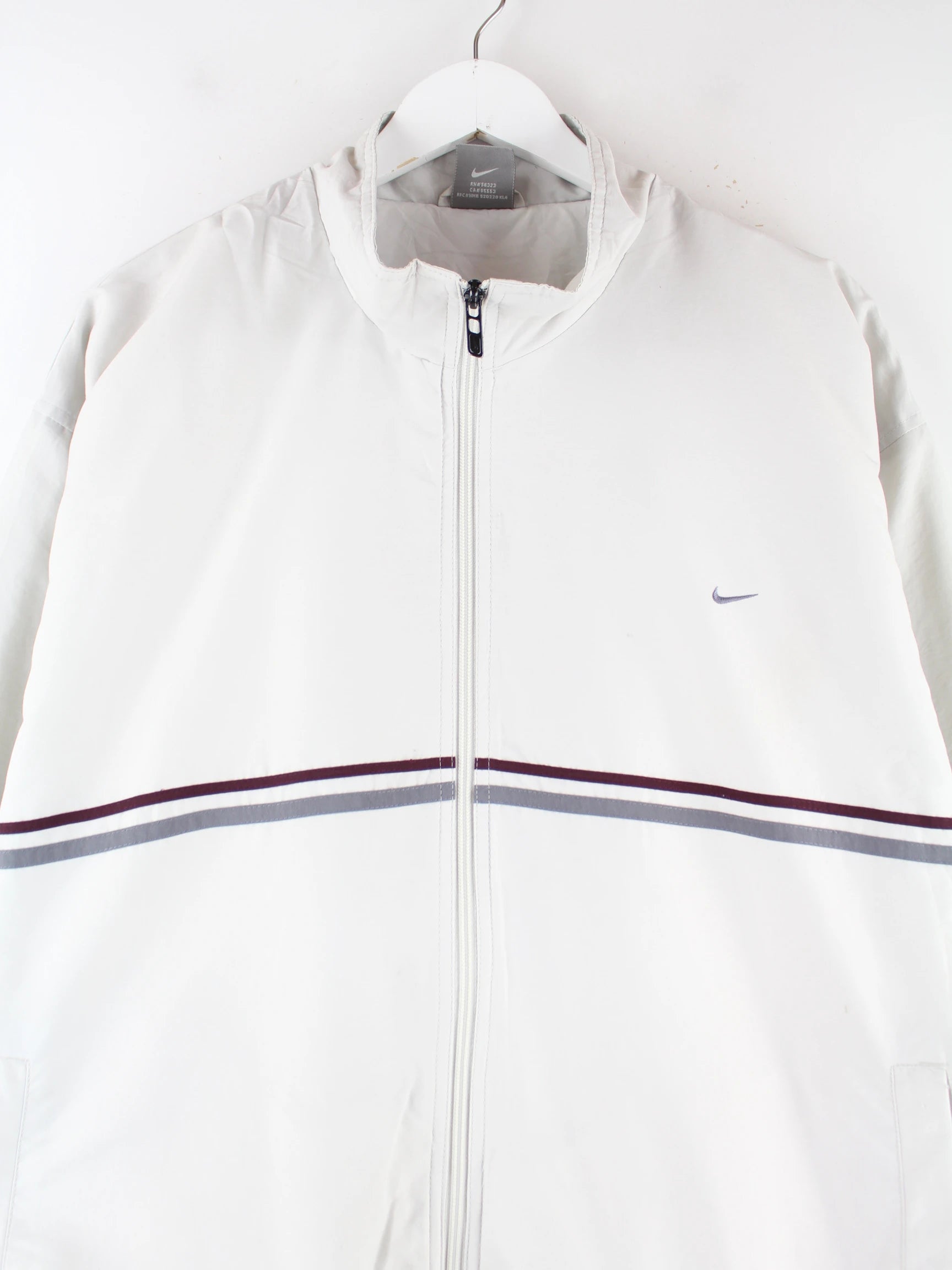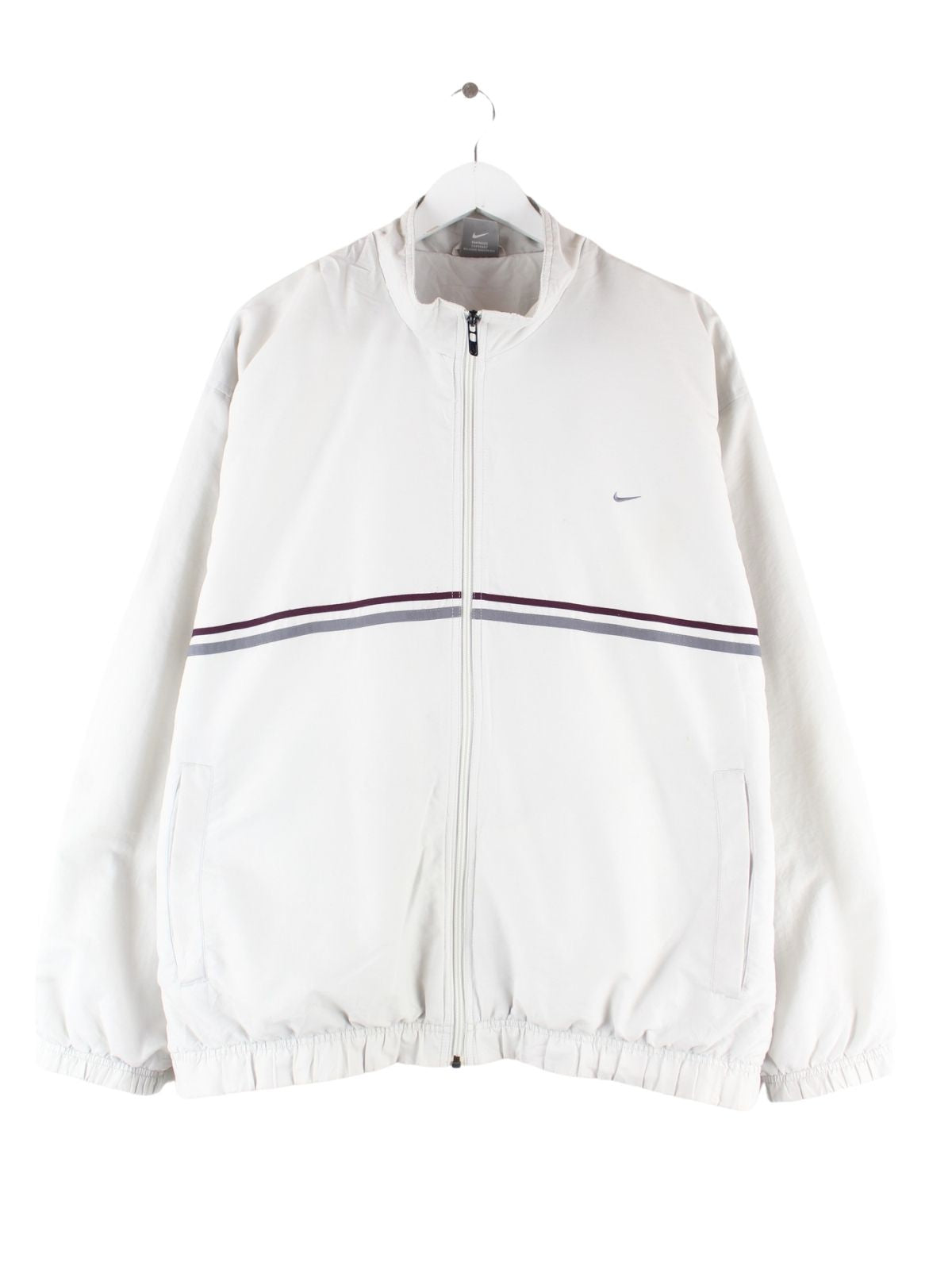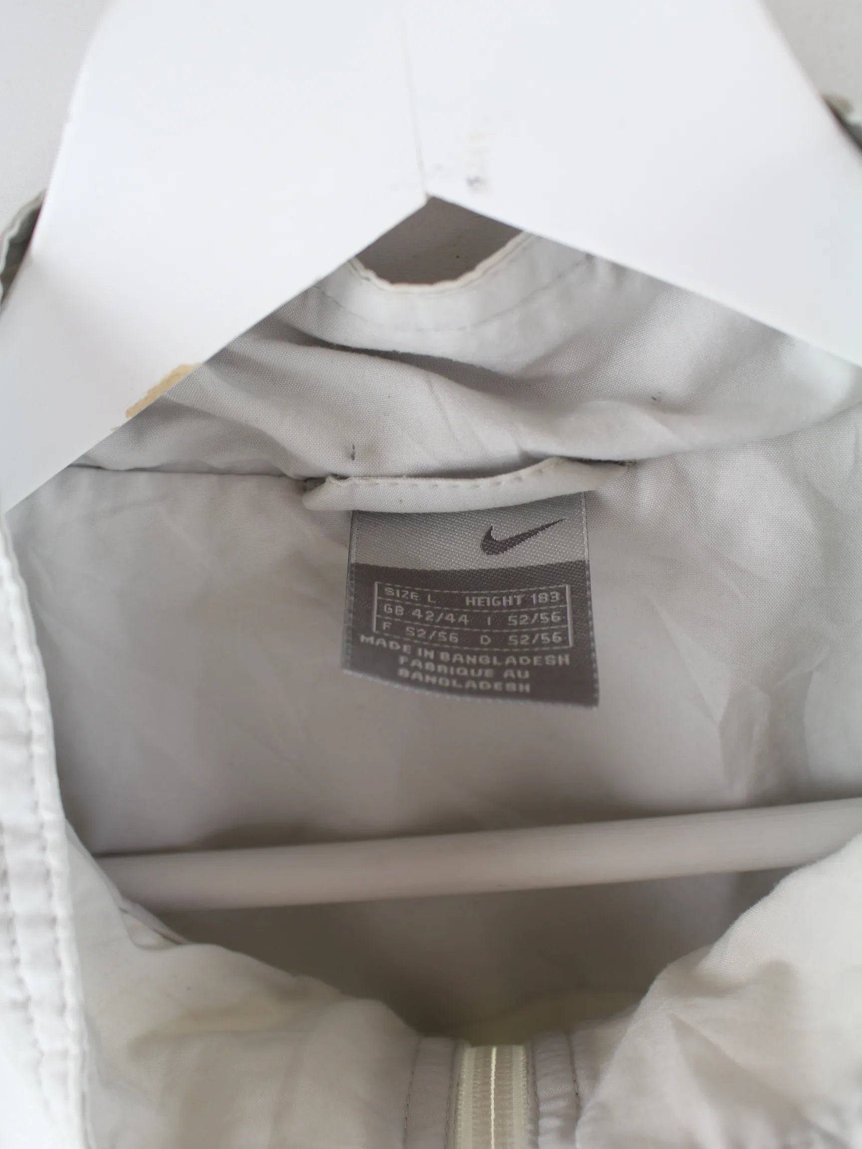 Graue Trainingsjacke vom Brand Nike in Größe L. Sie ist aus Synthetik angefertigt. Den Zustand würden wir als 'In Ordnung' bezeichnen (vergl. Bilder).