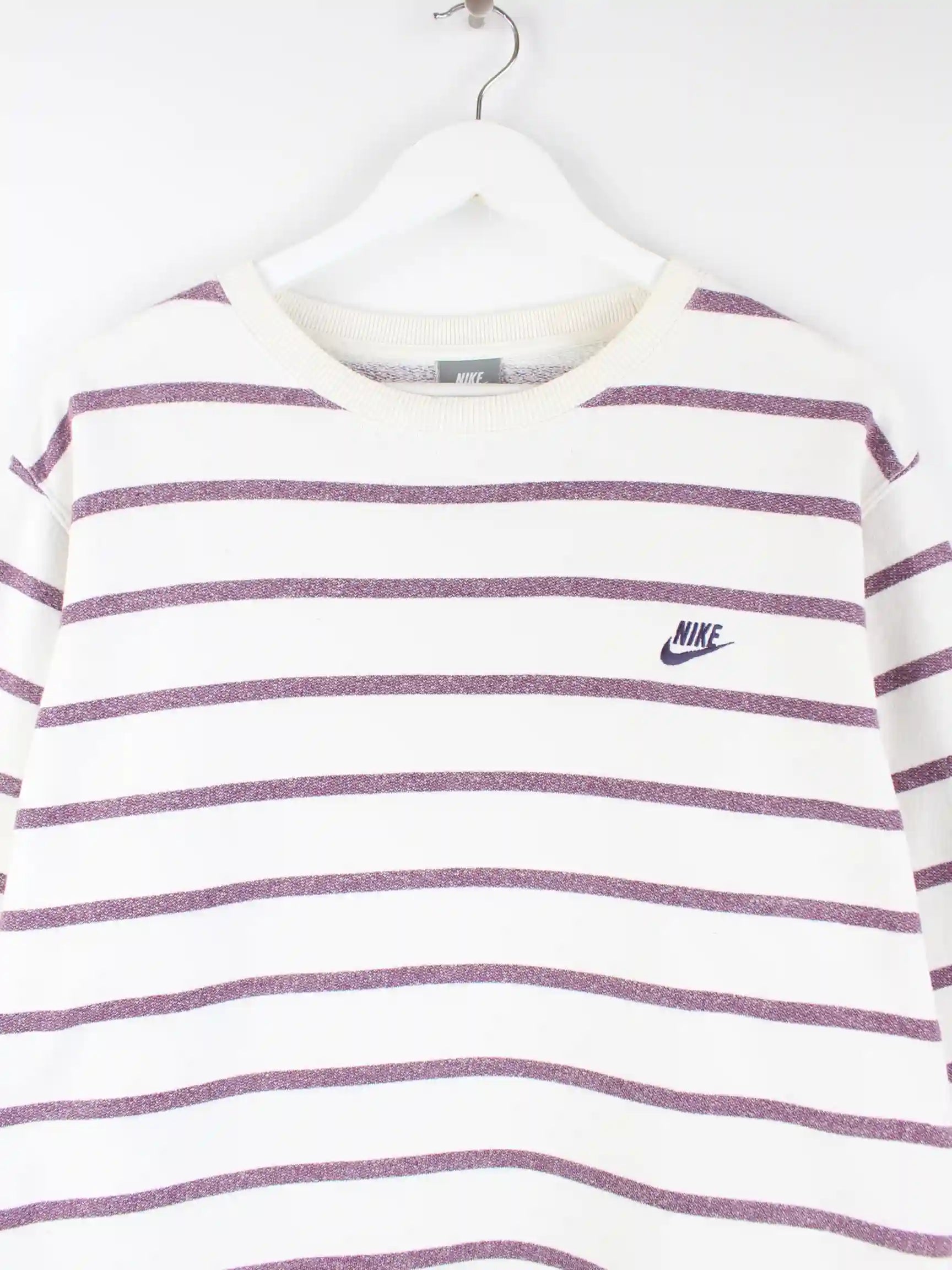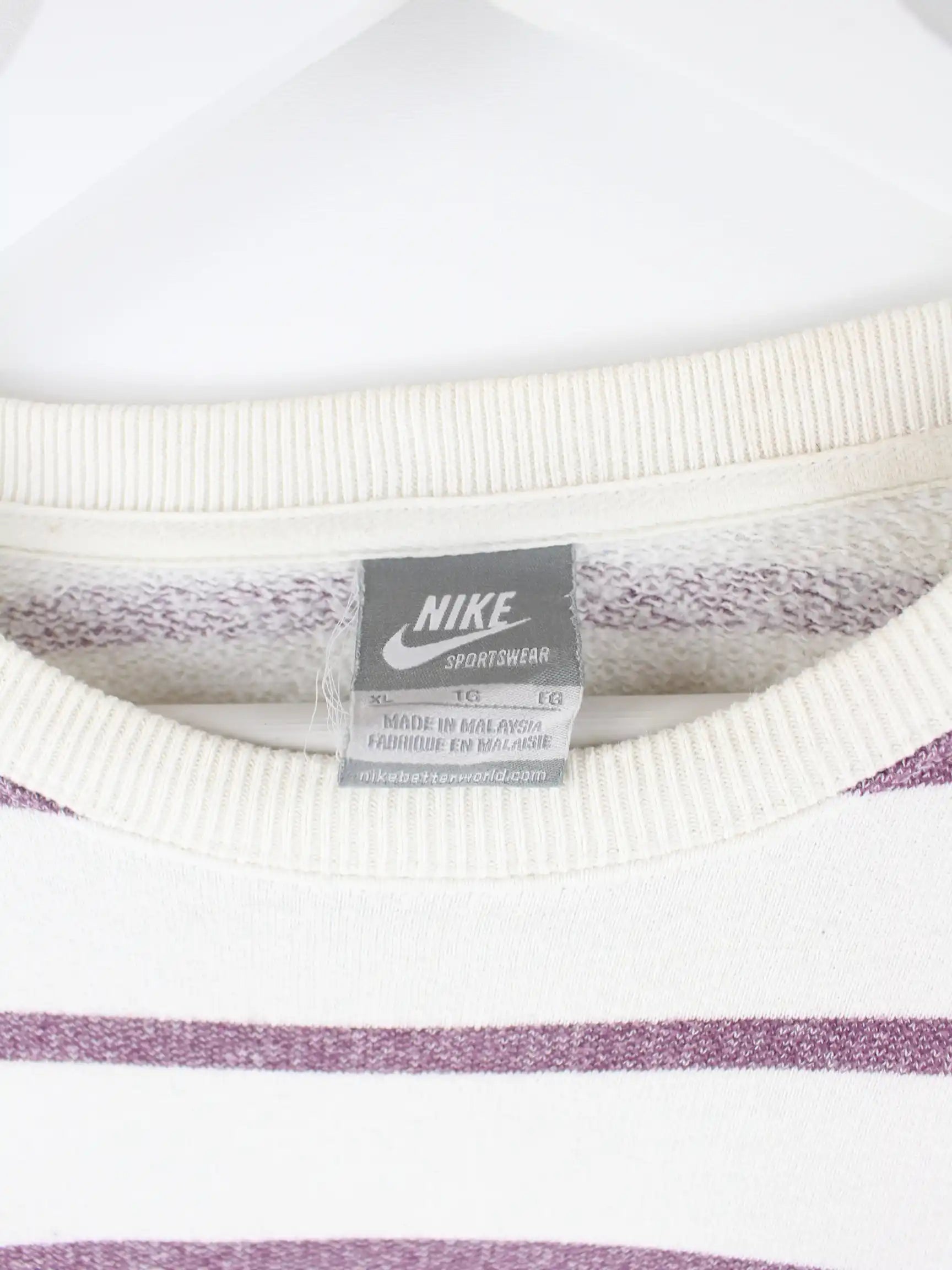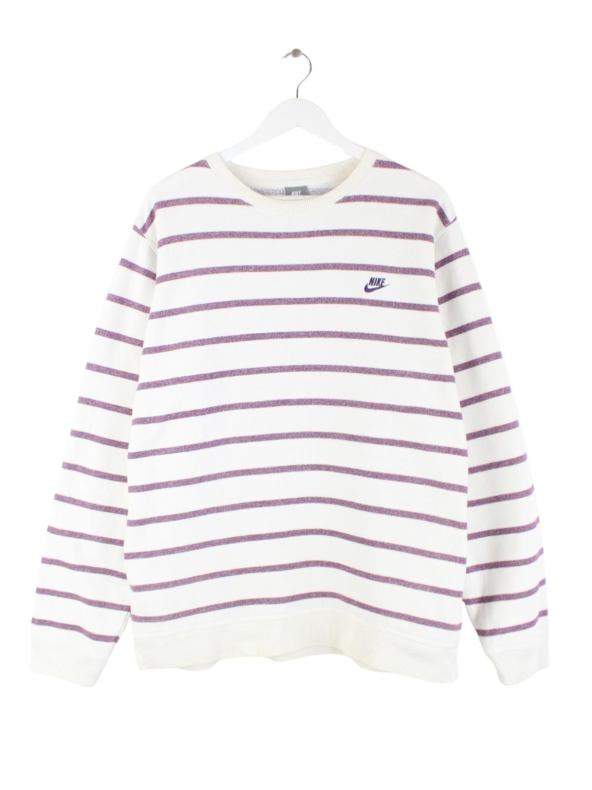 Weißer gestreifter Sweater von Nike in Größe XL aus den 2000er Jahren. Er ist aus einer Baumwollmischung hergestellt und in gutem Zustand lieferbar.