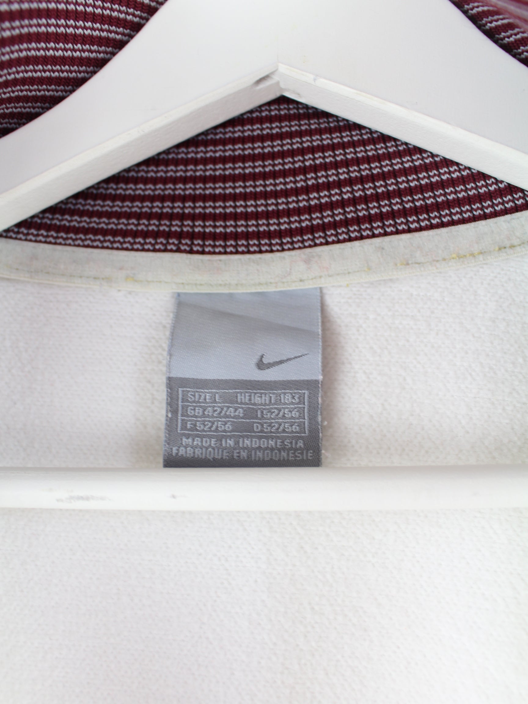 Trainingsjacke aus dem Hause Nike in Größe L. Sie ist aus einer Baumwollmischung angefertigt und in Weiß zu bekommen.