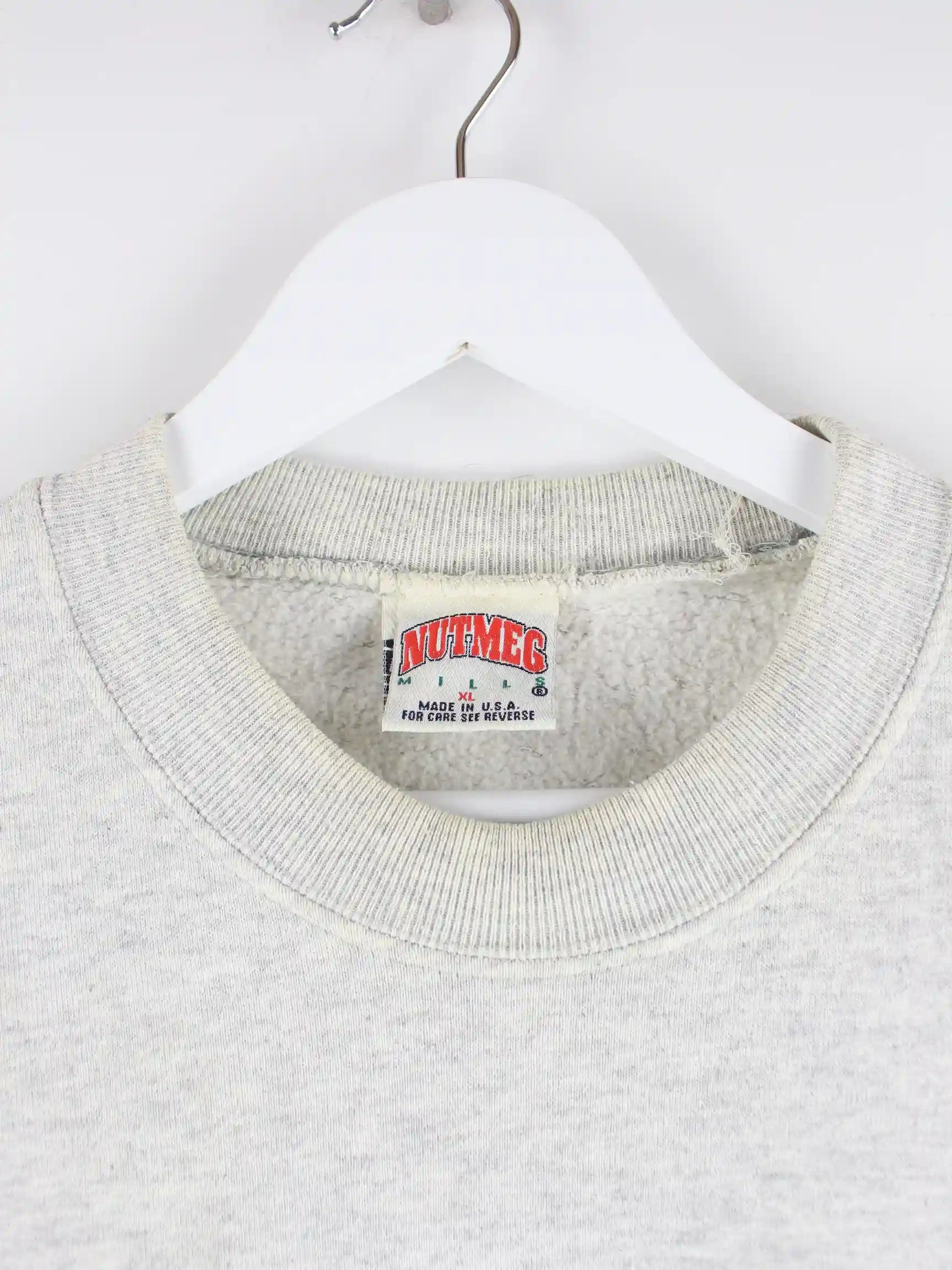 Sweater aus dem Hause Nutmeg in Größe XL aus den 90'ern. Er ist aus einer Baumwollmischung hergestellt und in Grau zu bekommen.