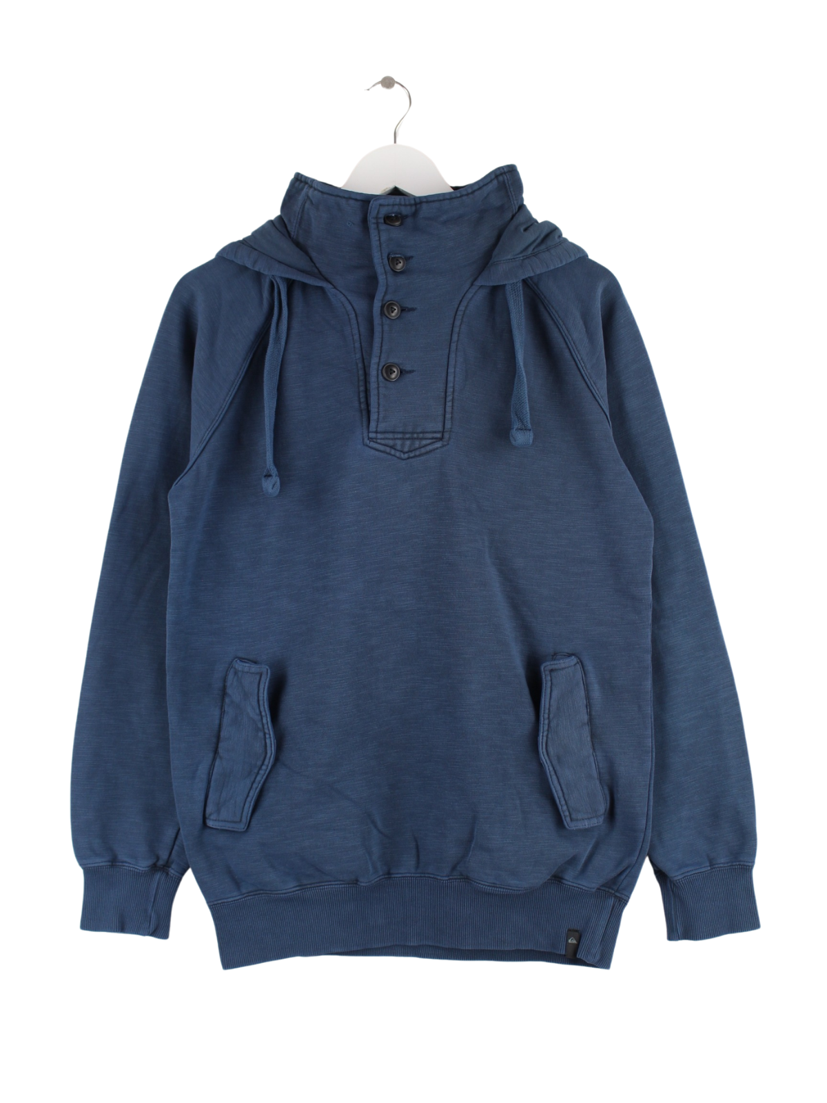 Blauer Hoodie der Brand Quiksilver in Größe S. Er ist aus einer Baumwollmischung gemacht und in gutem Zustand lieferbar.