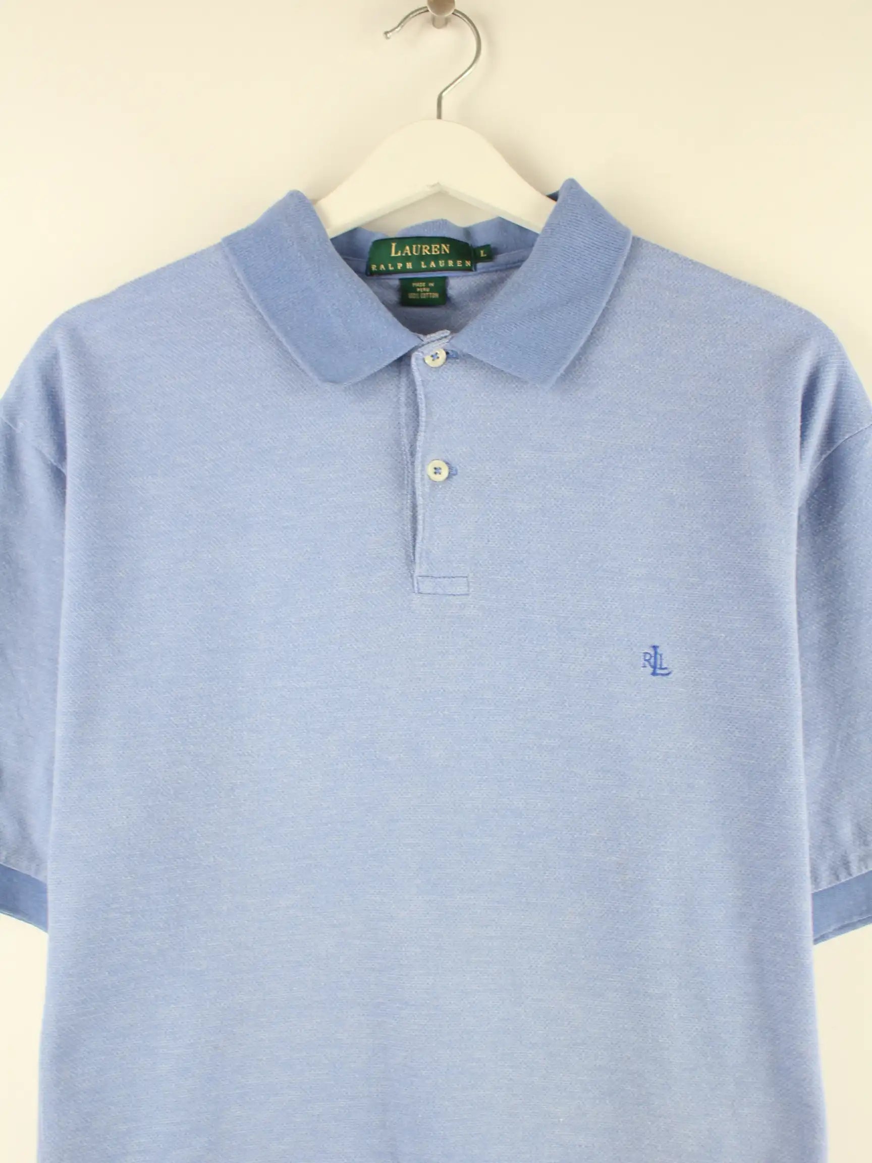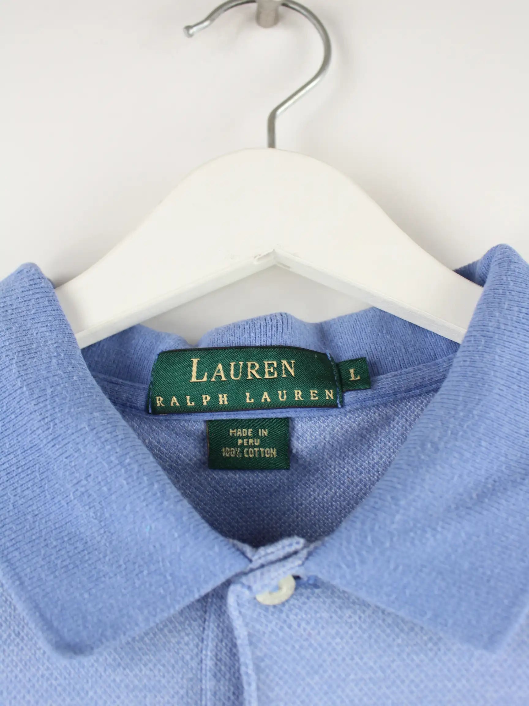 Blaues Poloshirt vom Label Ralph Lauren in Größe L. Es ist aus Baumwolle angefertigt und in sehr gutem Zustand zu bekommen.