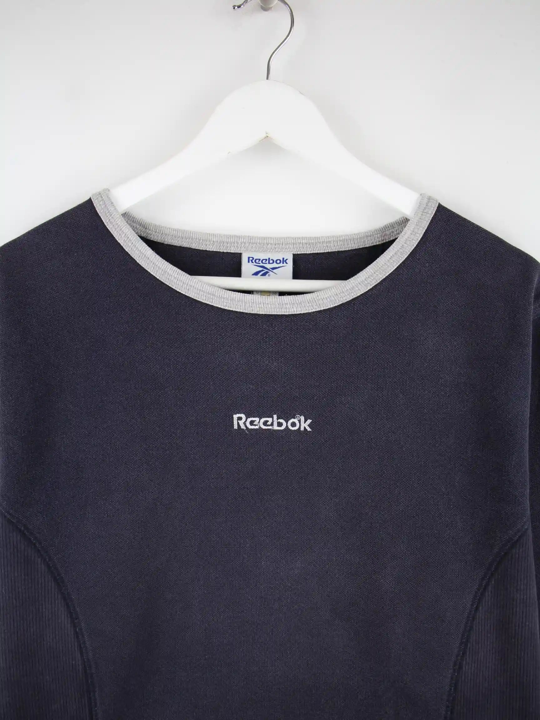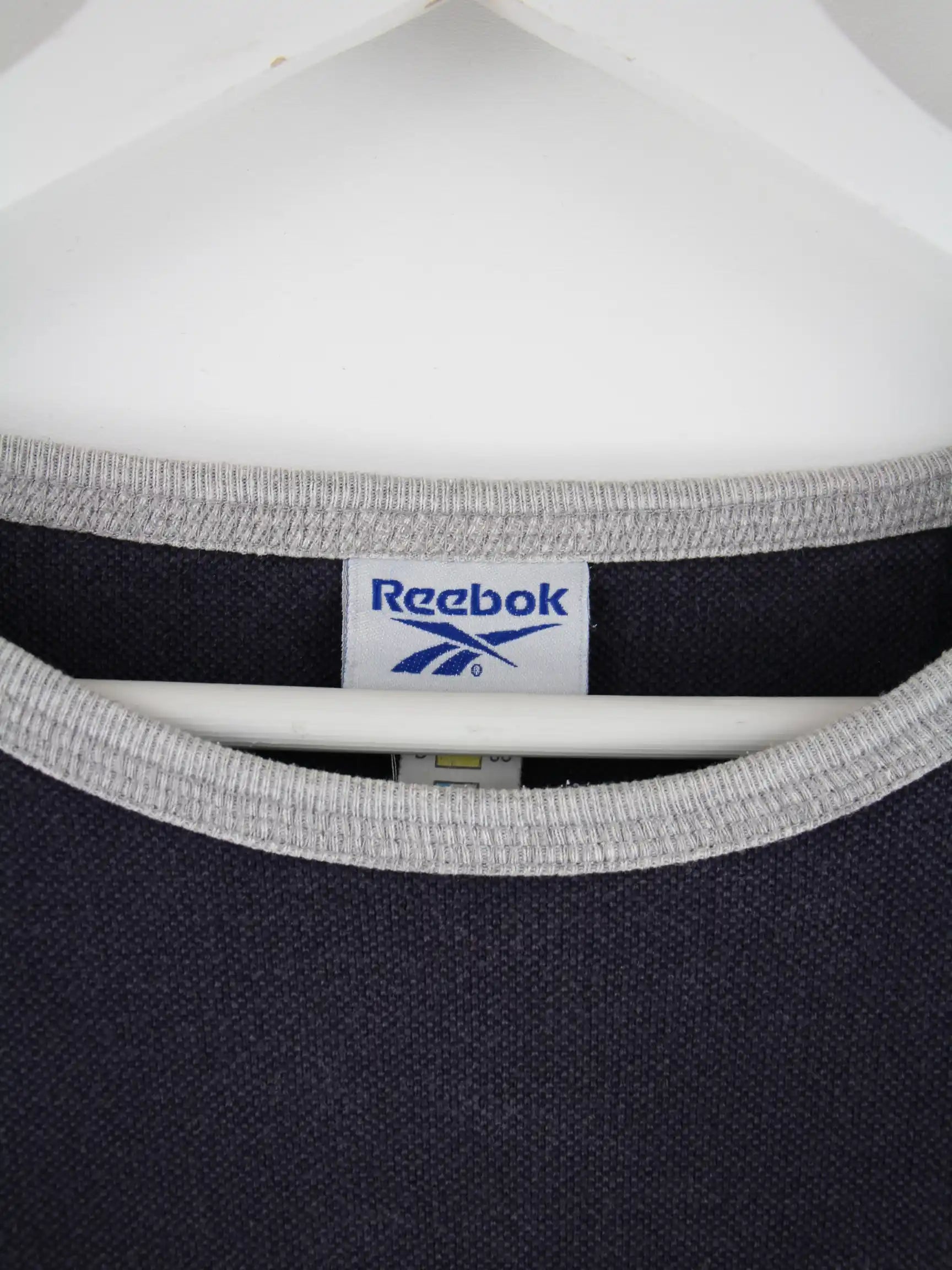 Blauer Sweater des Labels Reebok in Größe M. Er ist aus einer Baumwollmischung . Den Zustand würden wir als 'In Ordnung' bezeichnen (vergl. Bilder).