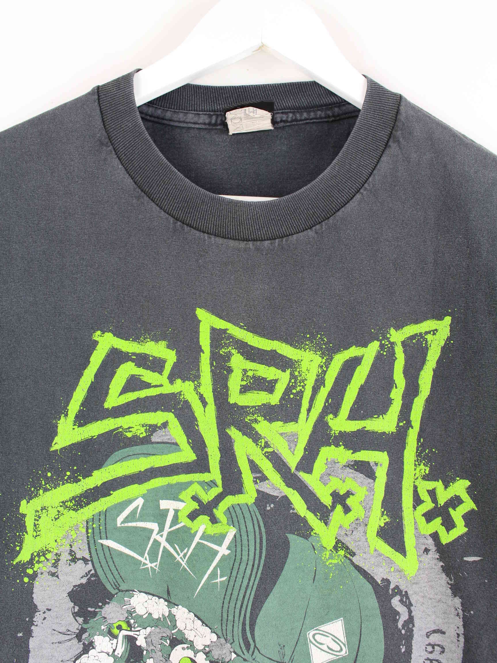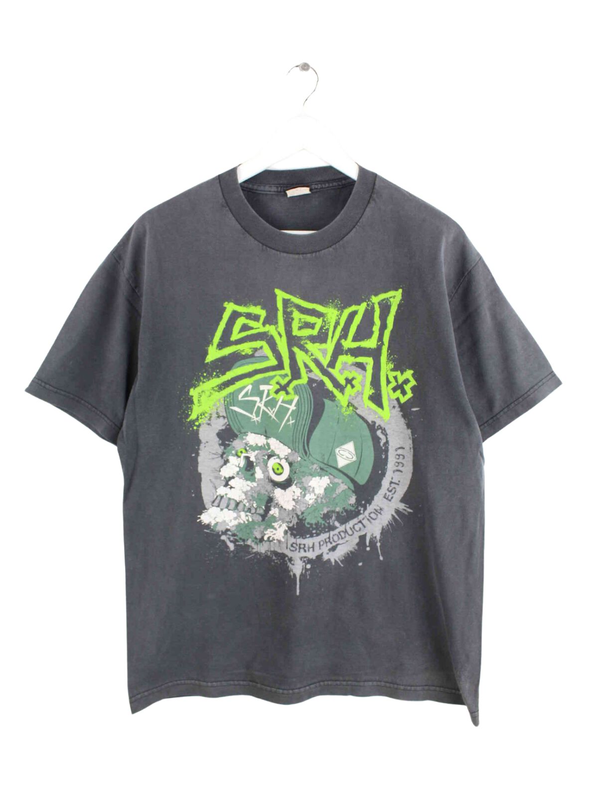 Graues T-Shirt vom Label SRH aus Anfang der 2000'er in Größe L. Es ist aus Baumwolle gefertigt und in sehr gutem Zustand vorrätig. Mit schönem y2k Print.