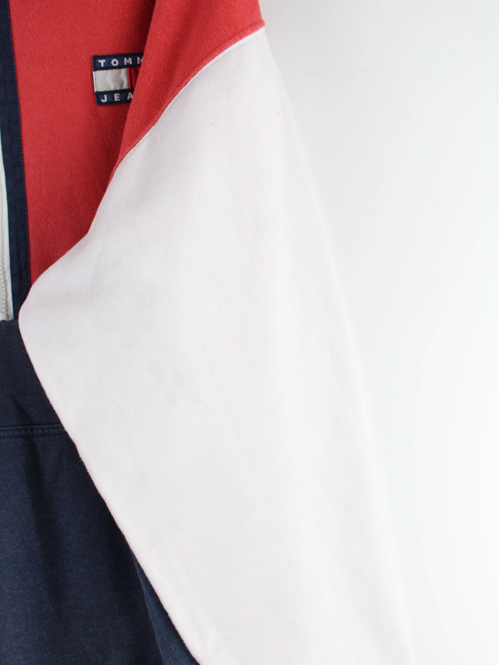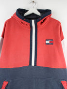 Roter Hoodie mit half Zip der Marke Tommy Hilfiger in Größe XL. Er ist aus einer Baumwollmischung gefertigt. Den Zustand würden wir als 'In Ordnung' bezeichnen (vergl. Bilder).