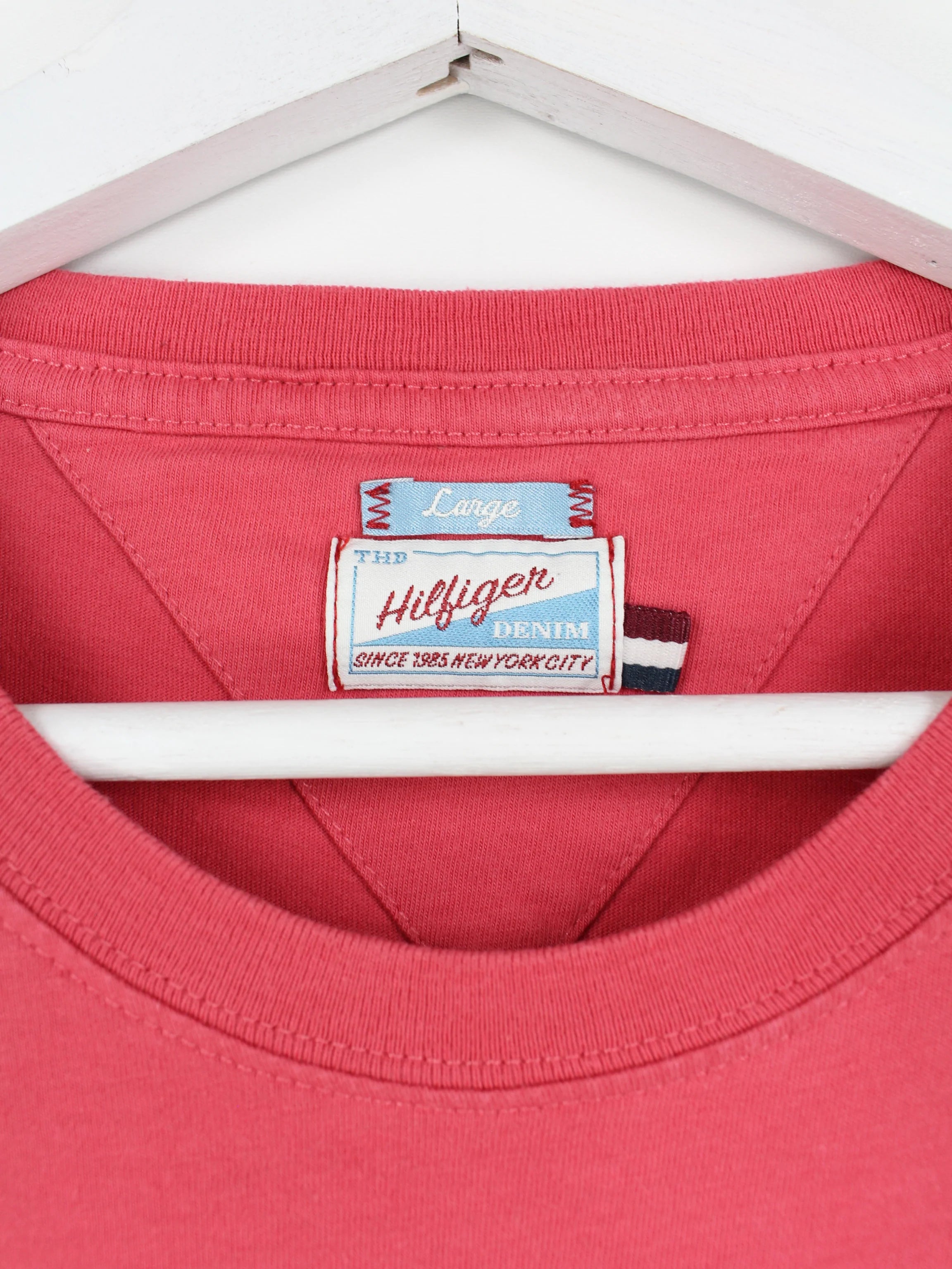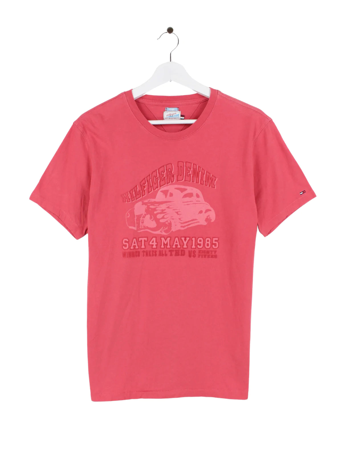 Rotes Tommy Hilfiger T-Shirt mitb Oldtimer Print.