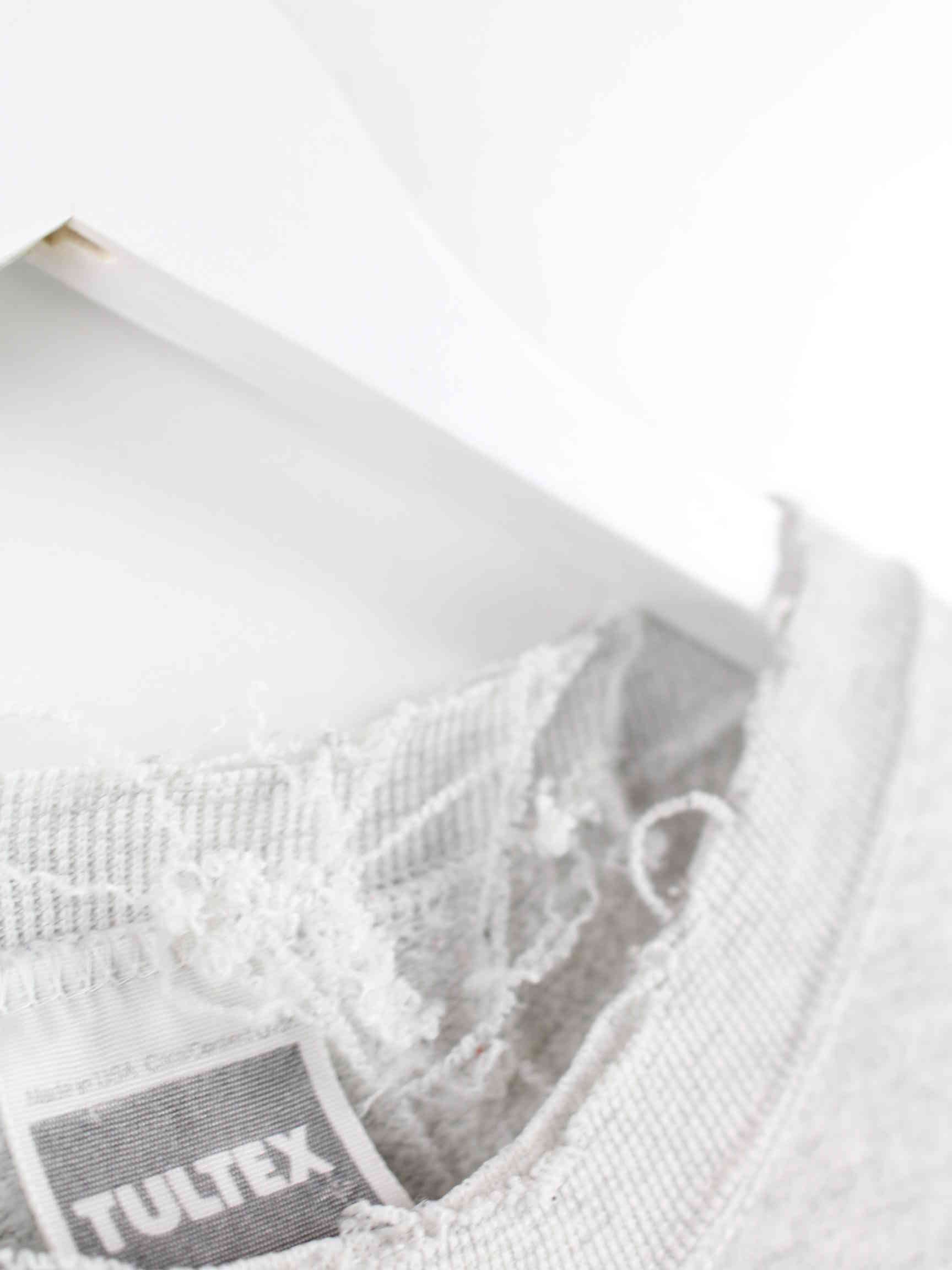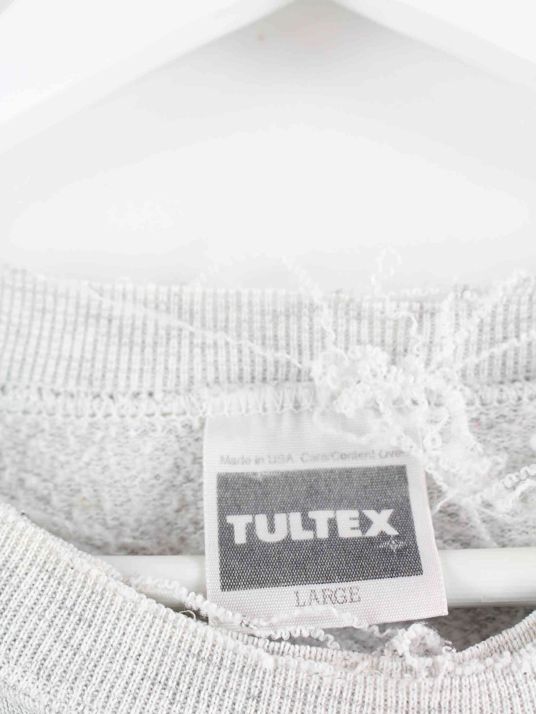 Grauer Sweater der Brand Tultex aus den 90'ern in Größe M. Er ist aus einer Baumwollmischung produziert. Den Zustand würden wir als 'In Ordnung' bezeichnen (vergl. Bilder).Mit seltenem Vintage Print.