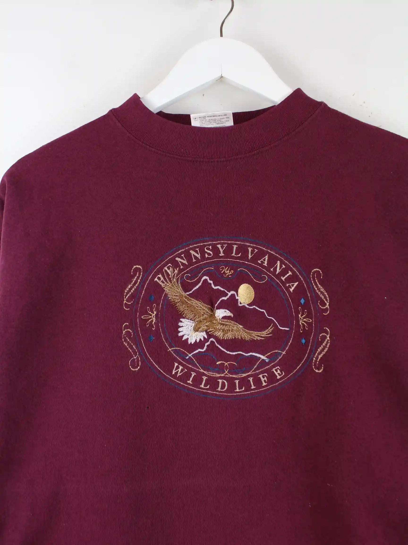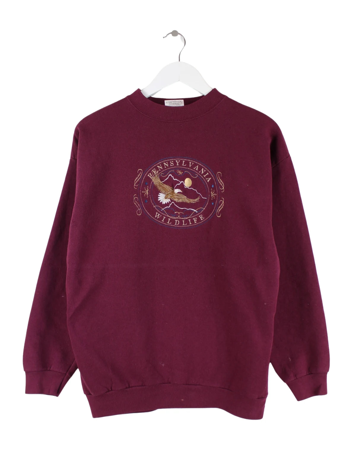 Tultex Damen 90s Vintage Wlldlife Embroidered Sweater Rot L