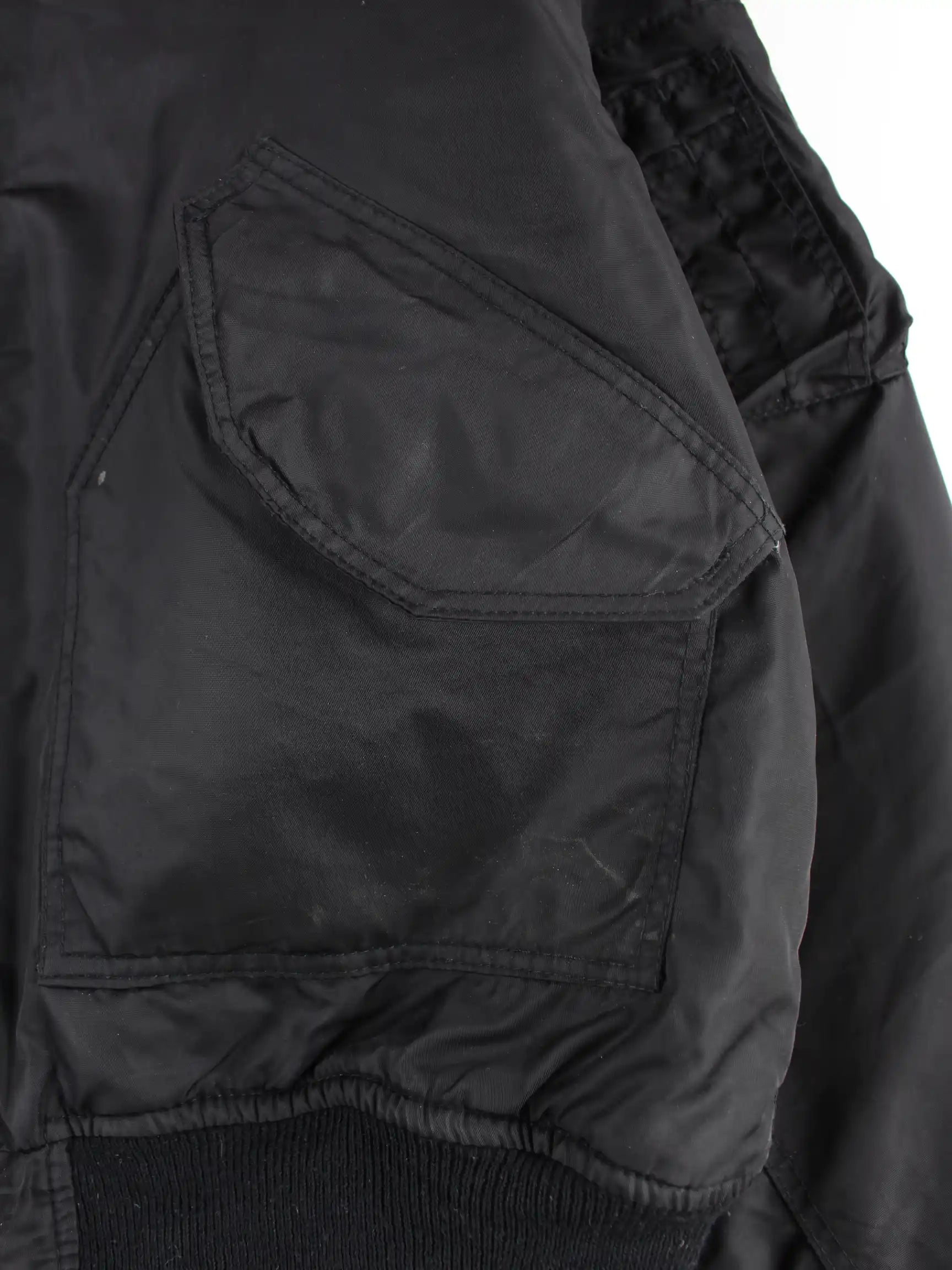 Schwarze Vintage Jacke in Größe XL. Sie ist aus Synthetik . Den Zustand würden wir als 'In Ordnung' bezeichnen (vergl. Bilder).
