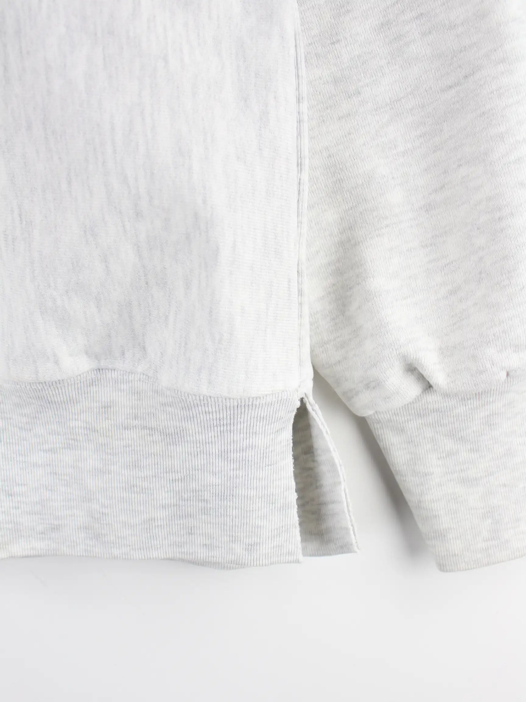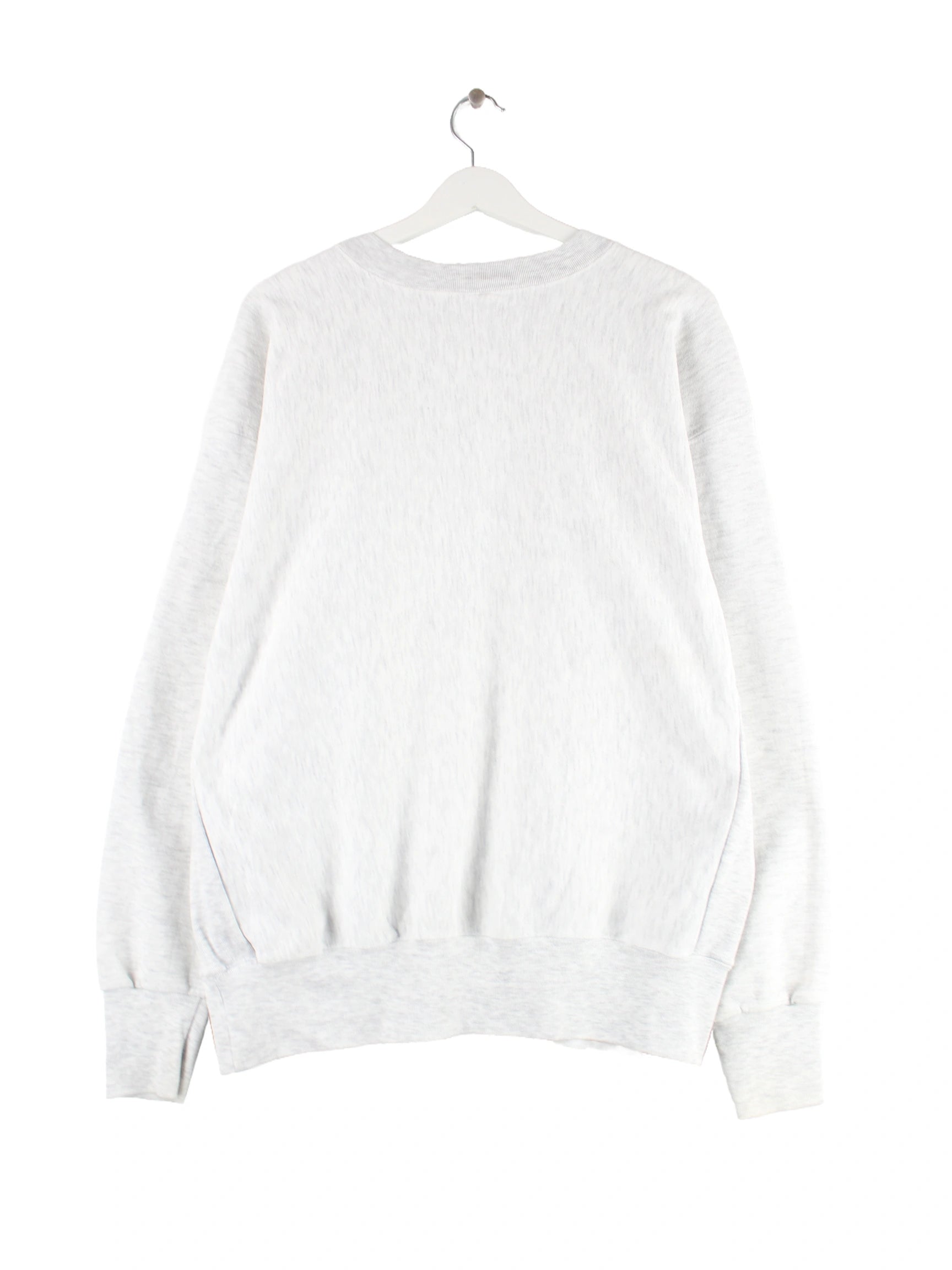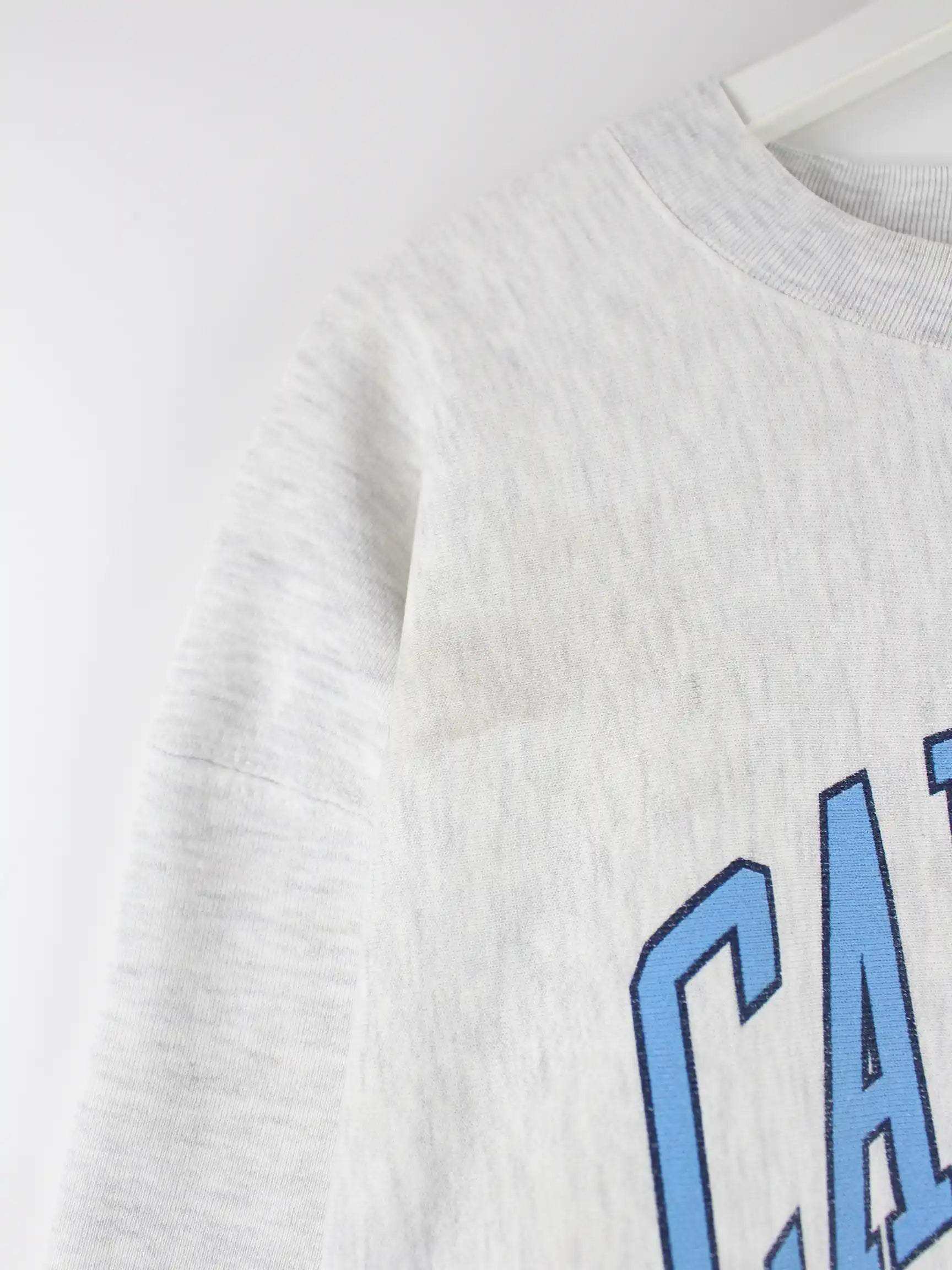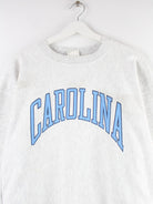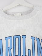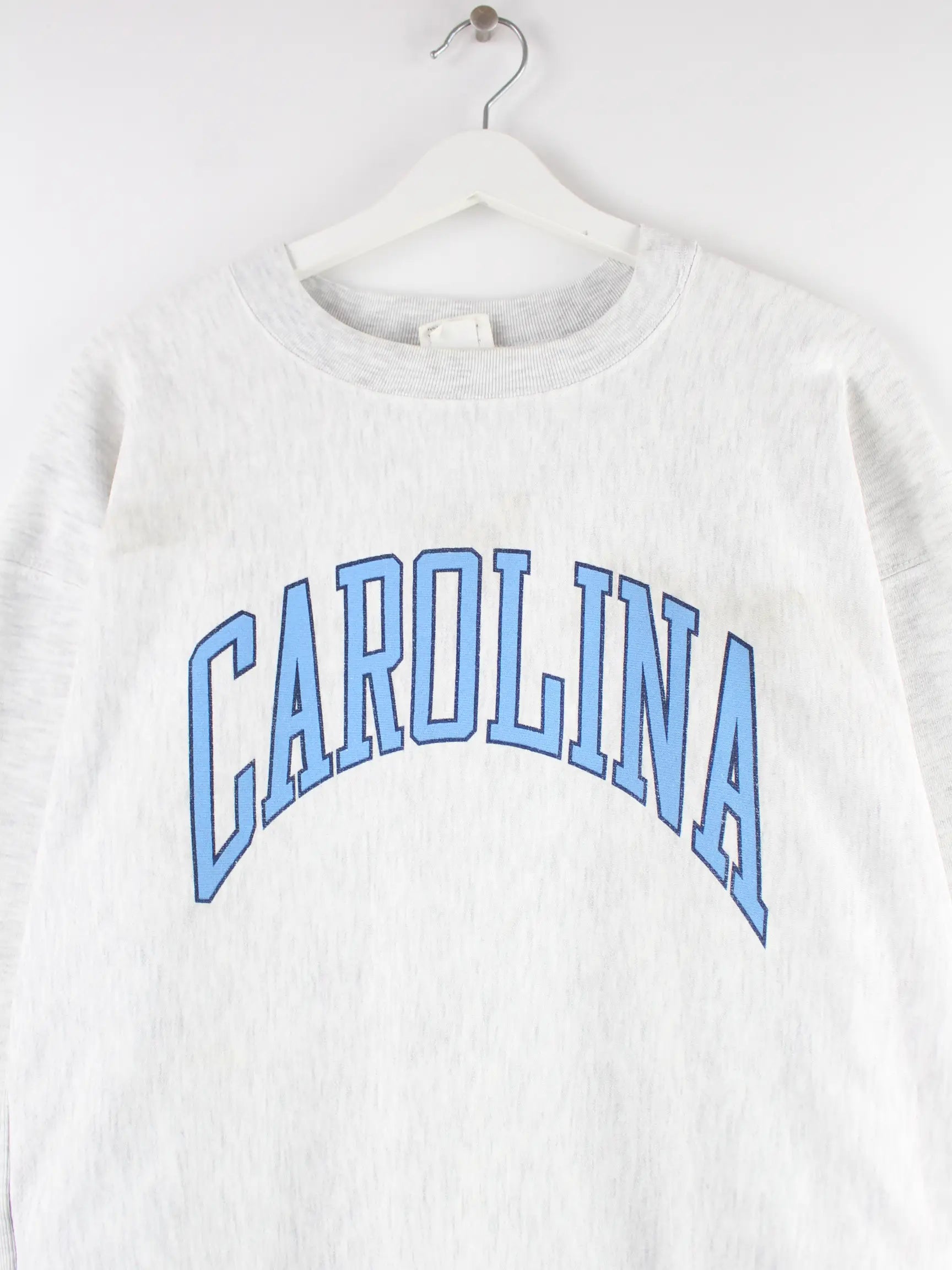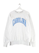 Vintage Sweater in Größe XL. Er ist aus einer Baumwollmischung gemacht und in Grau bei uns zu bekommen. Mit tollem Carolina Print.