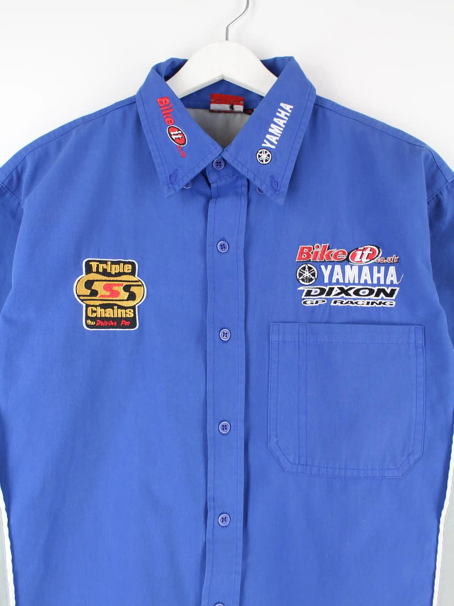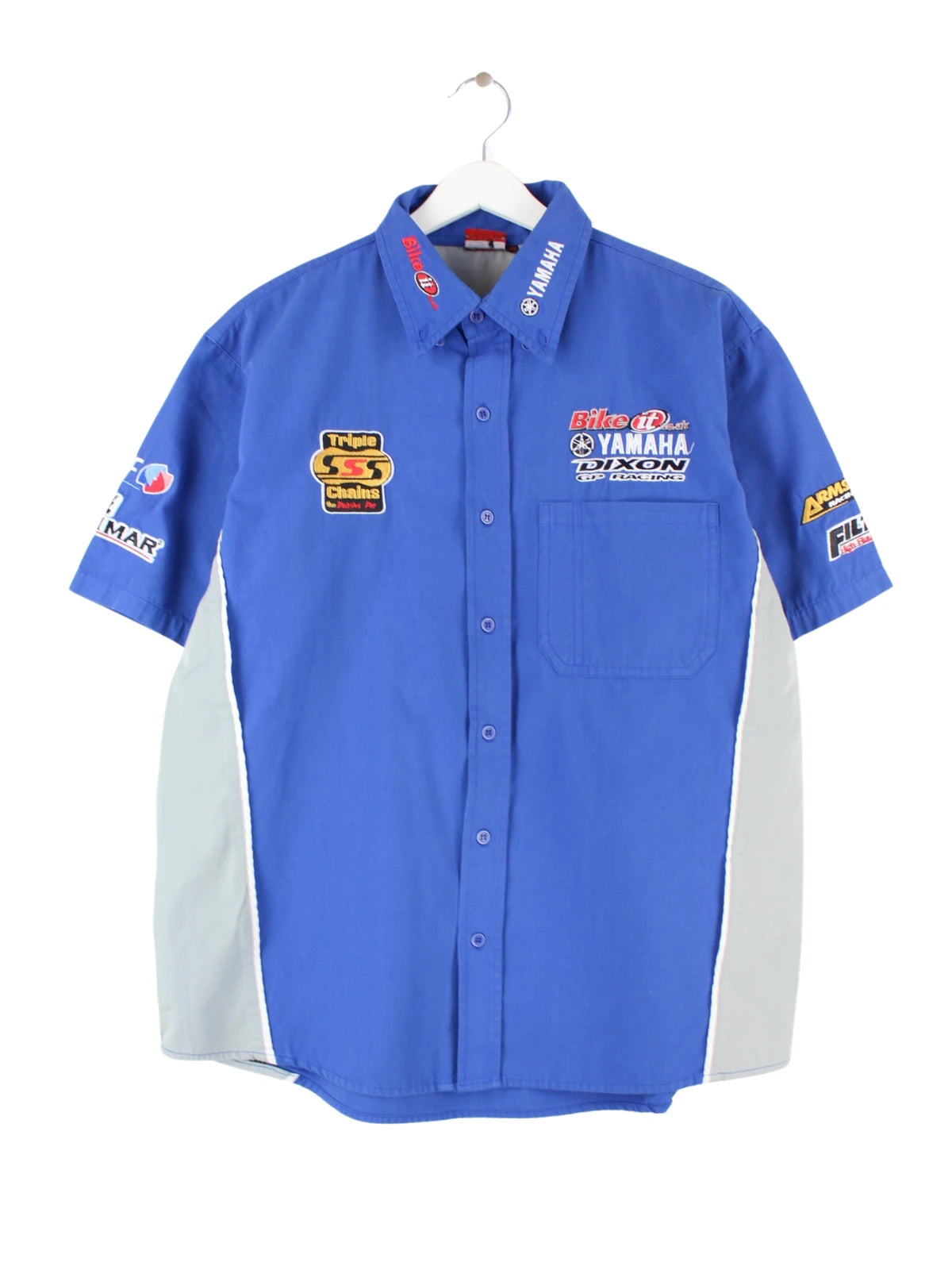 Vintage 00s Racing Kurzarm Hemd Blau M