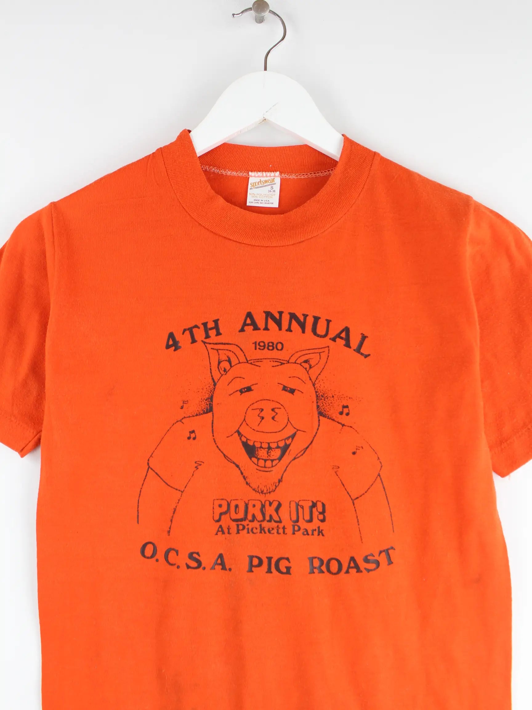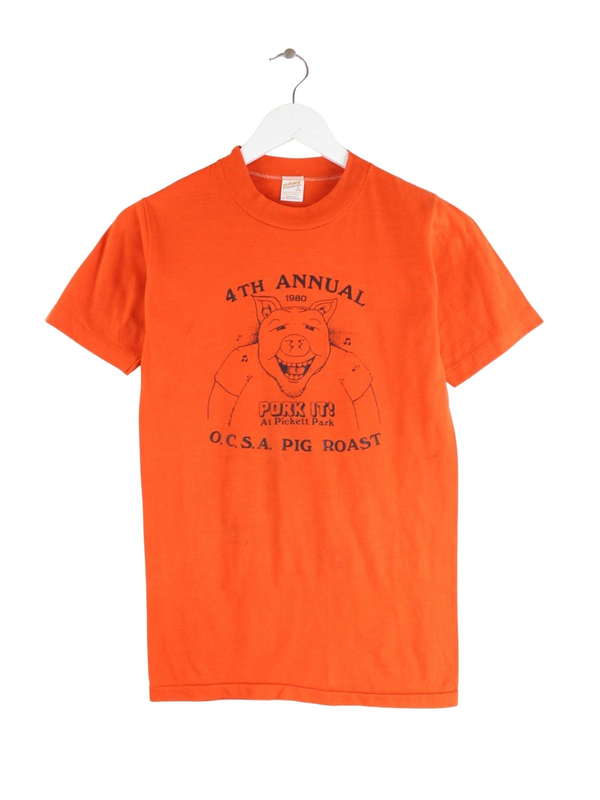 Vintage 1980 Pork It Print Single Stitch T-Shirt Orange S
