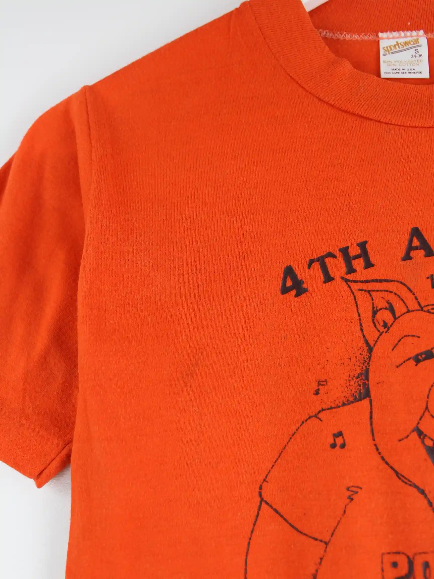 Vintage T-Shirt in Größe S. Es ist aus einer Baumwollmischung produziert und in Orange in Stock. Mit tollem It Print.