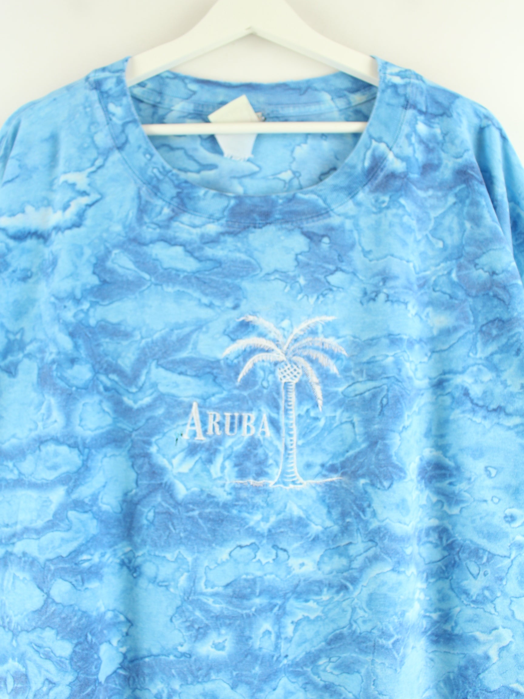 Vintage 80s Vintage Embroidered Tie Dye Single Stitch T-Shirt Blau 3XL