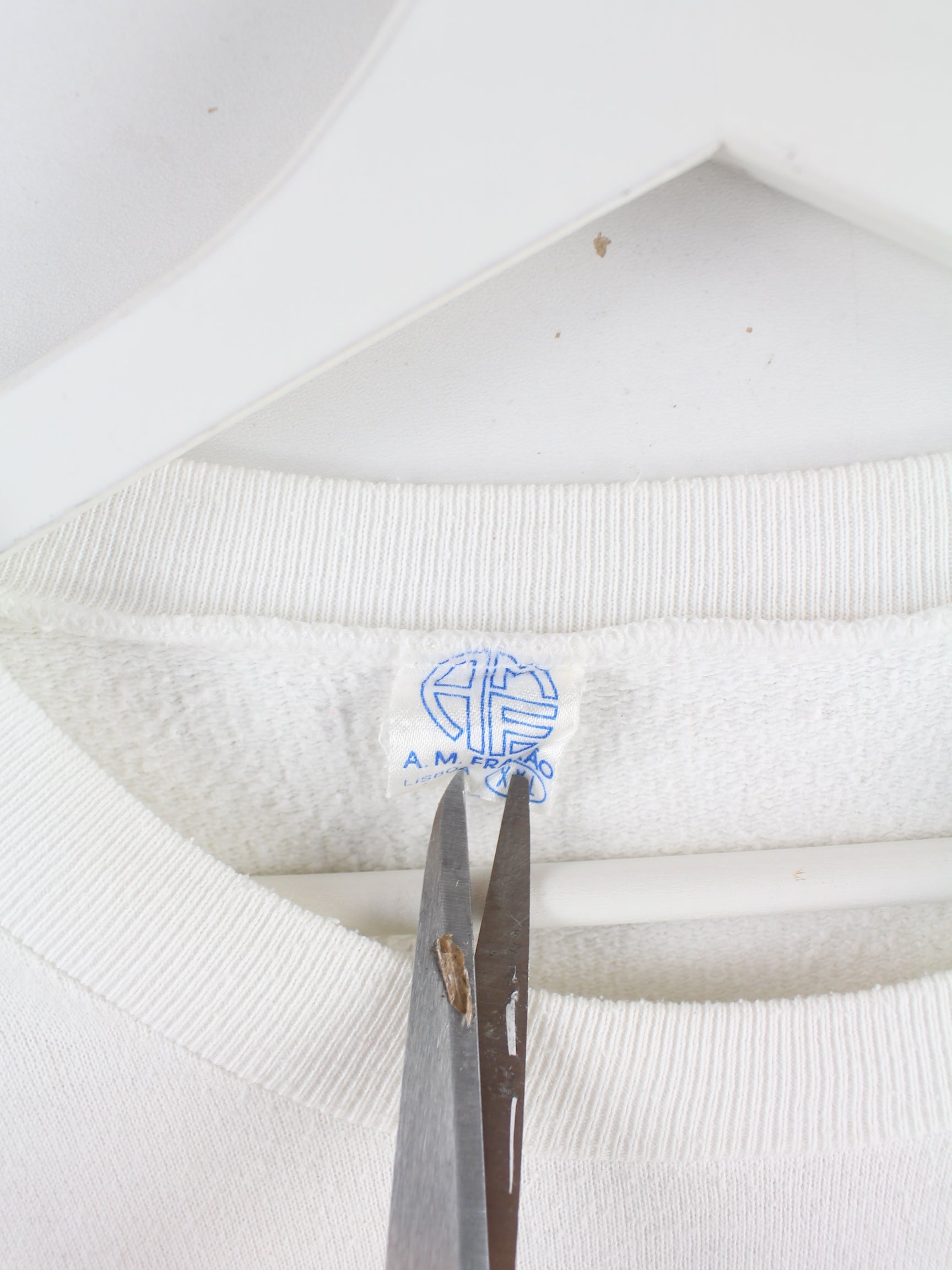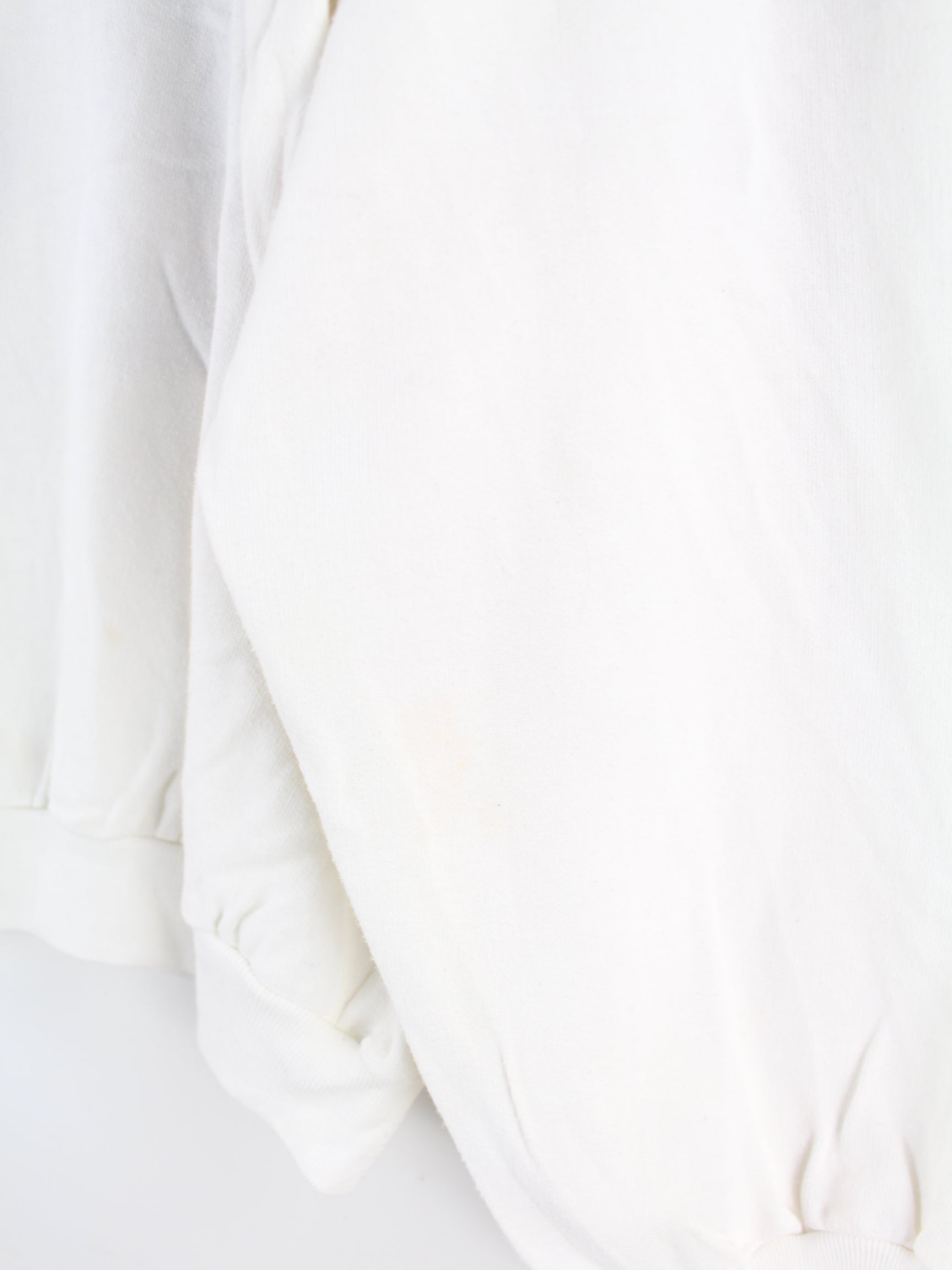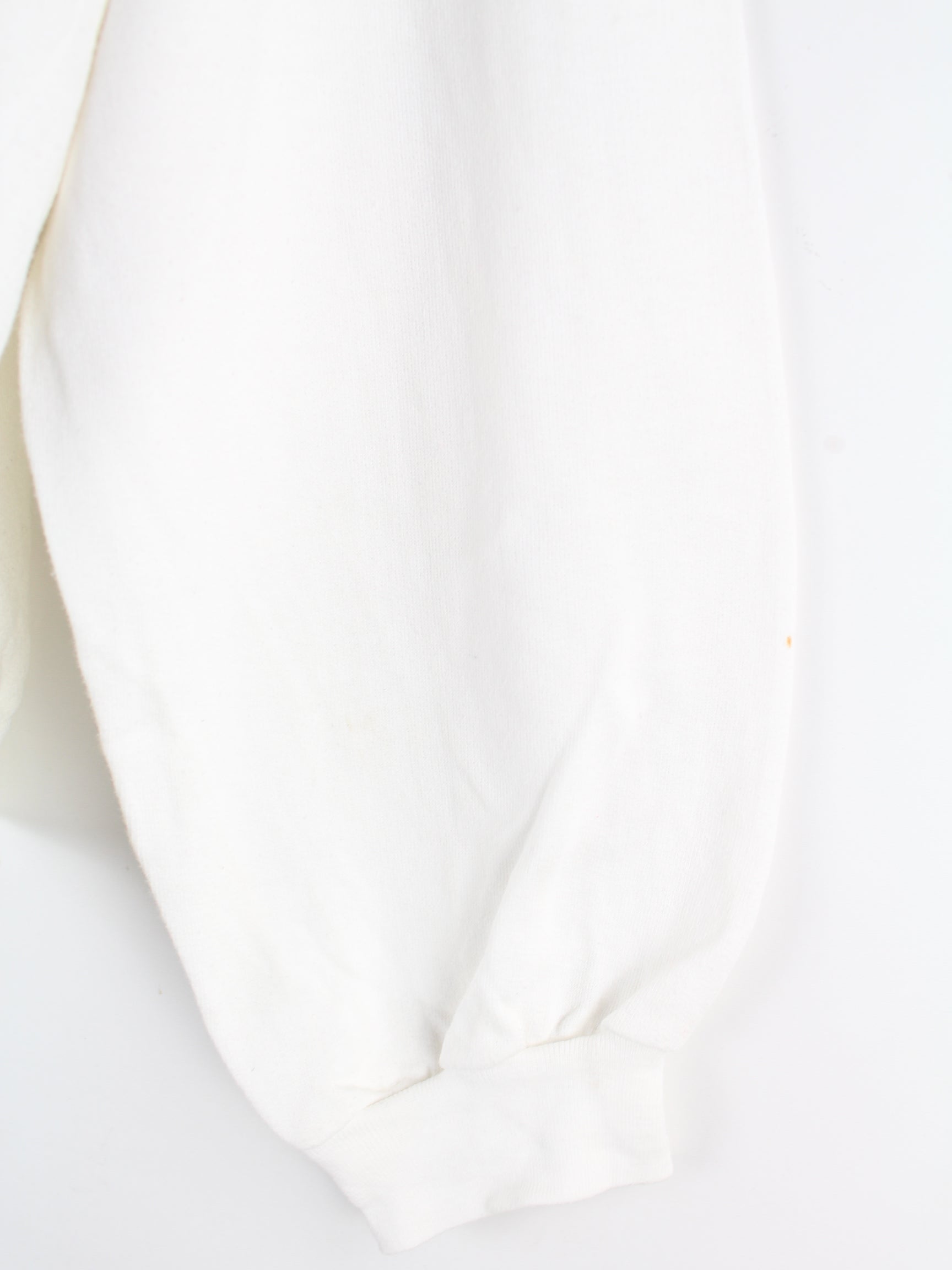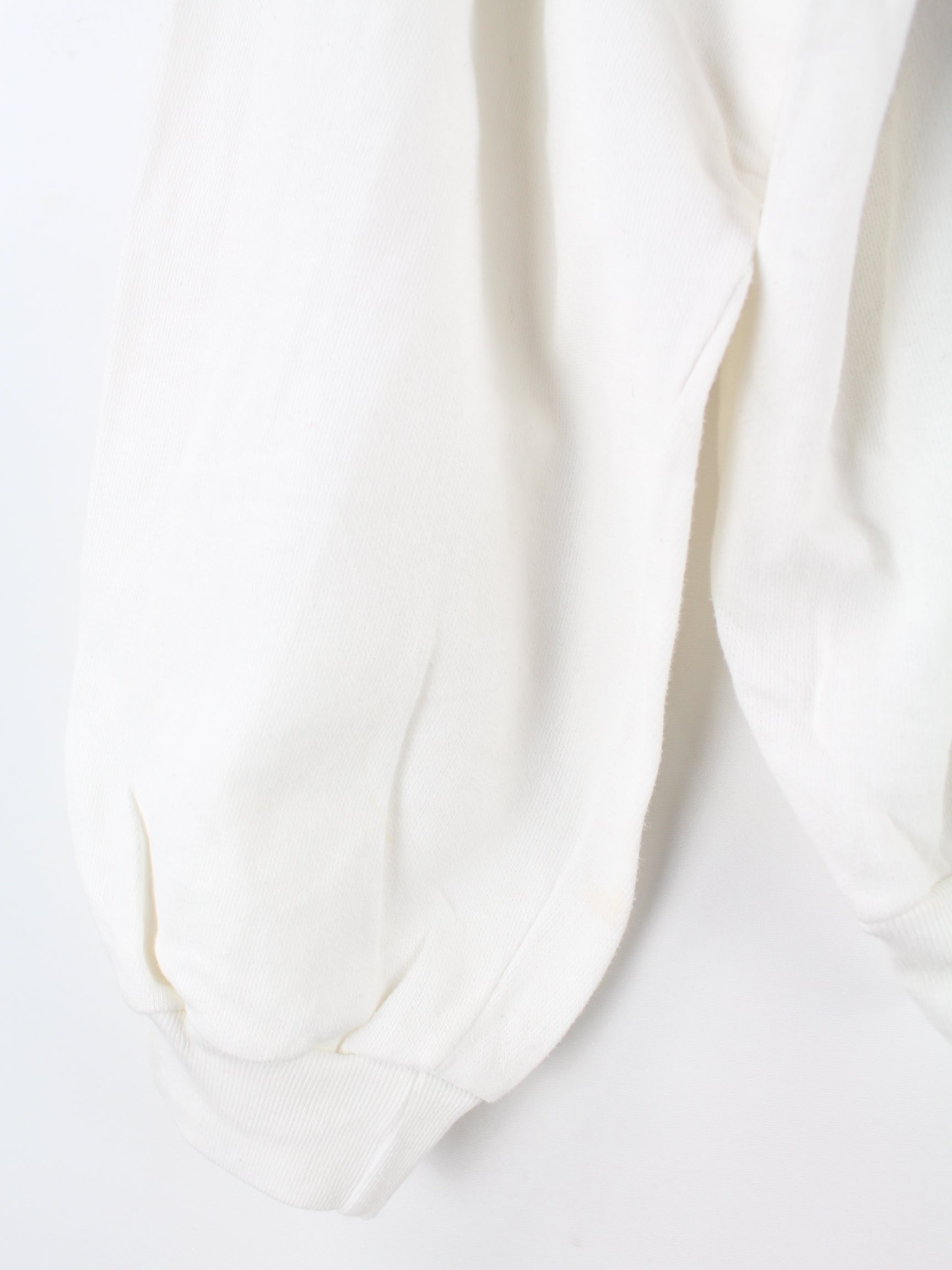 Vintage Sweater in Größe L aus den 80'ern. Er ist aus einer Baumwollmischung und in Weiß lieferbar.