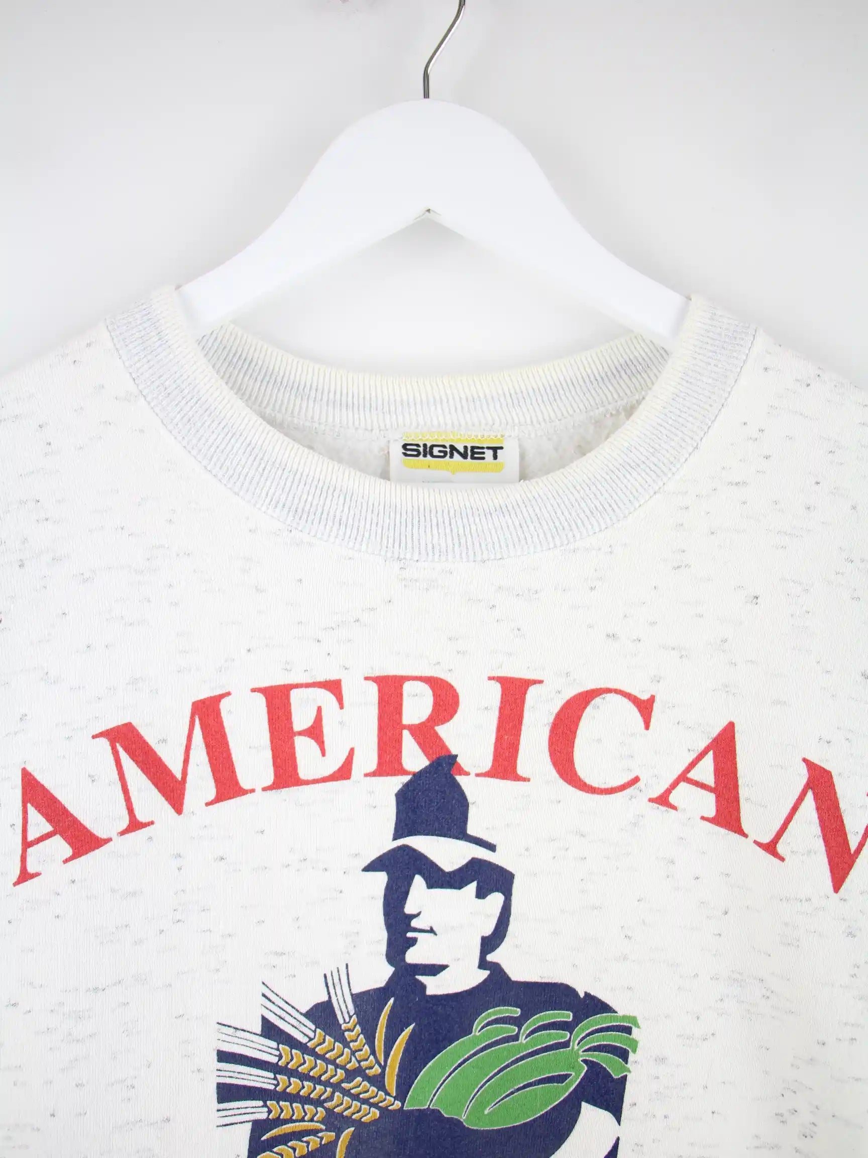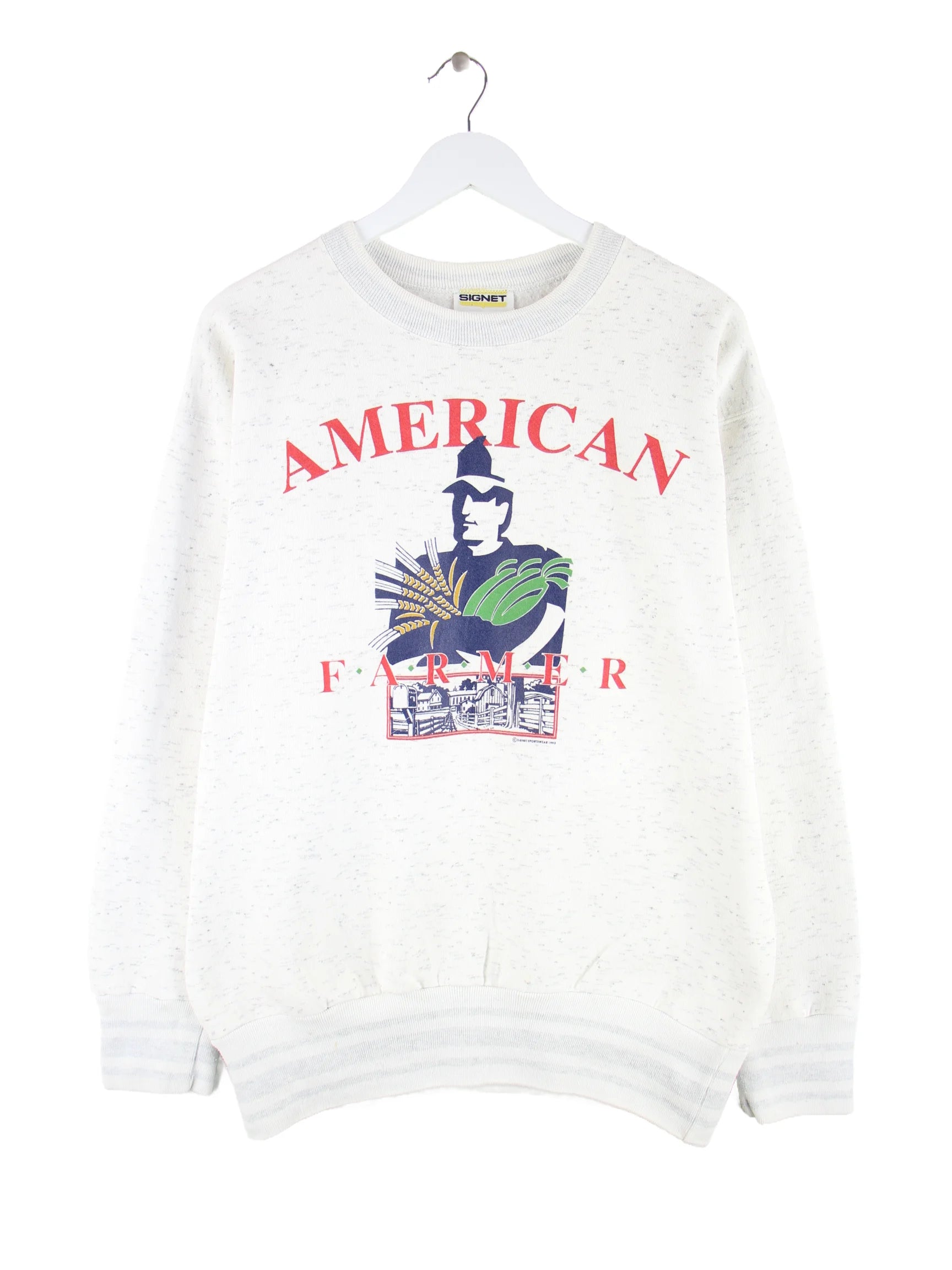 Vintage 90s American Farmer Print Sweater Grau XL
