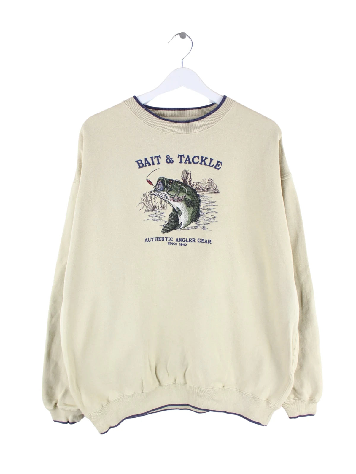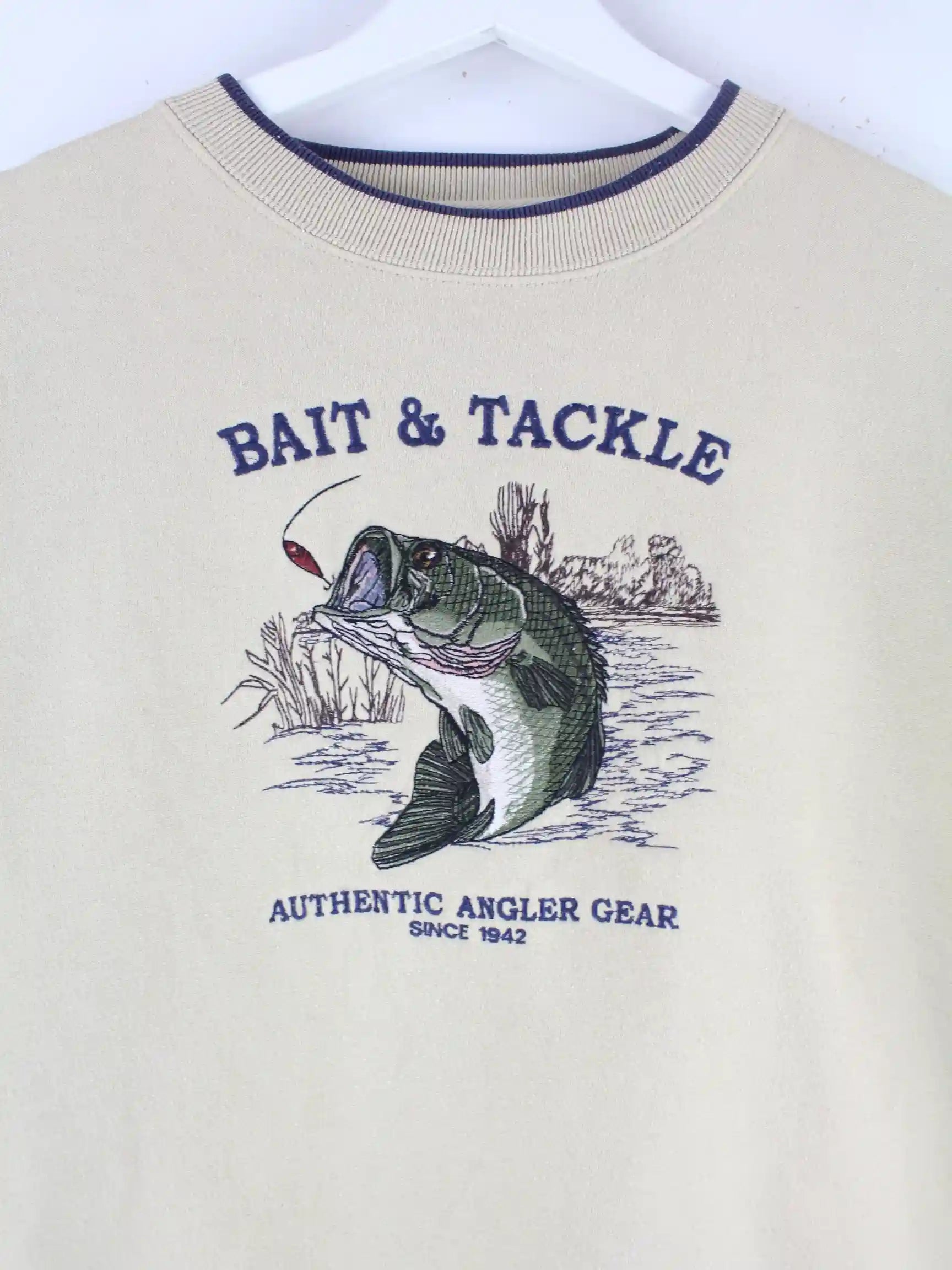 Vintage 90s Angler Fish Embroidered Sweater Beige L