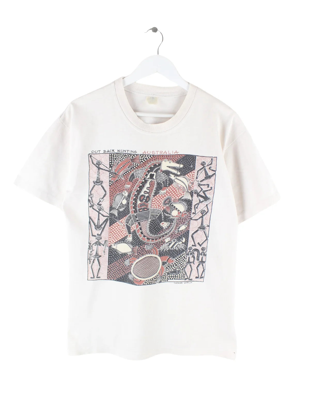 Vintage 90s Australia Hunting Print Single Stitch T-Shirt Beige L