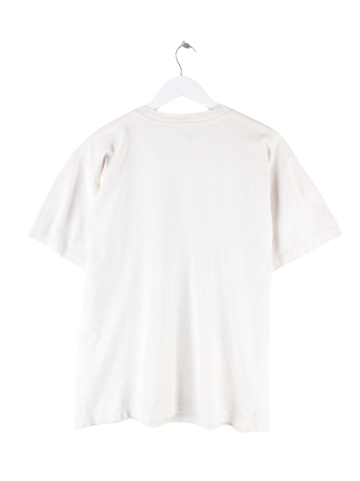 Beigefarbenes Vintage T-Shirt aus den 90'ern in Größe L. Es ist aus Baumwolle hergestellt. Den Zustand würden wir als 'In Ordnung' bezeichnen (vergl. Bilder).Mit chiquem Hunting Print.