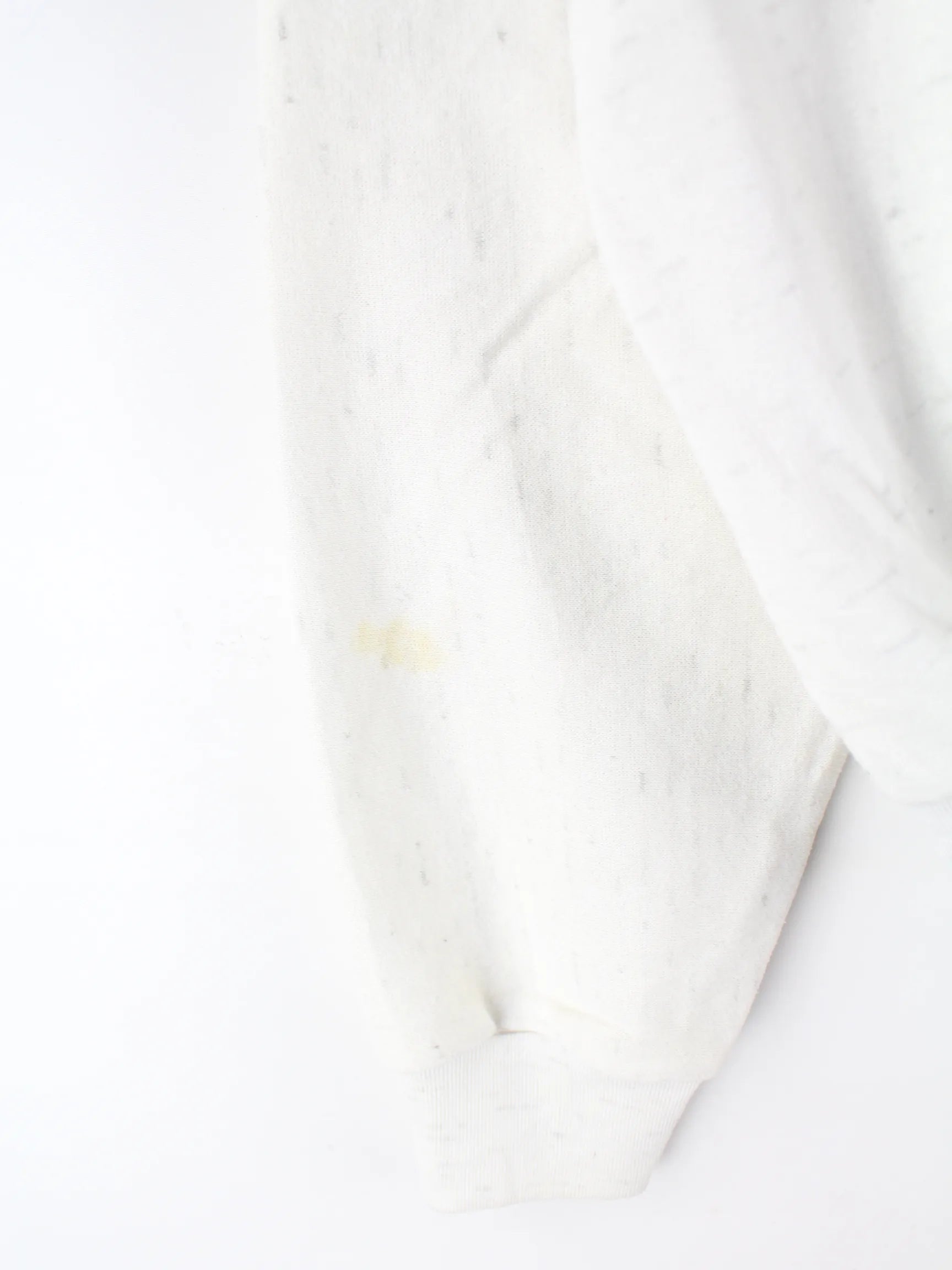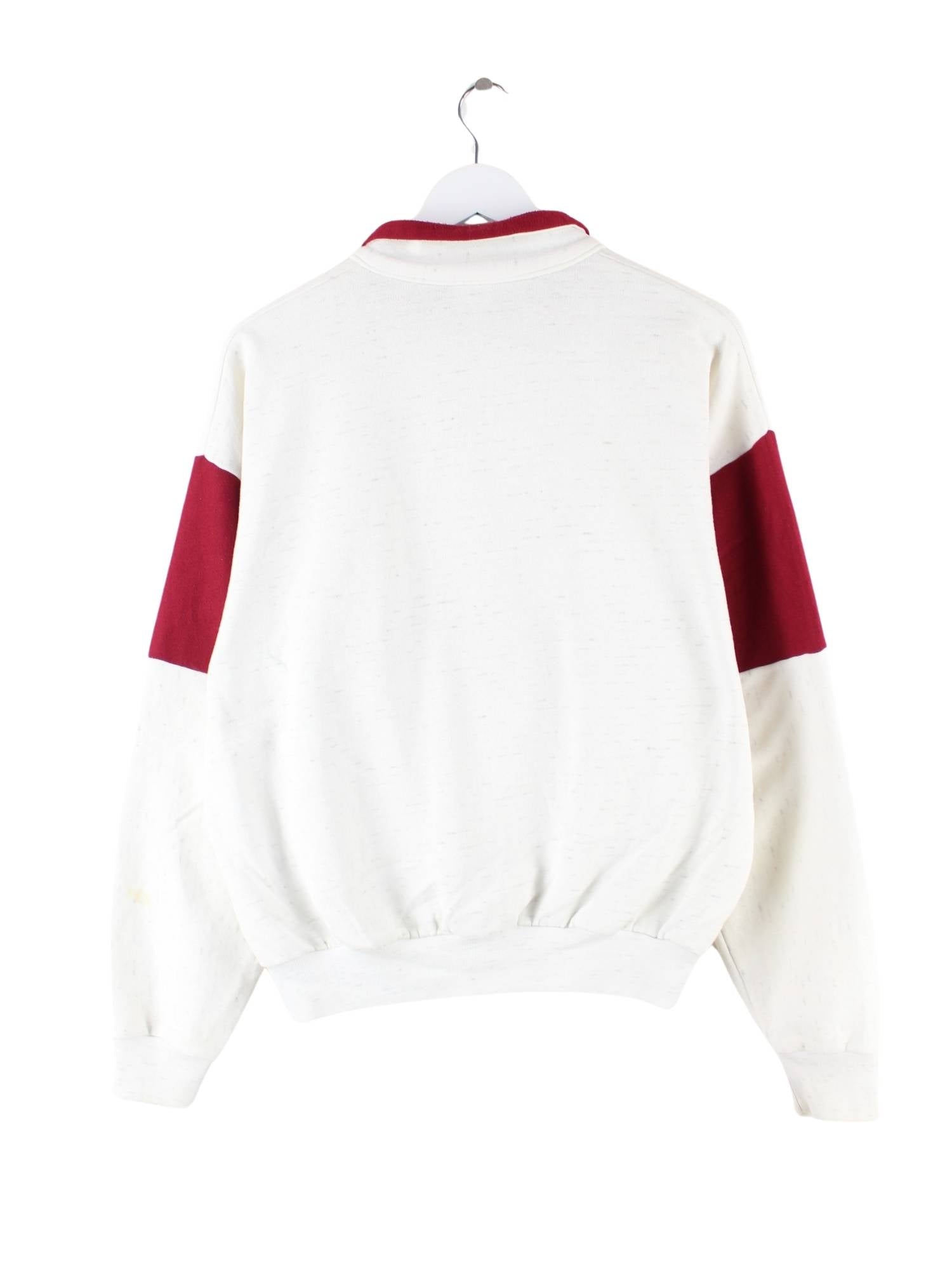 Weißer Vintage Sweater mit half Zip aus den 90'ern in Größe M. Er ist aus einer Baumwollmischung produziert und in gutem Zustand lieferbar.