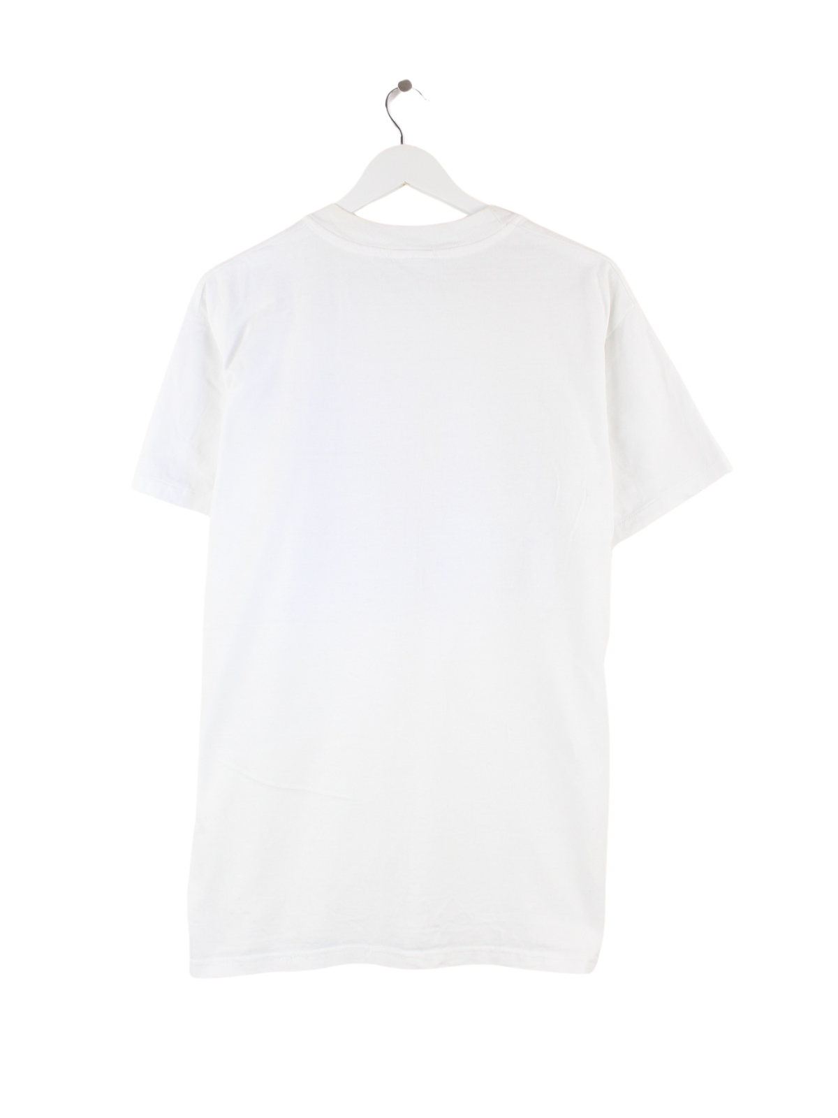 Weißes Vintage T-Shirt aus den 90'ern in Größe L. Es ist aus Baumwolle gemacht und in sehr gutem Zustand bei uns vorrätig. Mit chiquem Bora Print.