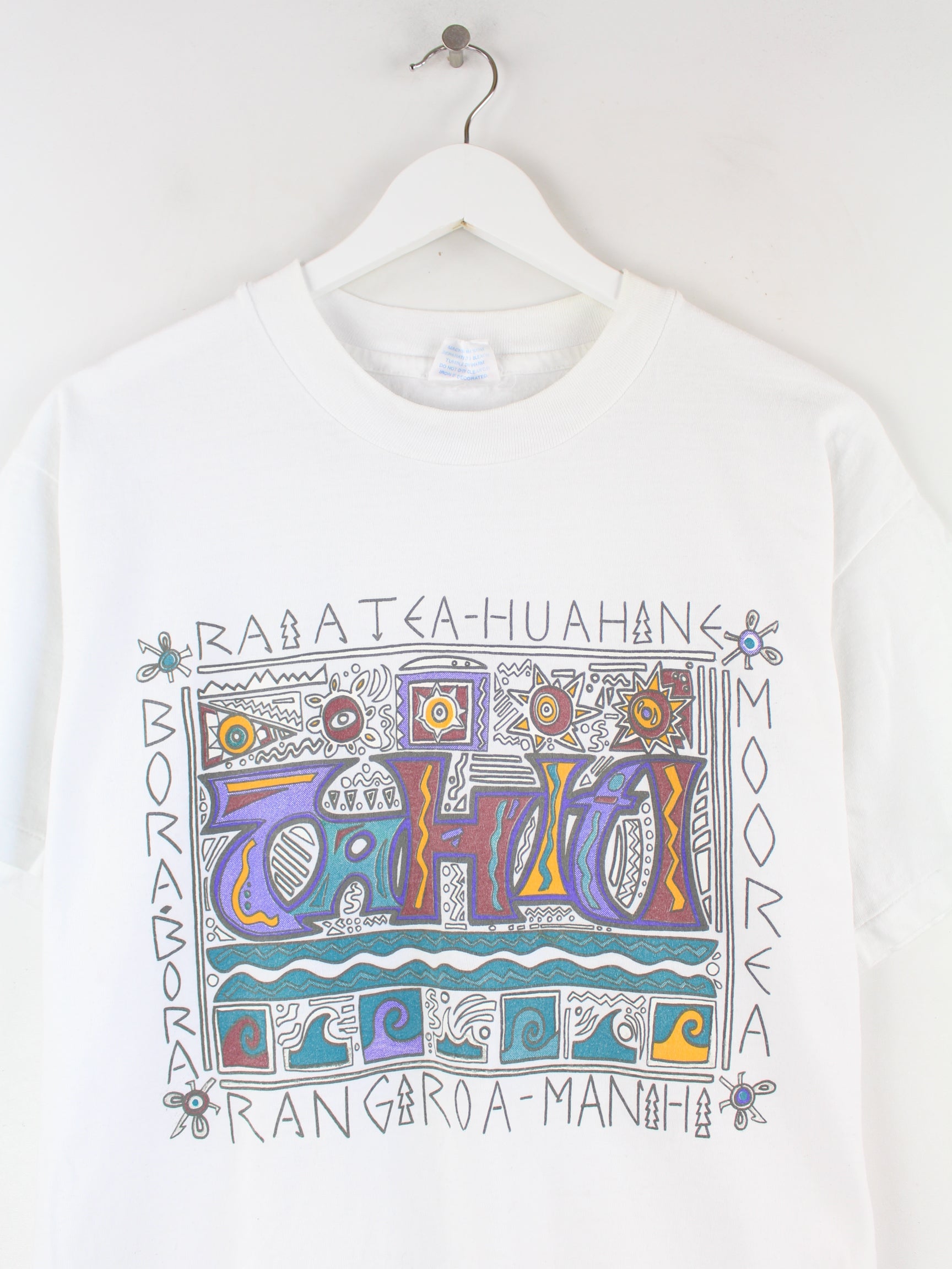 Vintage 90s Bora Bora Print Single Stitch T-Shirt Weiß L