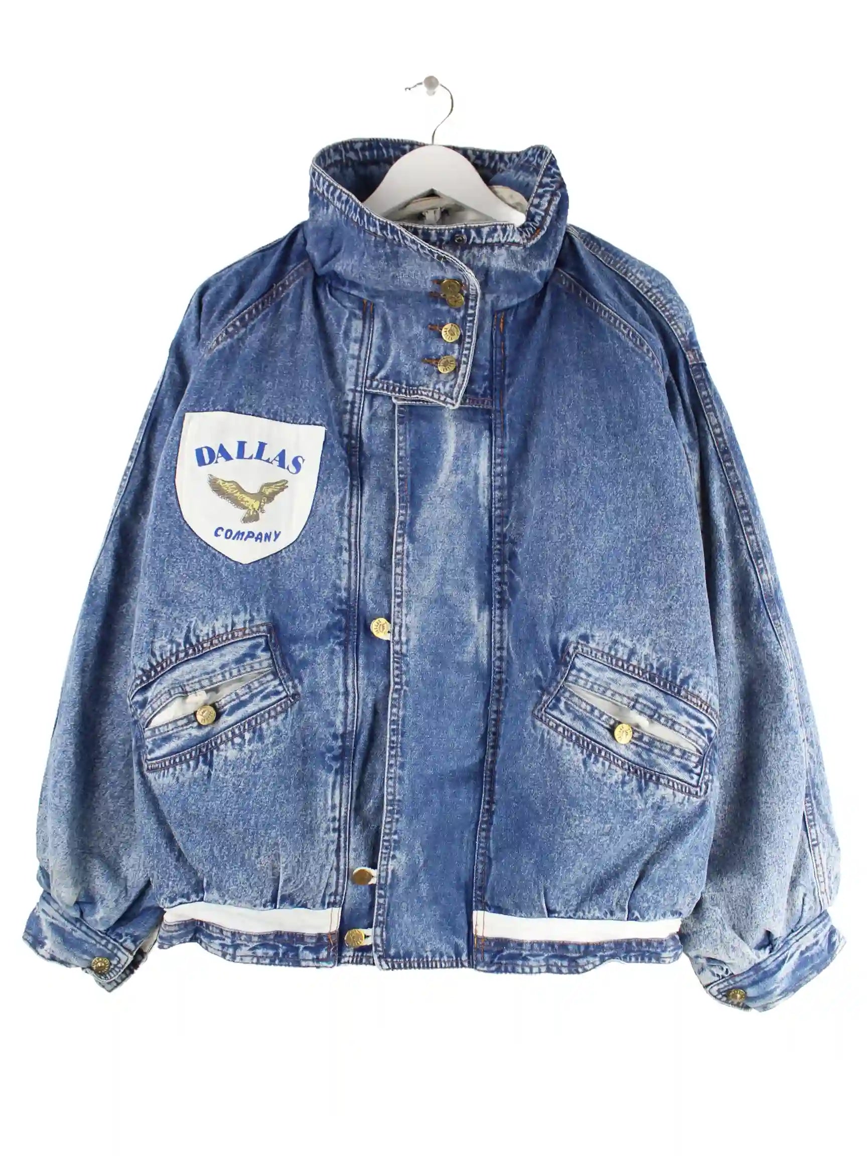 Blaue Vintage Jacke aus den 90'ern in Größe S. Sie ist aus Baumwolle gemacht. Den Zustand würden wir als 'In Ordnung' bezeichnen (vergl. Bilder).