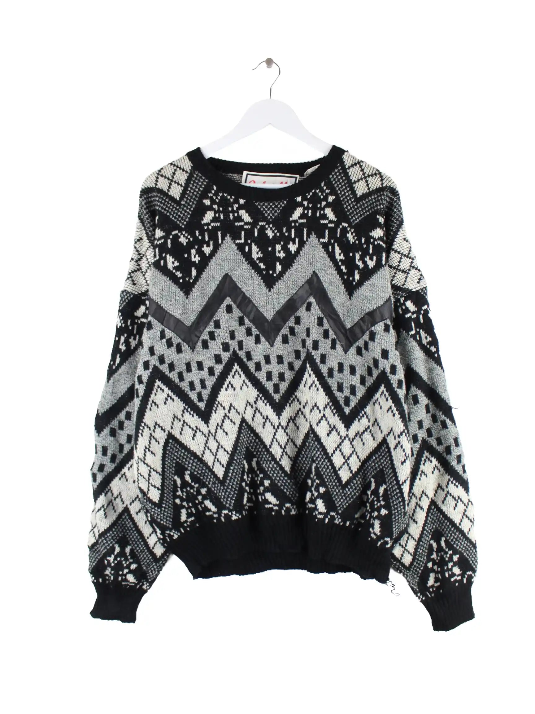Vintage 90s Pattern Pullover Schwarz XL