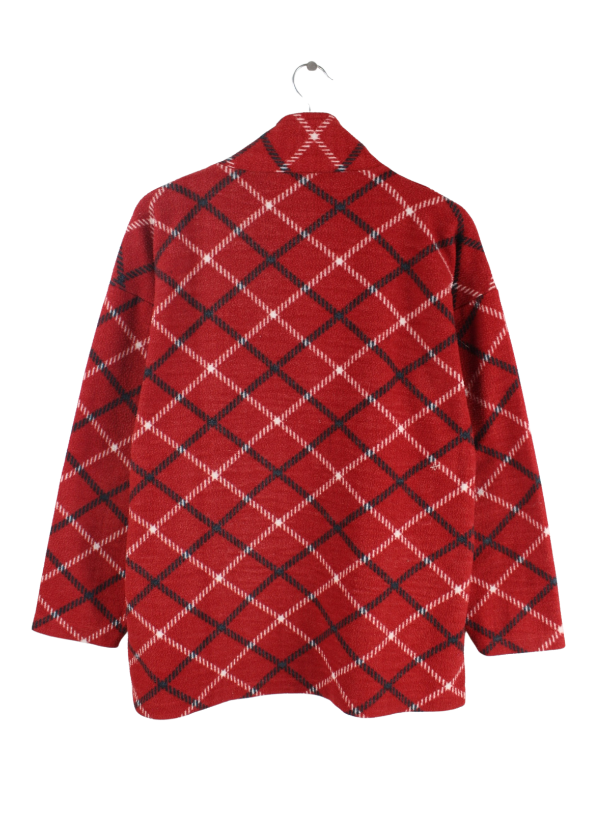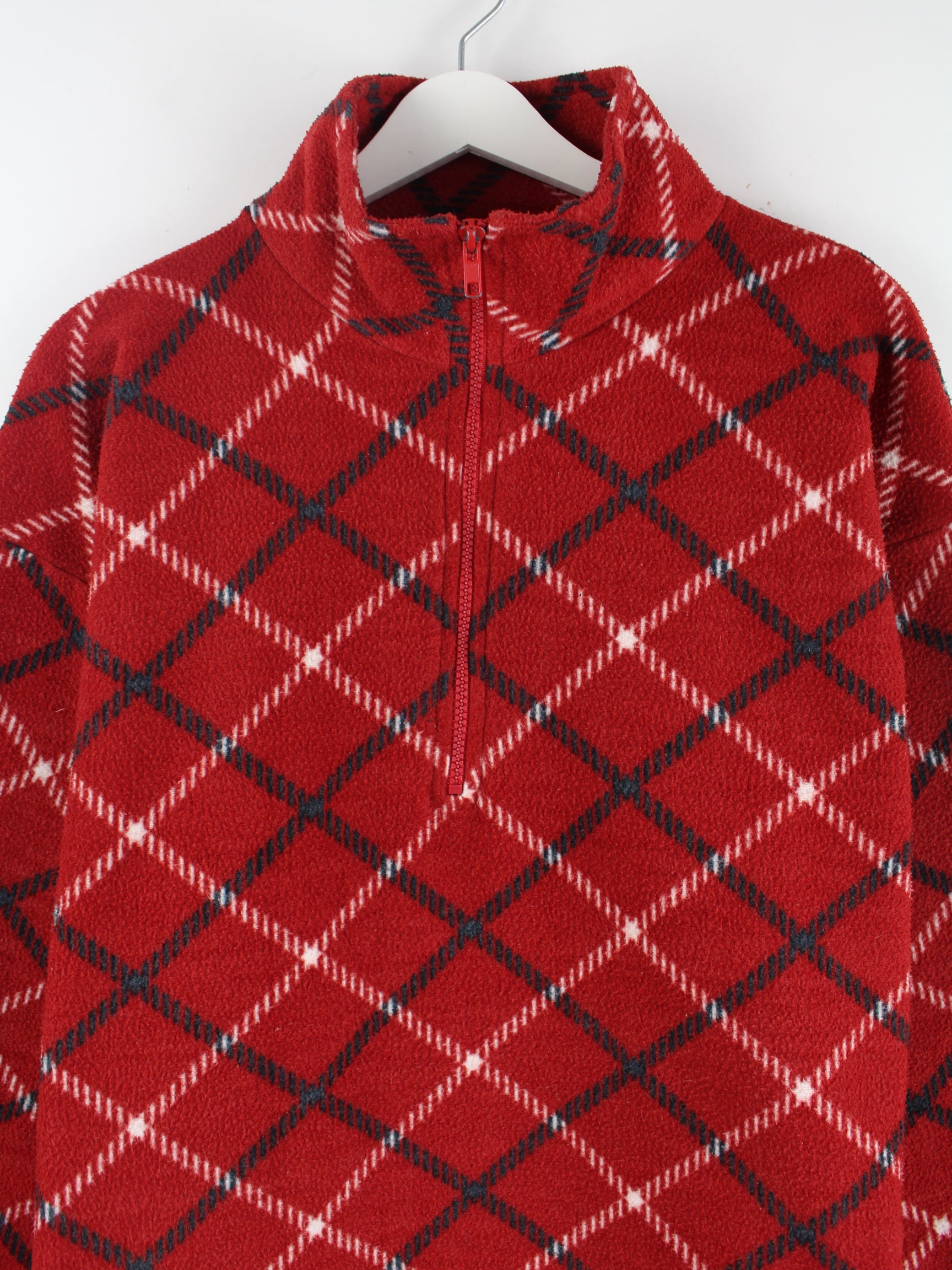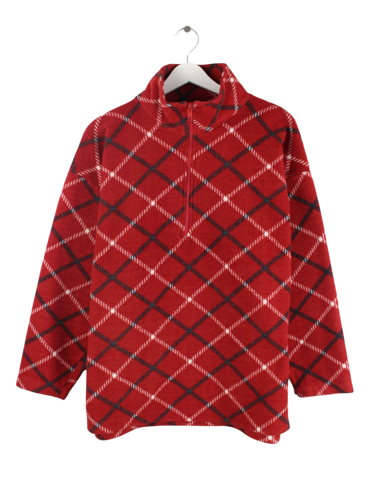 Roter Vintage Sweater mit half Zip aus den 90'ern in Größe S. Er ist aus angenehmem Fleece und in sehr gutem Zustand zu bekommen.
