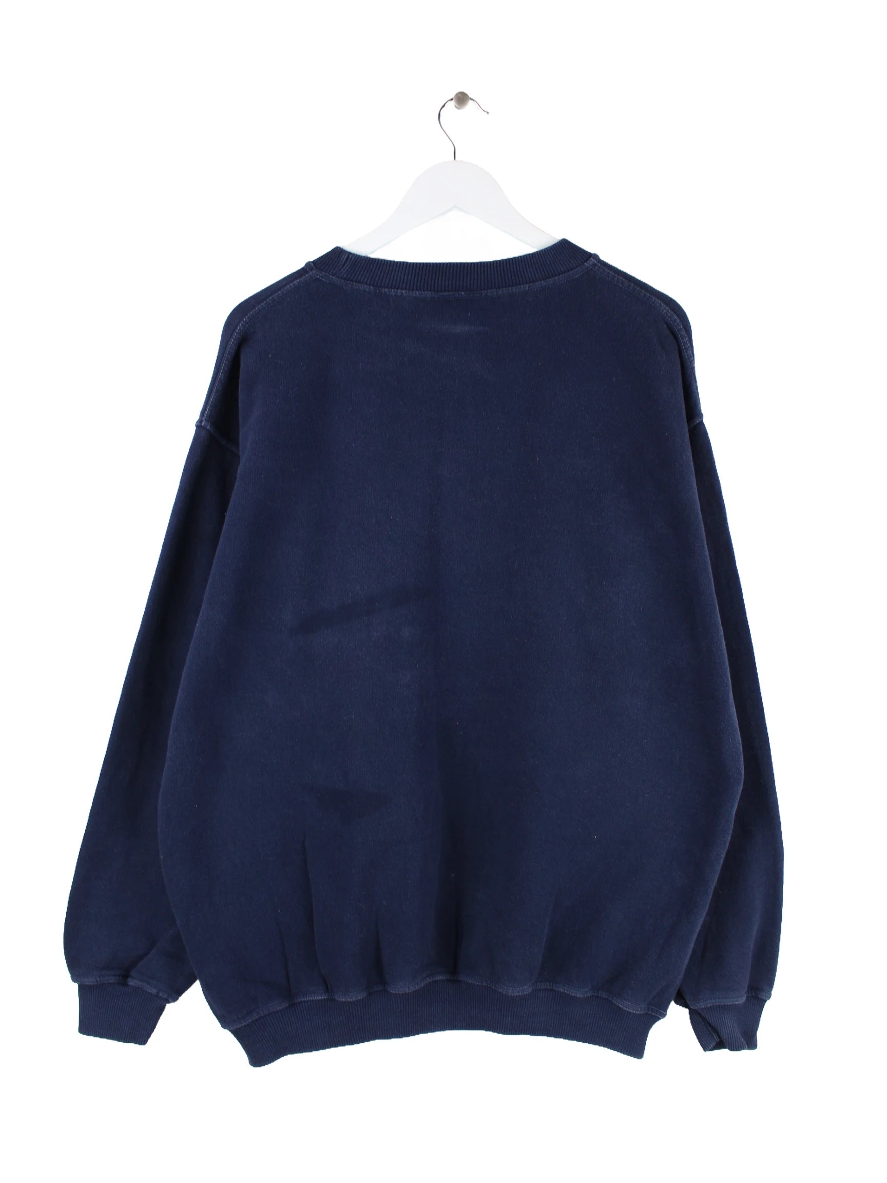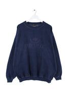 Blauer Vintage Sweater aus den 90'ern in Größe XXL. Er ist aus einer Baumwollmischung angefertigt. Den Zustand würden wir als 'In Ordnung' bezeichnen (vergl. Bilder).