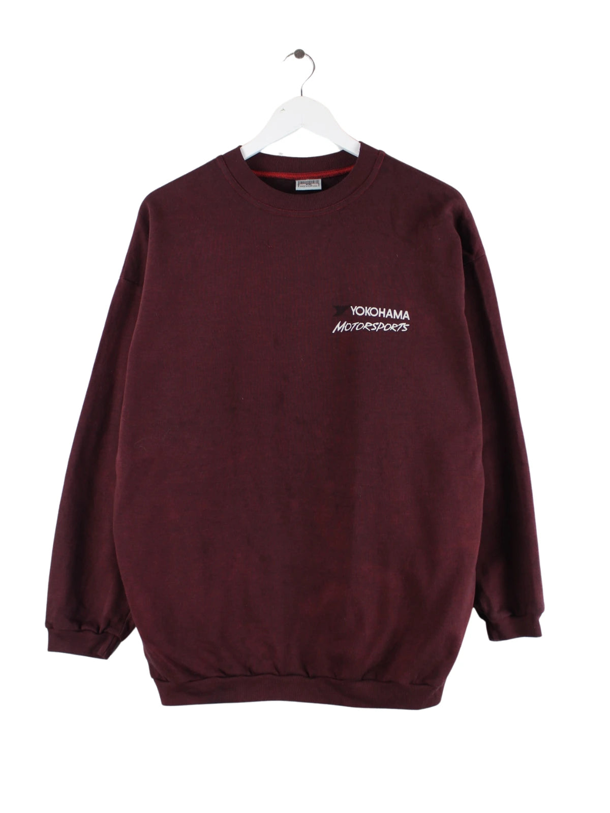 Vintage 90s Yokohama Motorsports Print Sweater Rot XXL