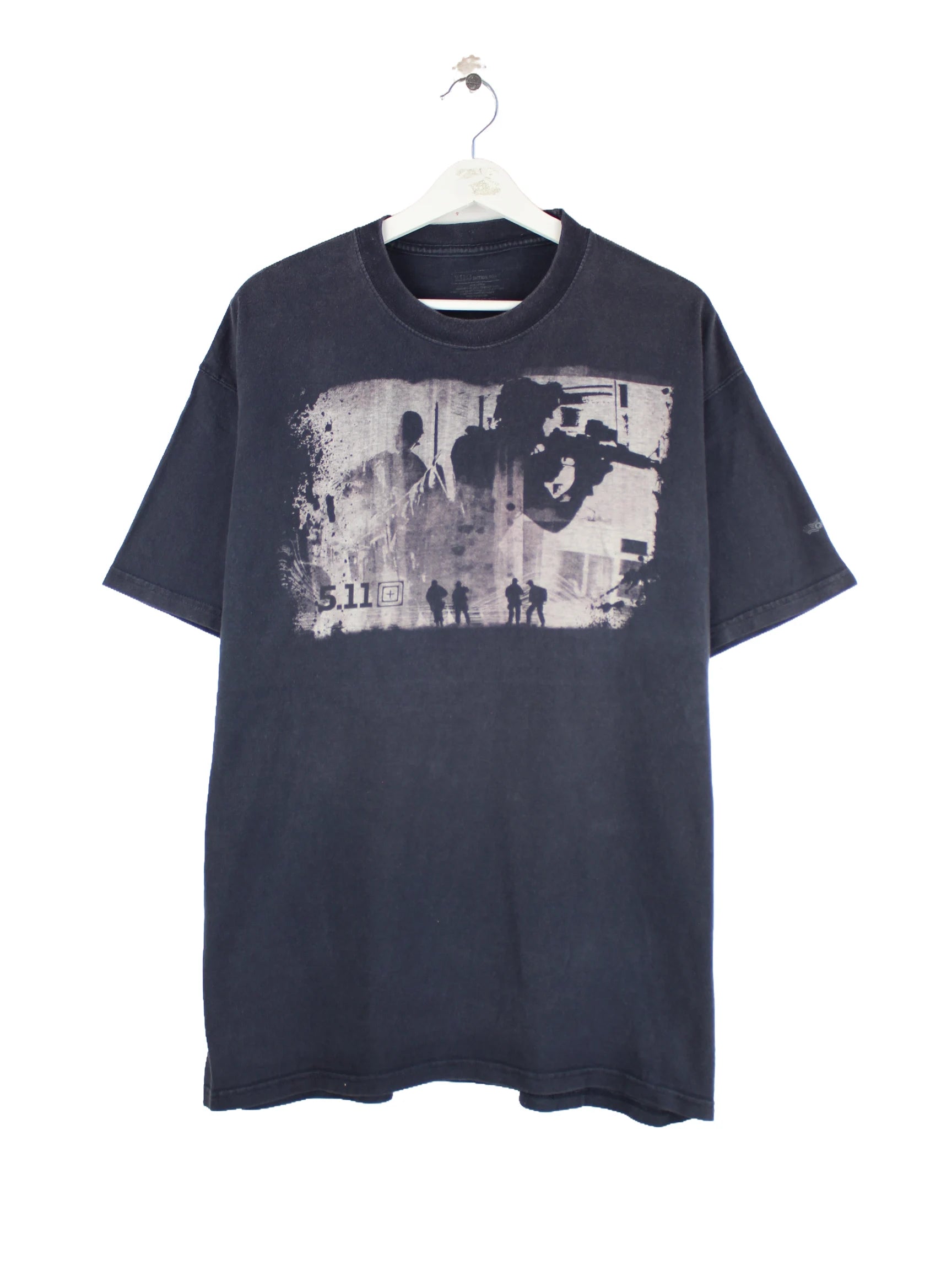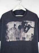 Vintage T-Shirt in Größe XL. Es ist aus Baumwolle hergestellt und in Grau im Bestand. Mit schickem Army Print.