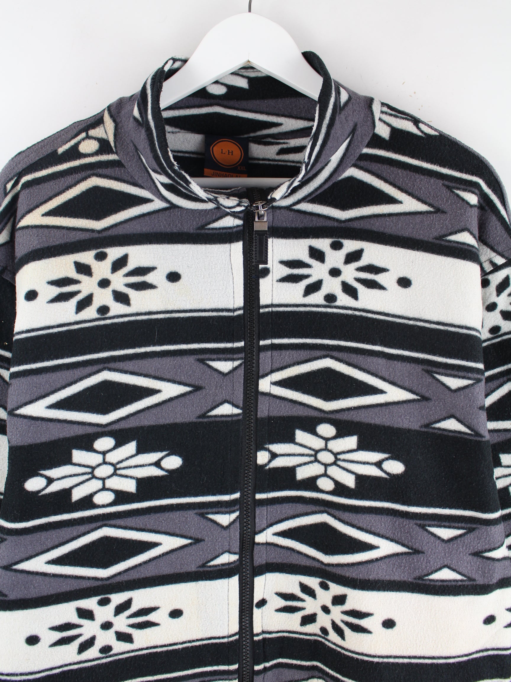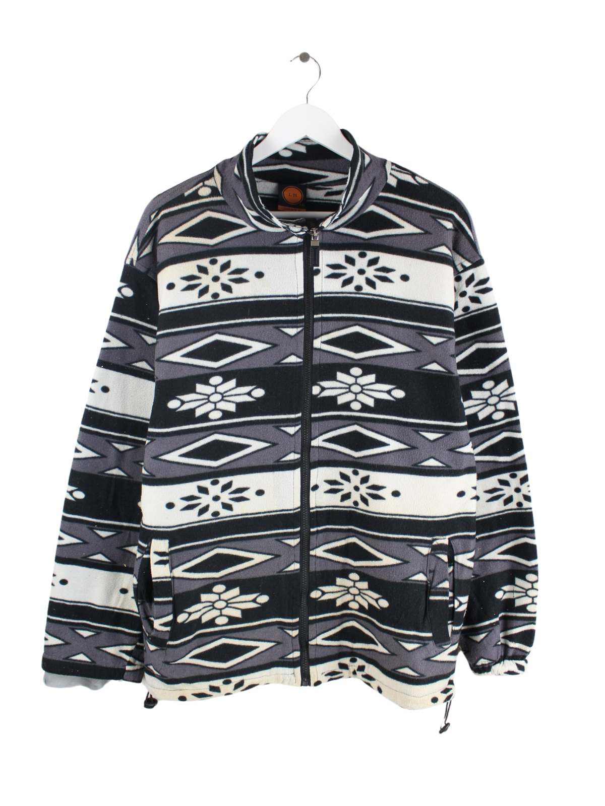 Vintage Crazy Pattern Fleece Jacke Grau XXL