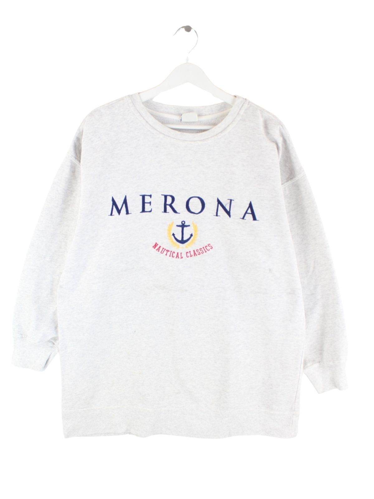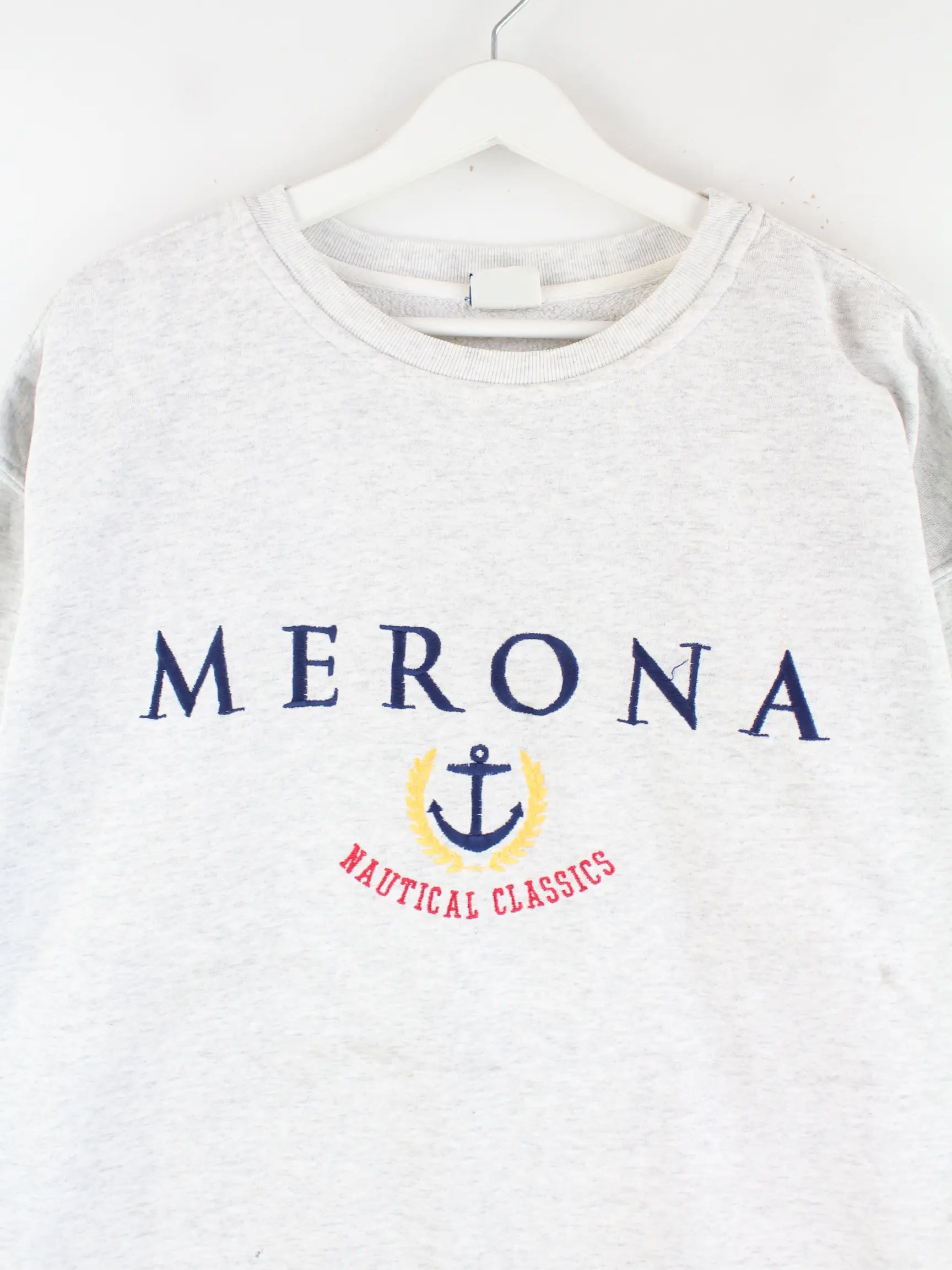 Vintage Damen 90s Merona Nautical Oversized Sweater Grau M