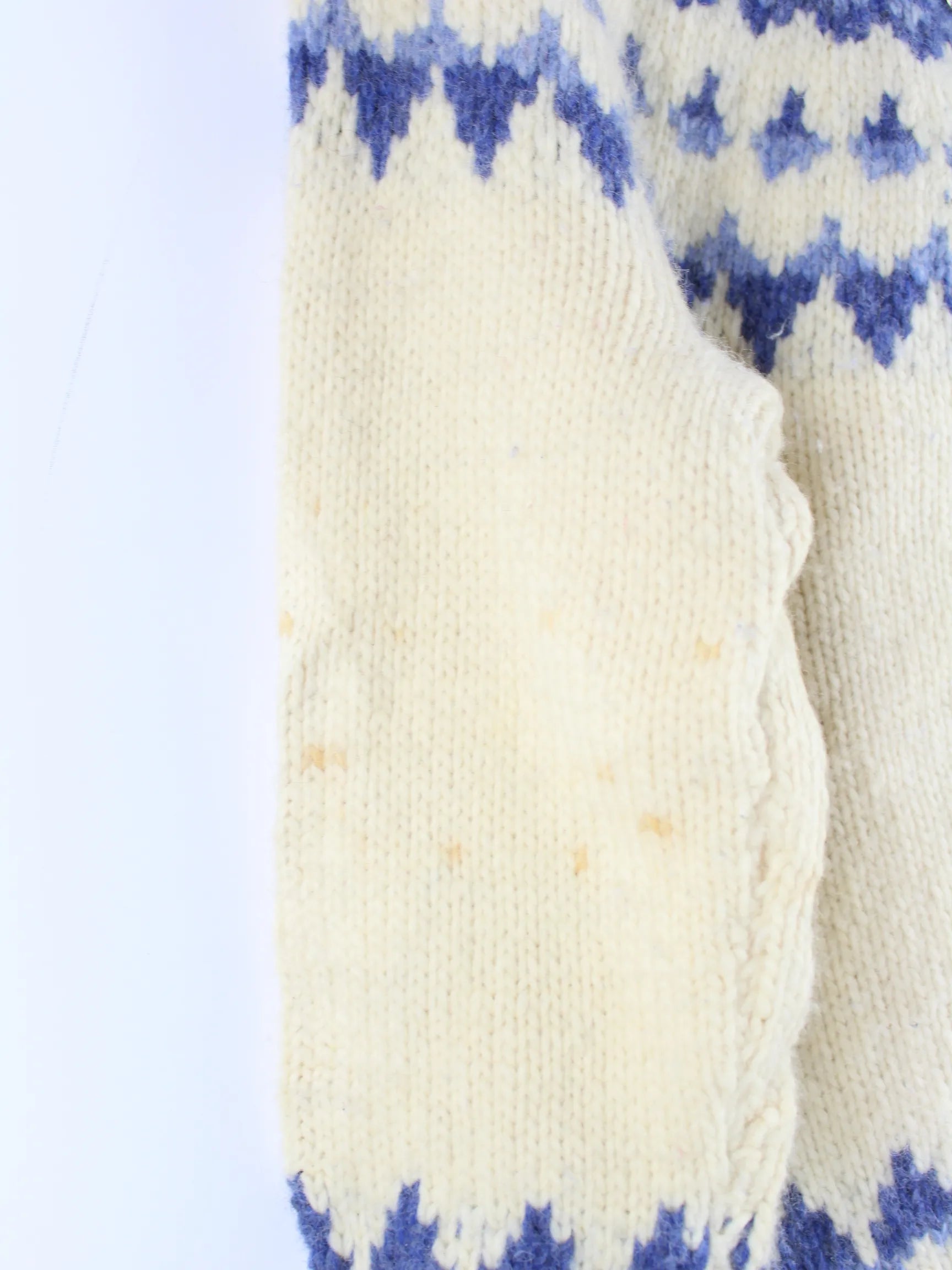Beigefarbene Vintage Strickjacke aus den 90'ern in Größe M. Sie ist aus Wolle angefertigt. Den Zustand würden wir als 'In Ordnung' bezeichnen (vergl. Bilder).