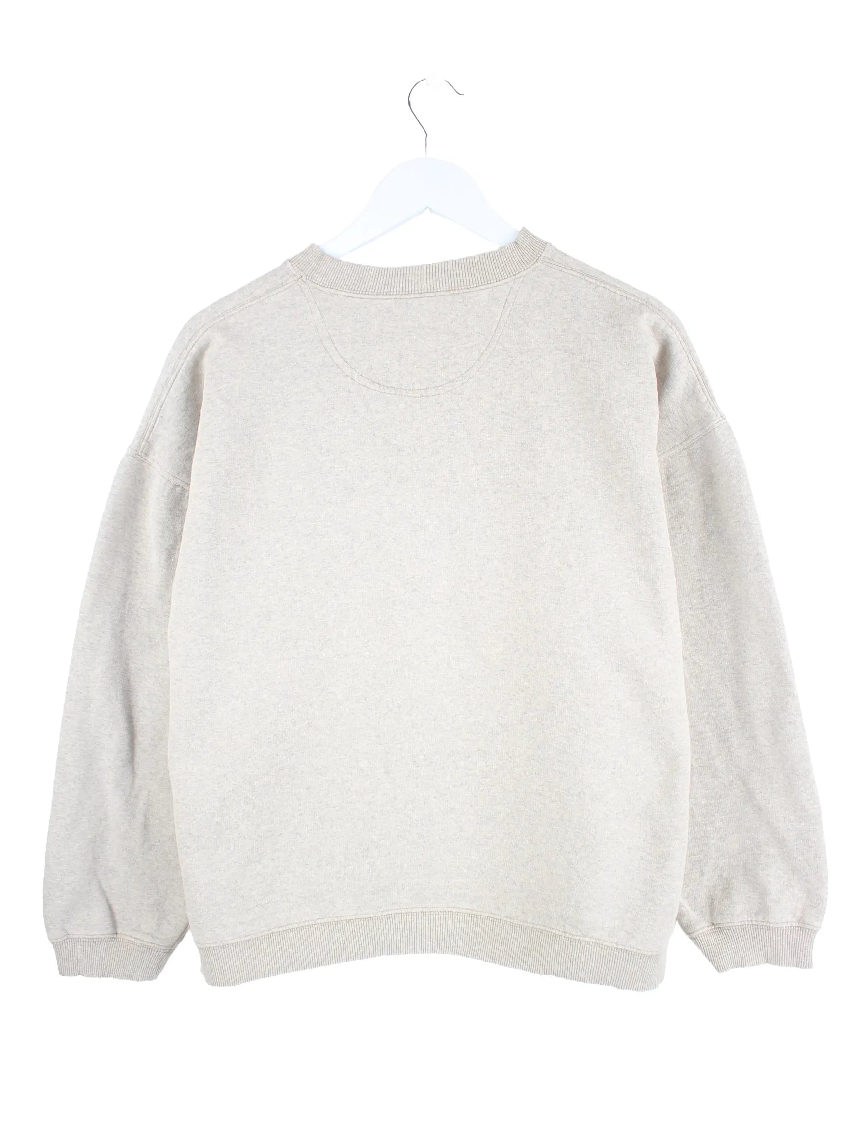 Vintage Sweater in Größe M. Er ist aus einer Baumwollmischung produziert und in Grau im Bestand.