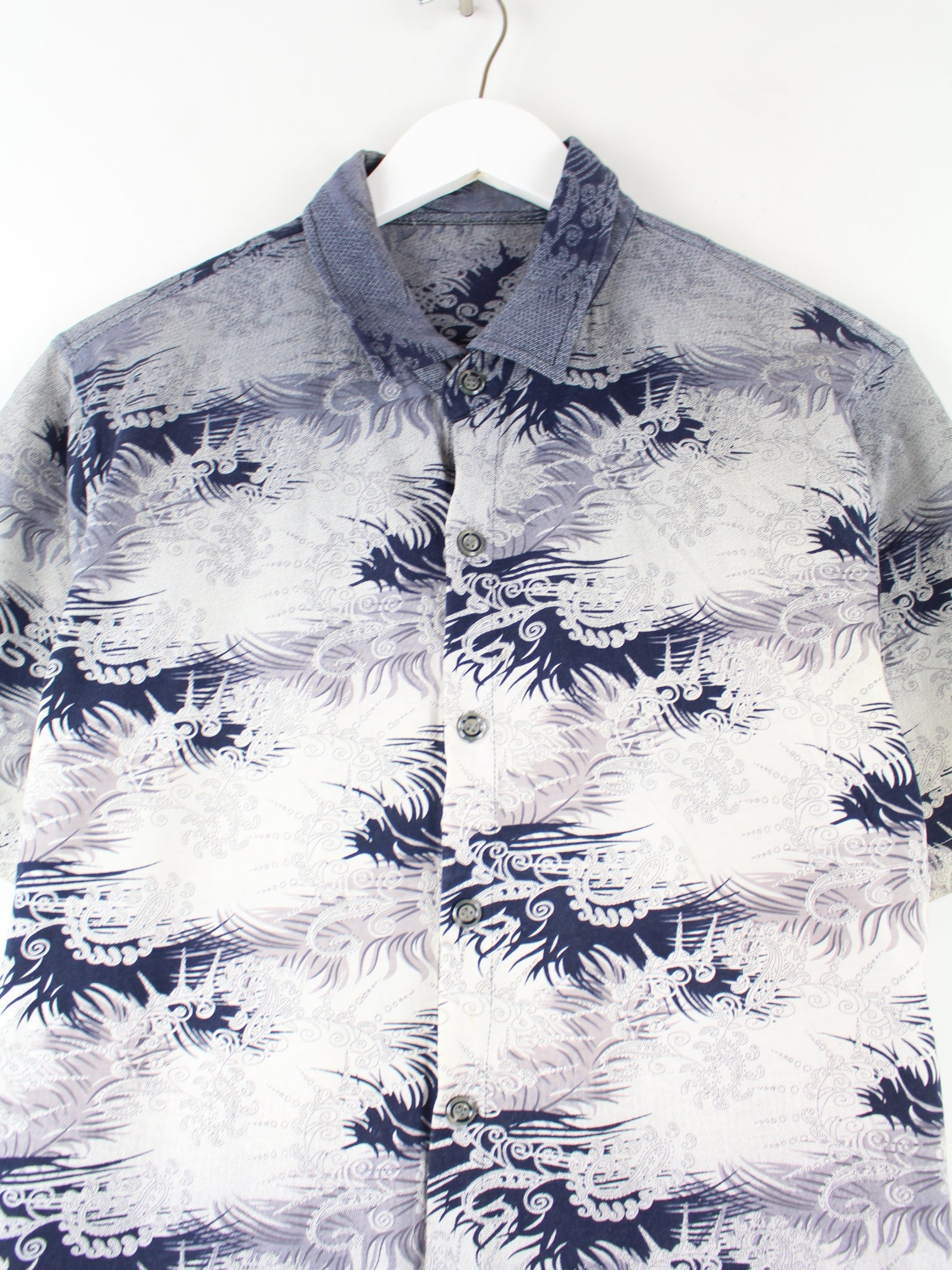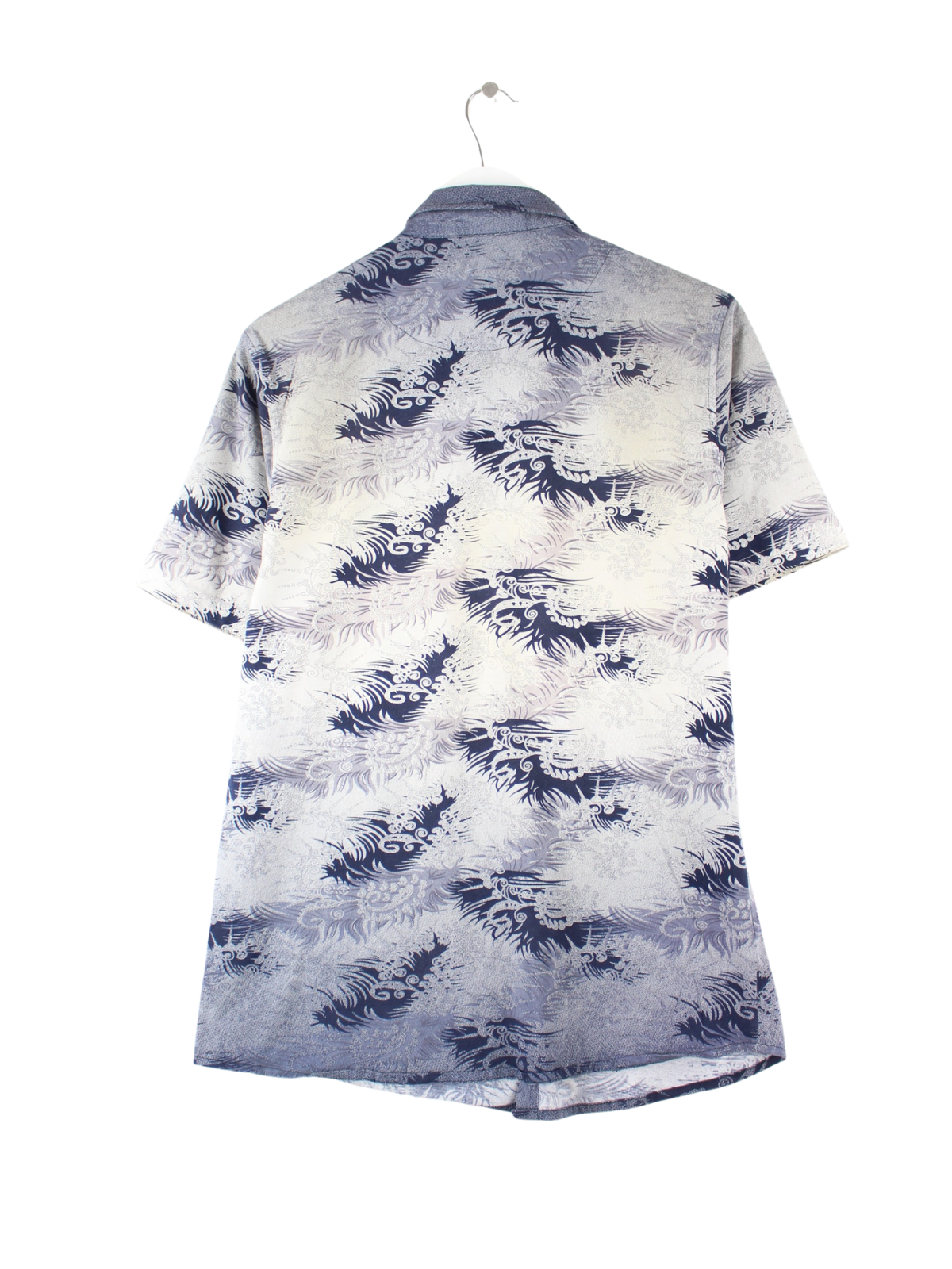 Vintage Dragon Print Kurzarm Hemd Mehrfarbig M
