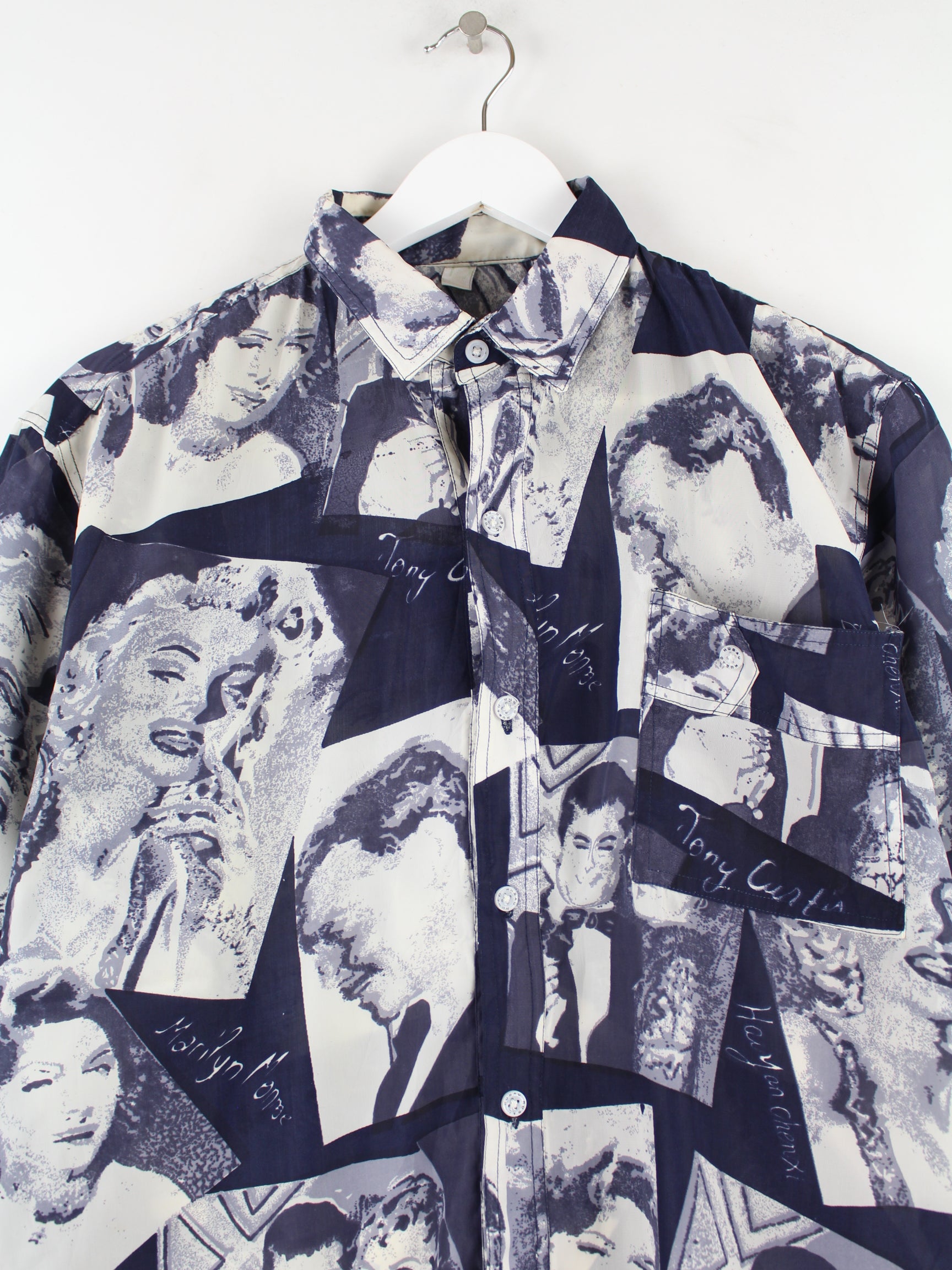 Blaues Vintage Freizeit Hemd in Größe L. Es ist aus Synthetik angefertigt und in gutem Zustand im Bestand.