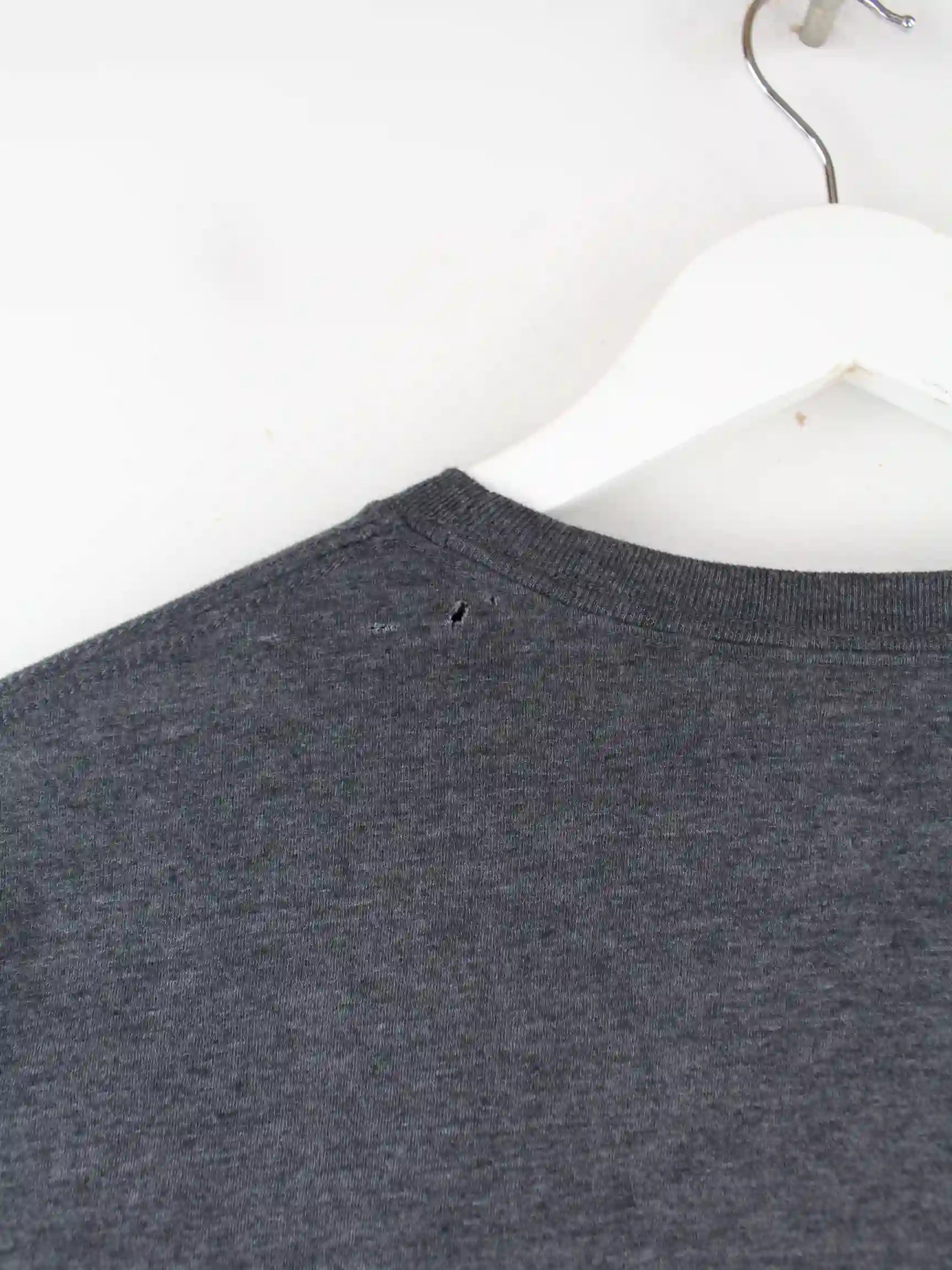 Vintage T-Shirt in Größe XL. Es ist aus einer Baumwollmischung und in Grau zu haben. Mit tollem Jayhawks Print.