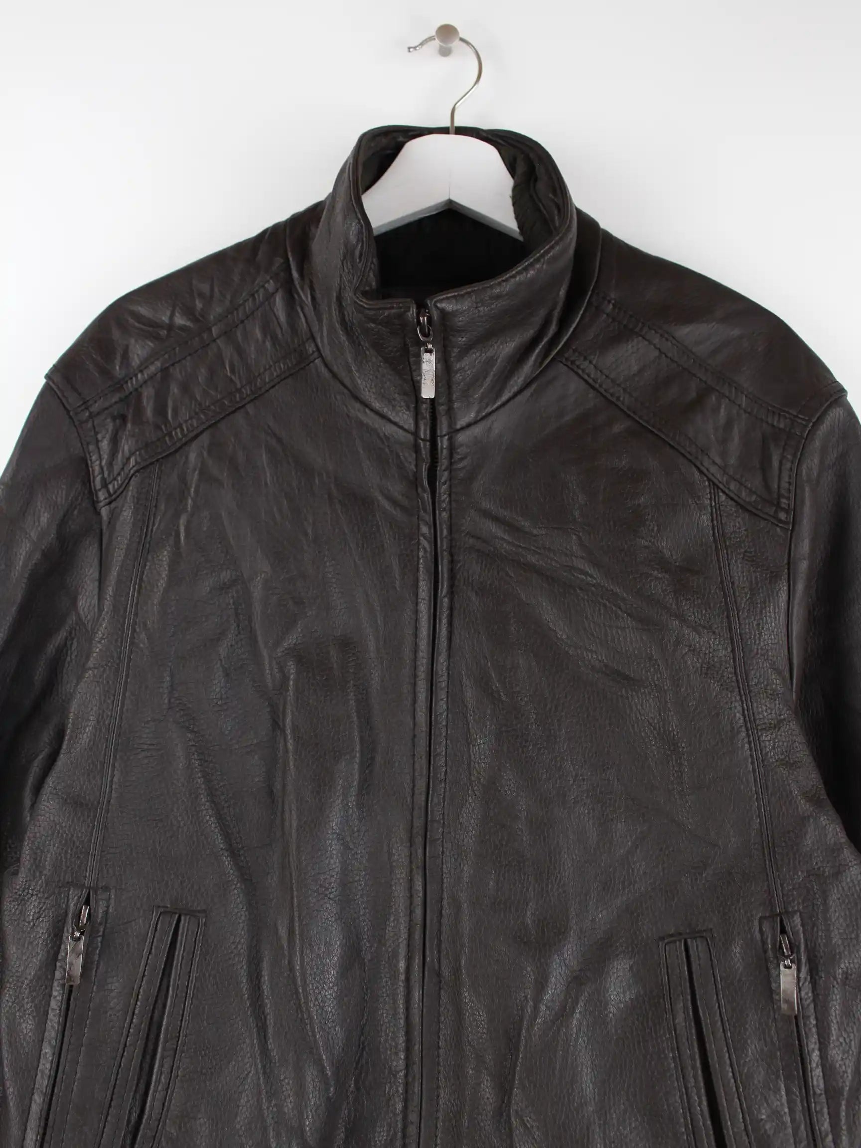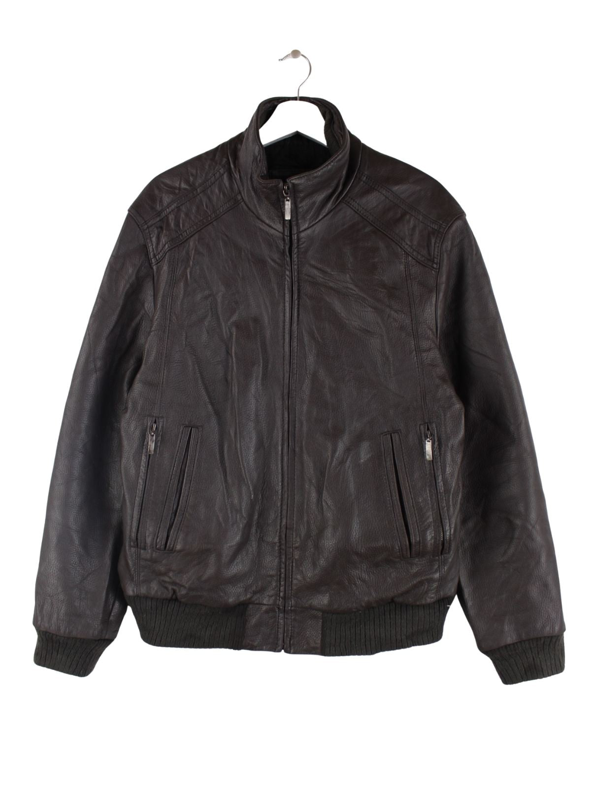 Vintage Jacke in Größe M. Sie ist aus Leder angefertigt und in Braun in Stock.