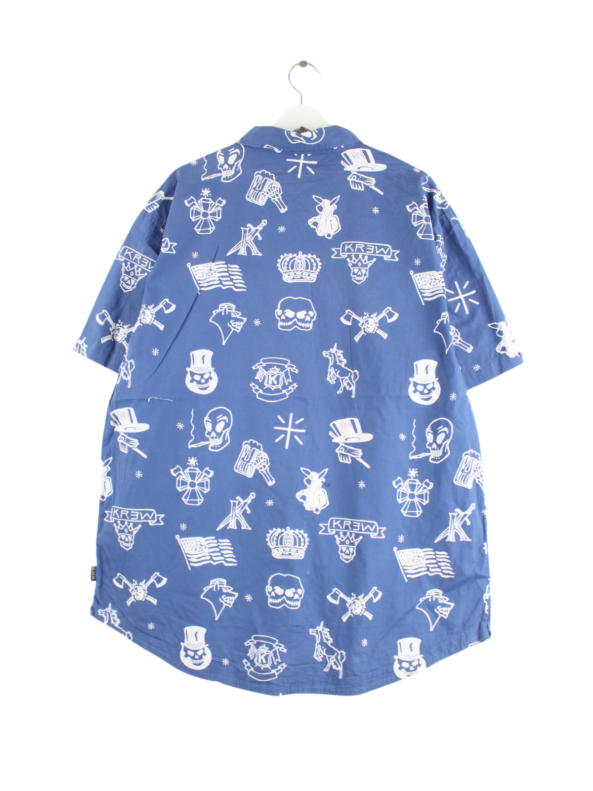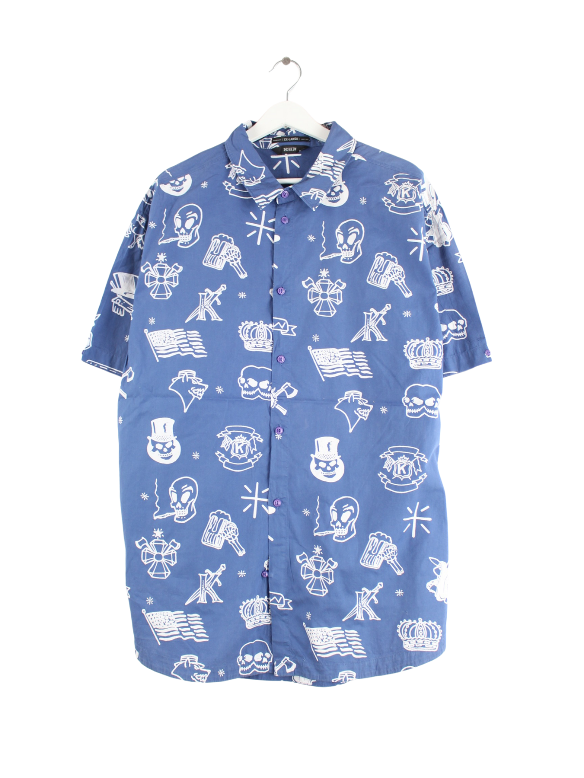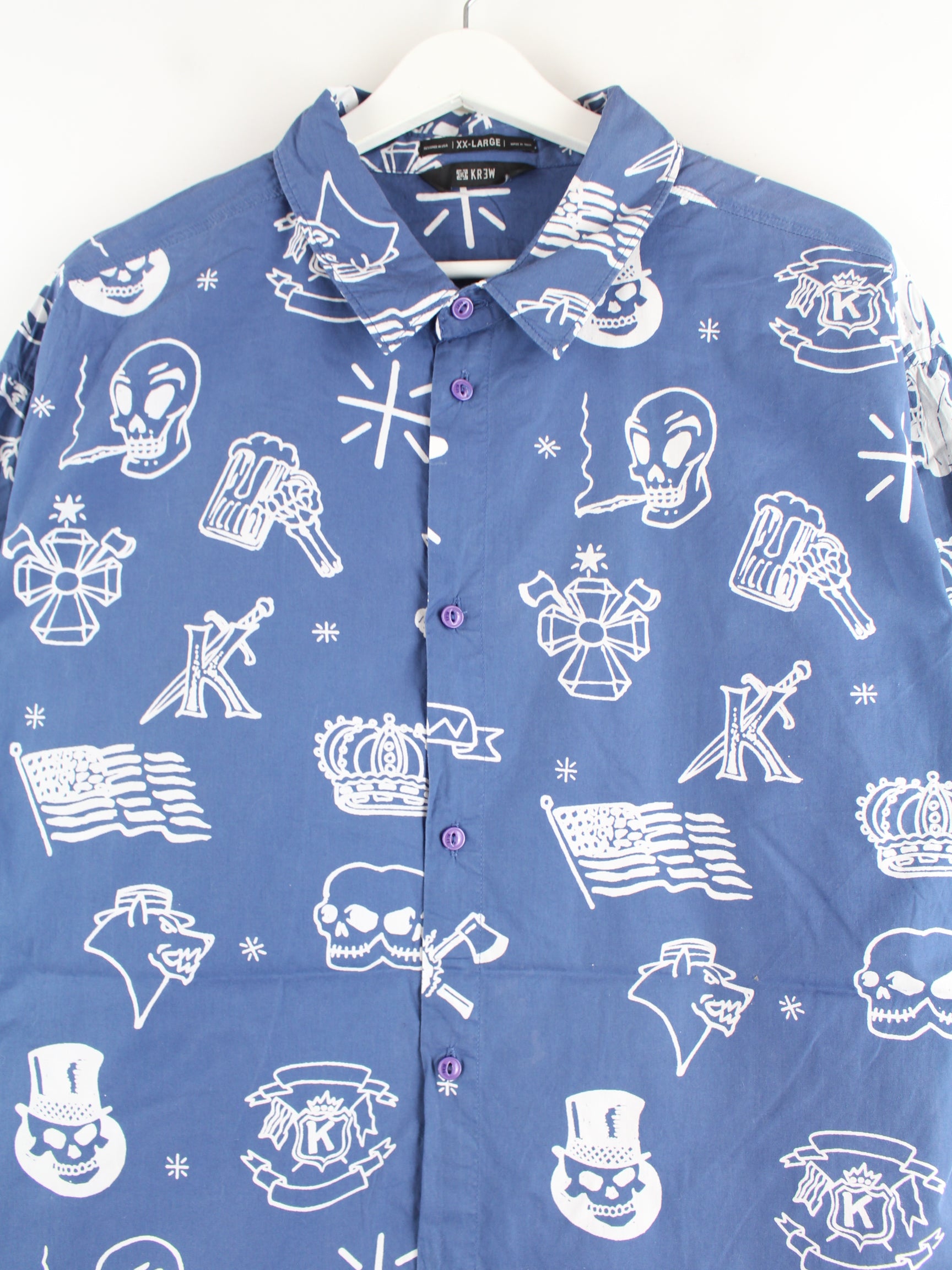 Vintage Pattern Kurzarm Hemd Blau XXL