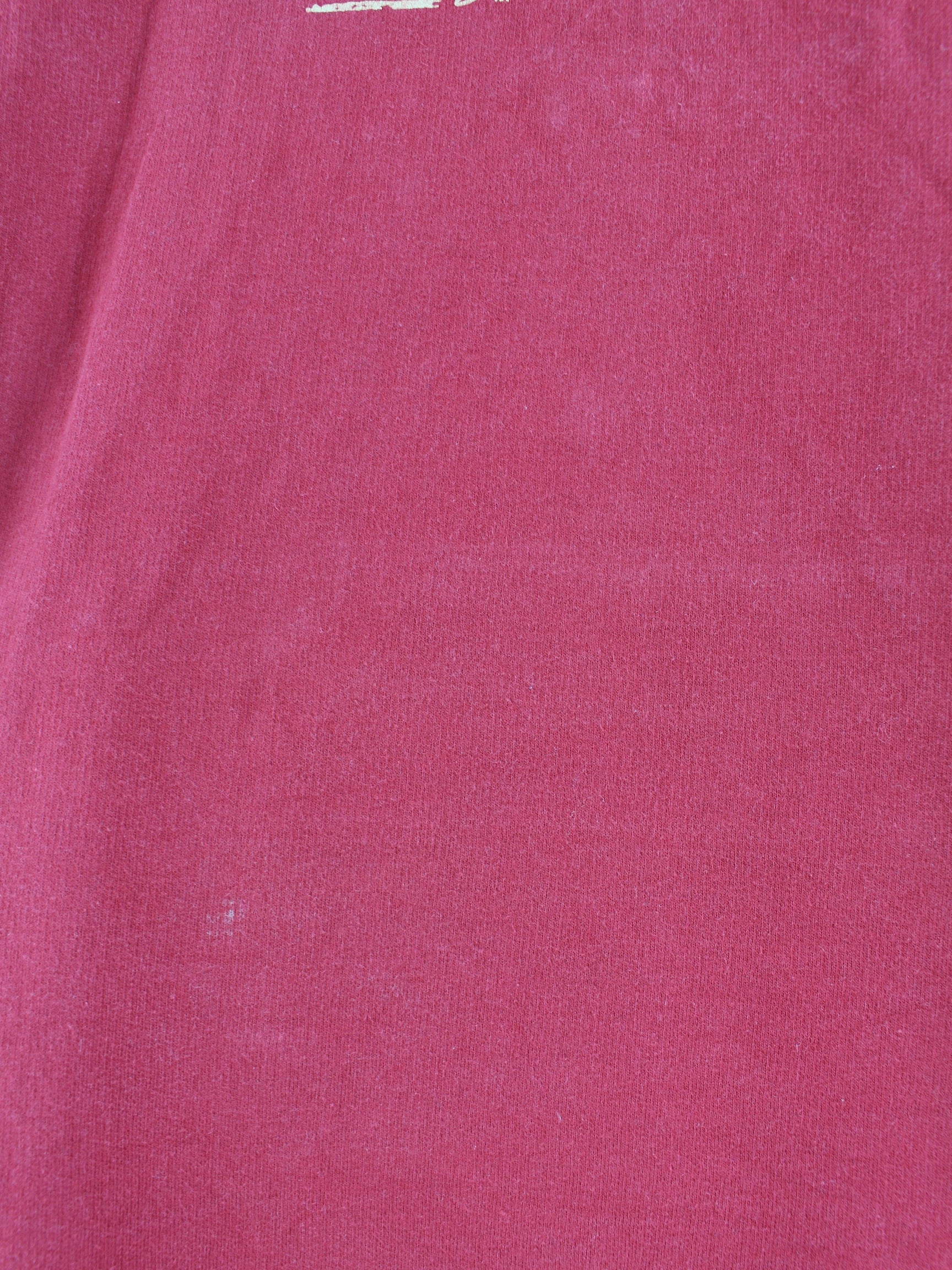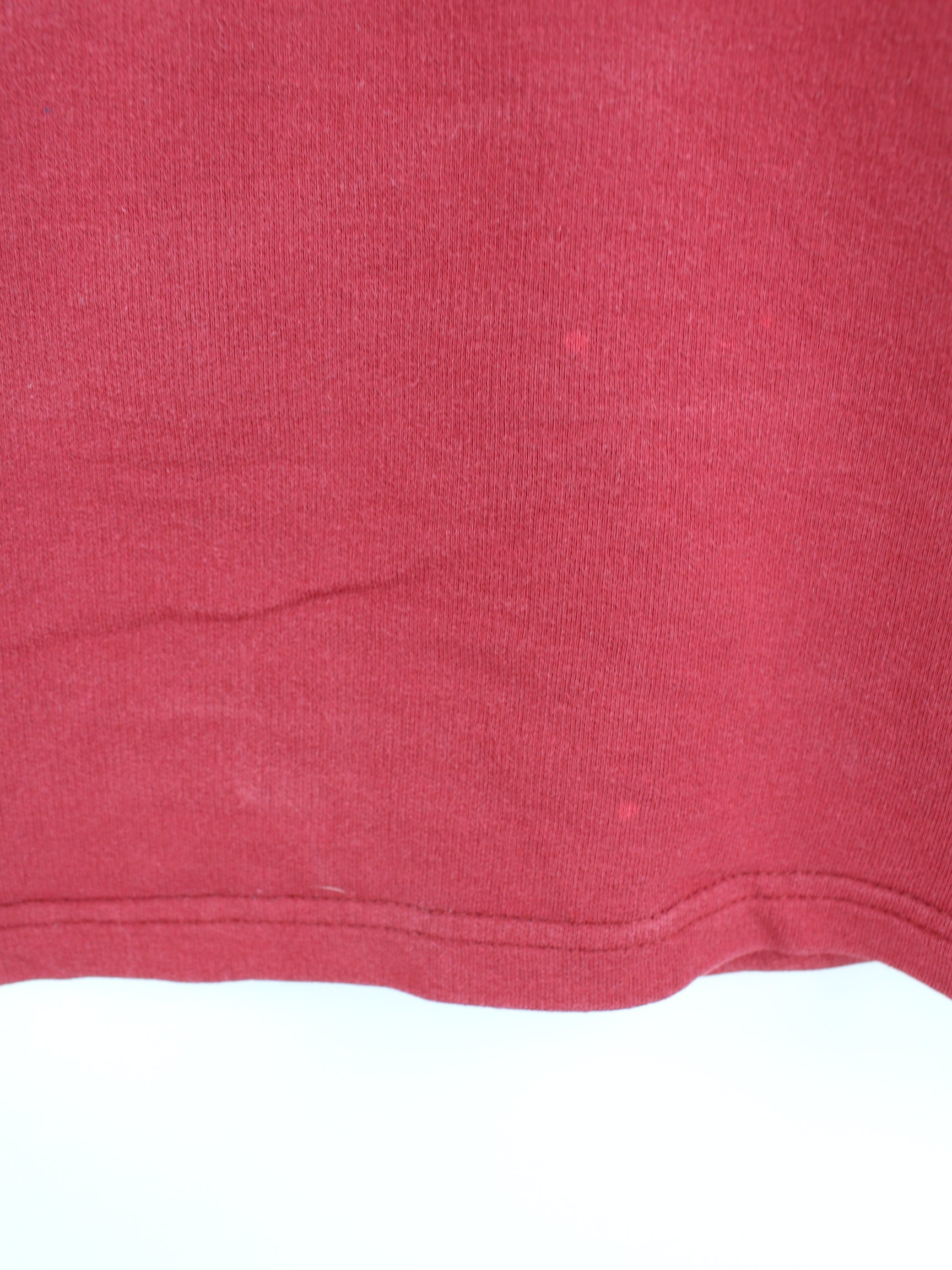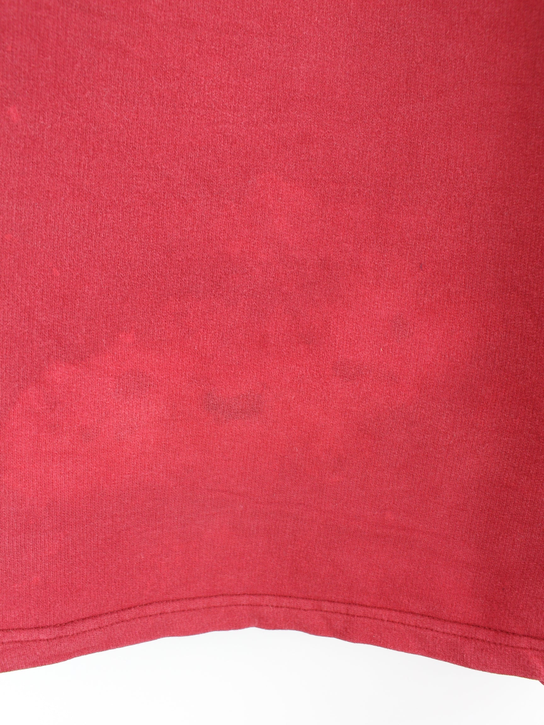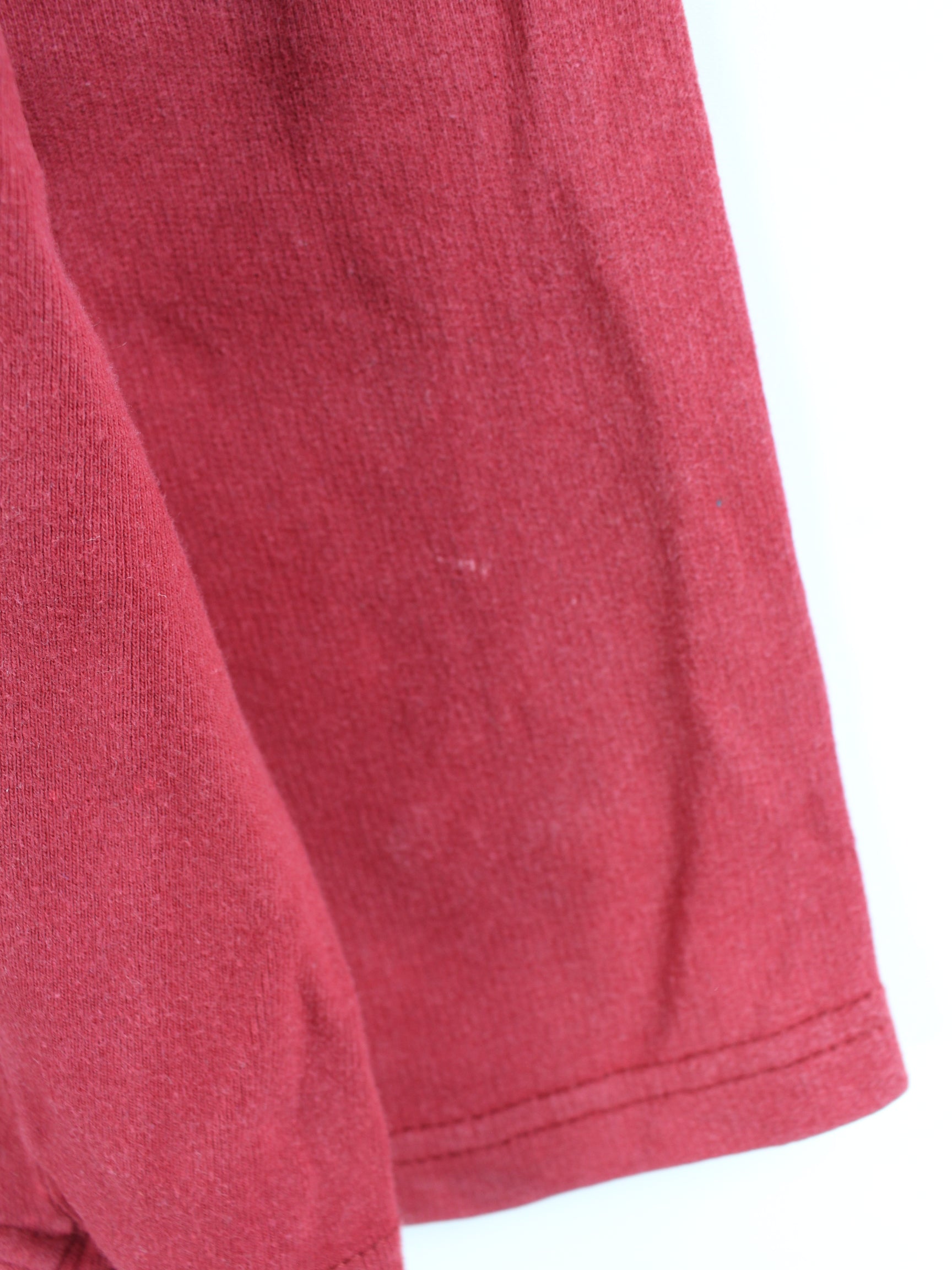 Vintage Sweater mit halbem Reißverschluß in Größe M. Er ist aus einer Baumwollmischung hergestellt und in Rot lieferbar. Mit chiquem undefined Print.
