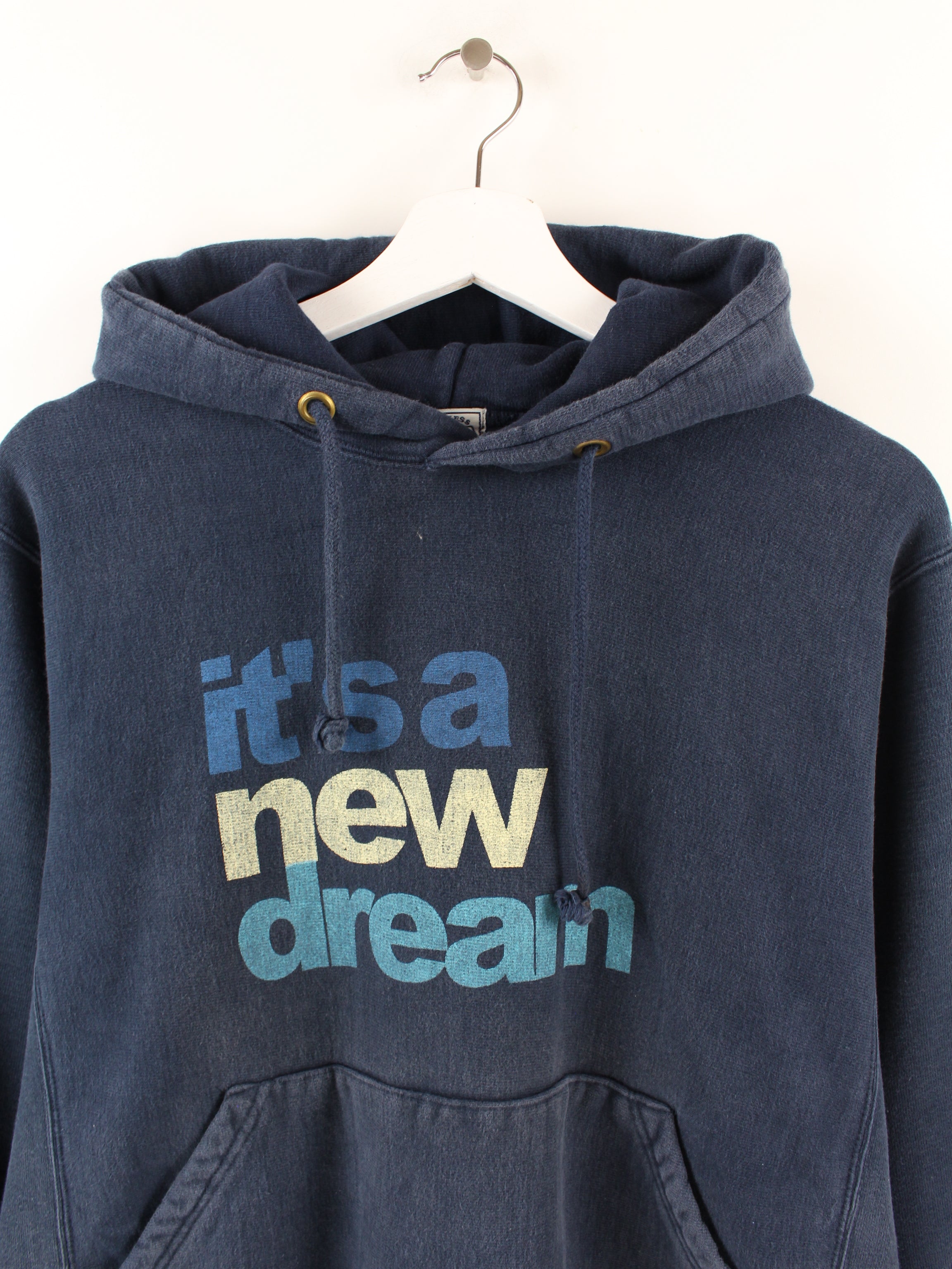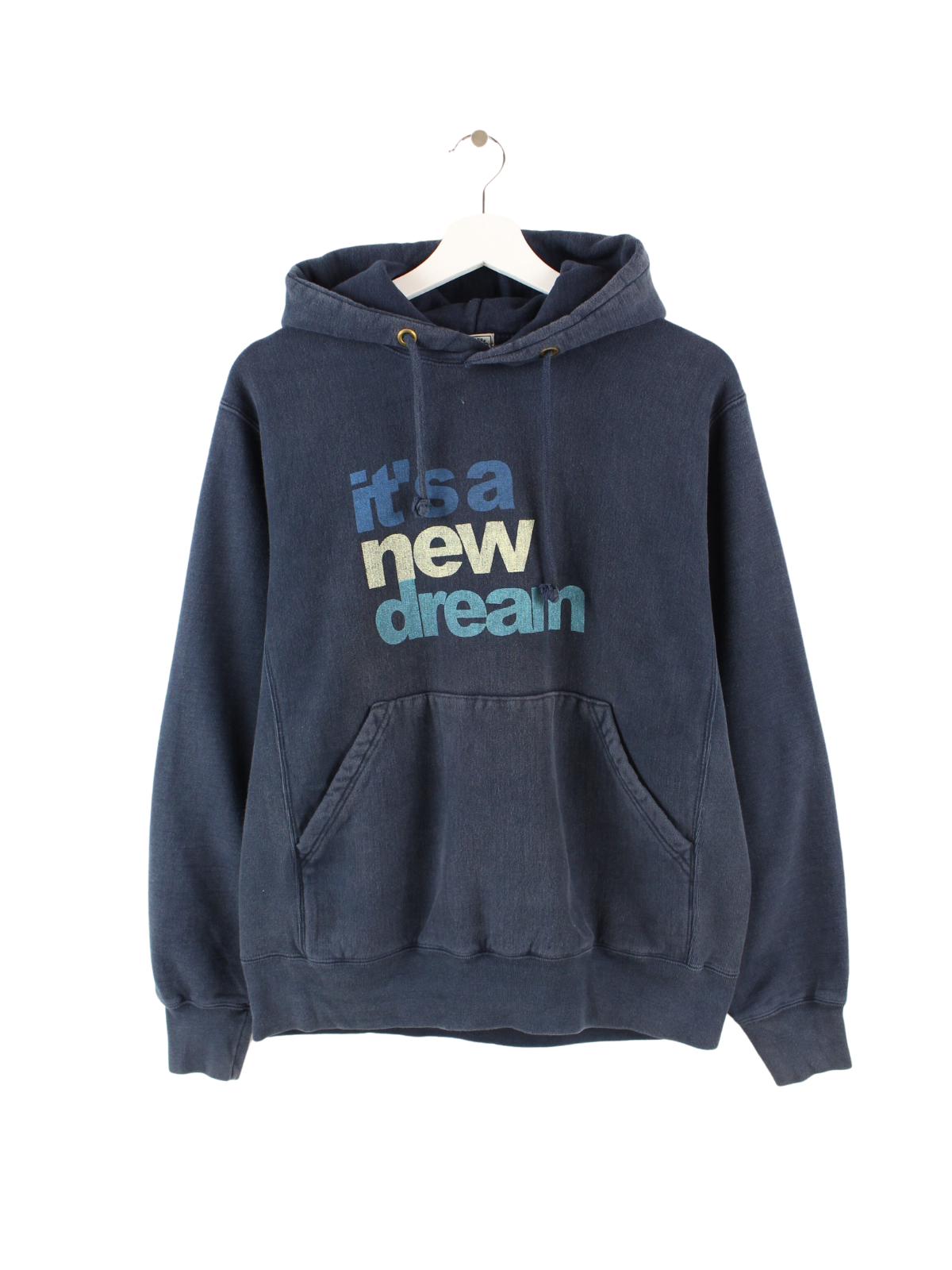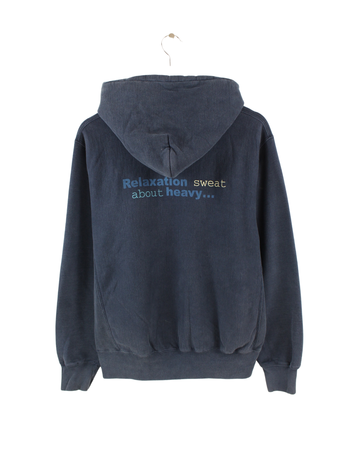 Blauer Heavyweight Hoodie mit Front- und Backprint.