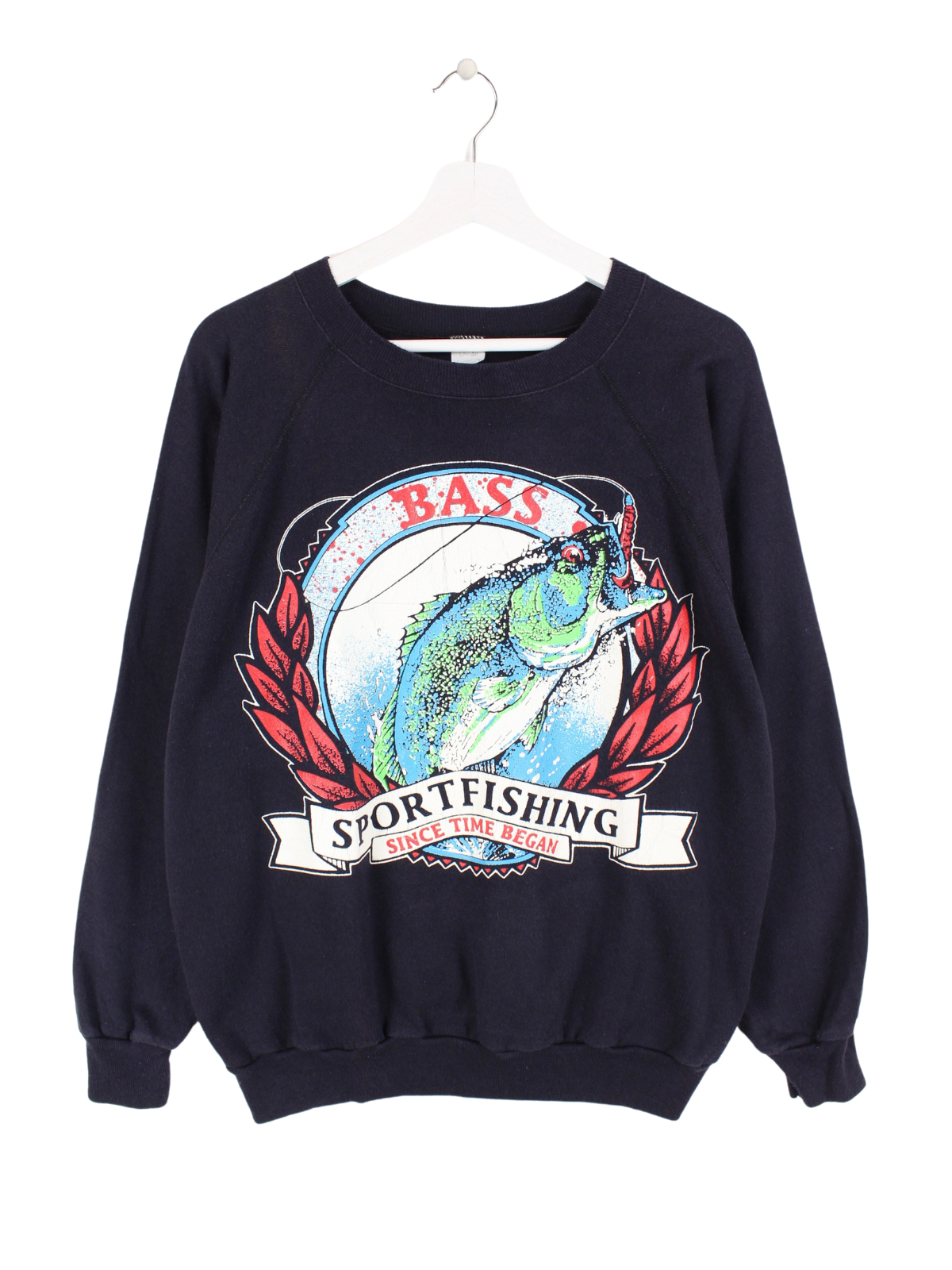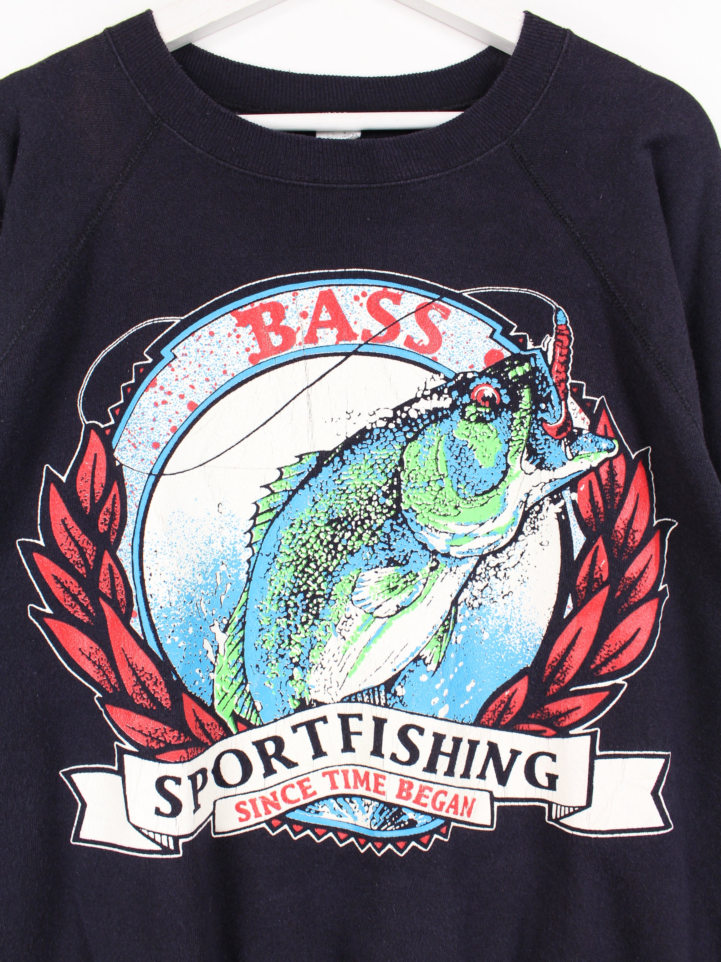 Schwarzer Vintage Fishing Print Sweater aus den 80s.