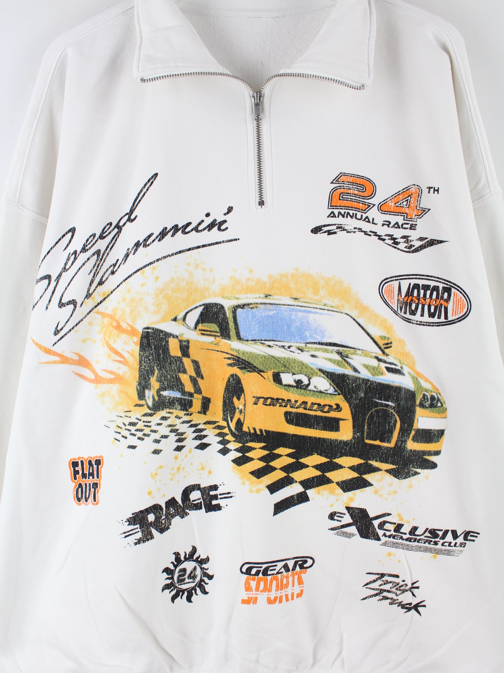 Vintage Racing Print Half Zip Sweater Weiß XXL