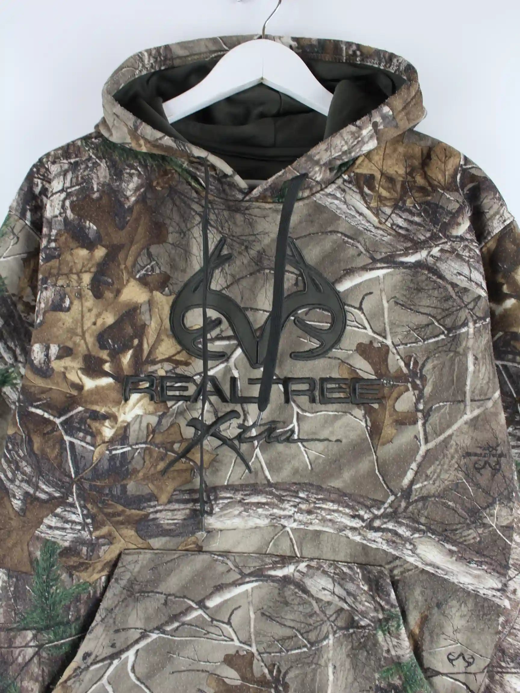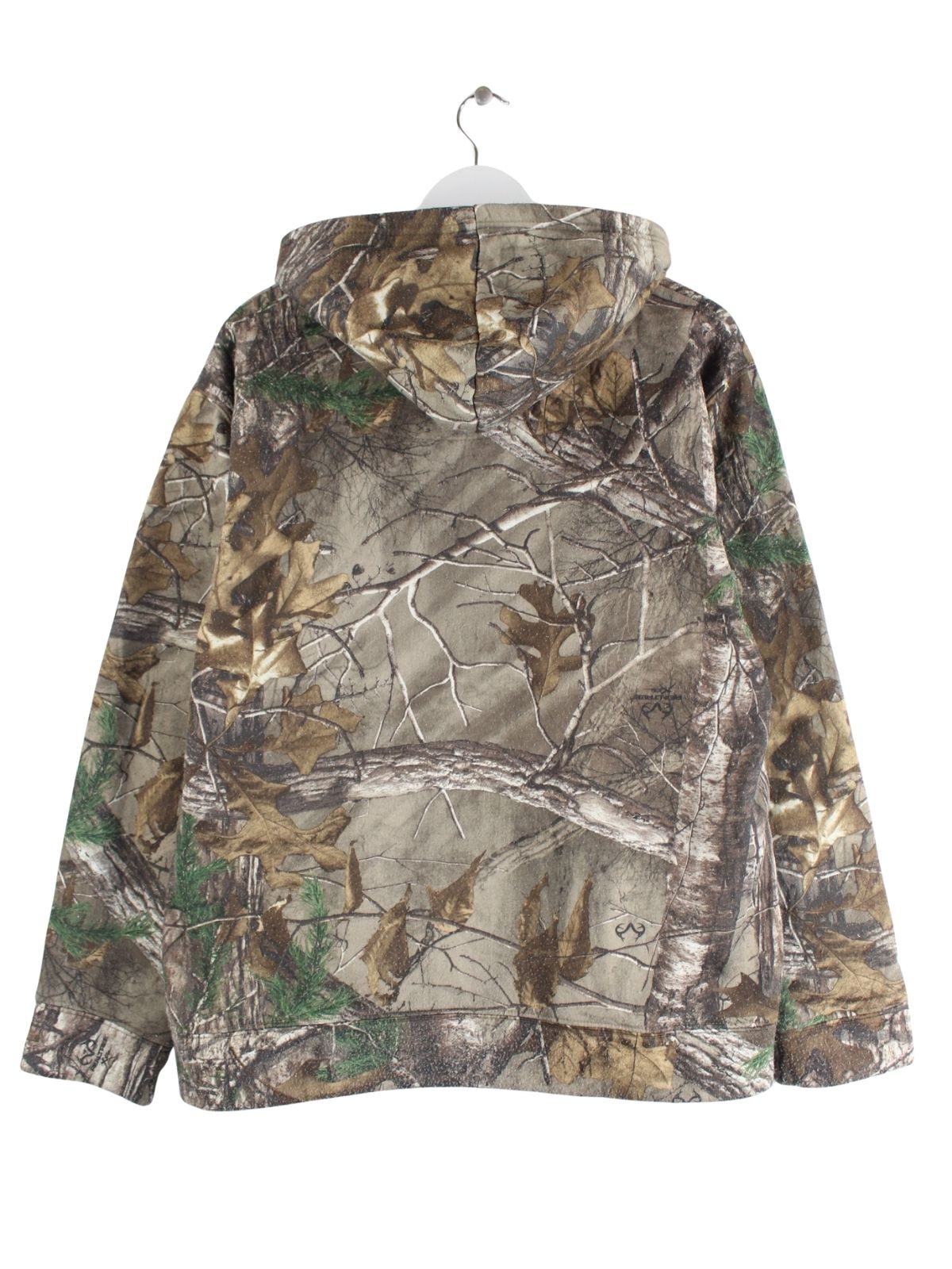 Brauner Vintage Hoodie in Größe L. Er ist aus einer Synthetikmischung gemacht und in gutem Zustand bei uns zu bekommen.