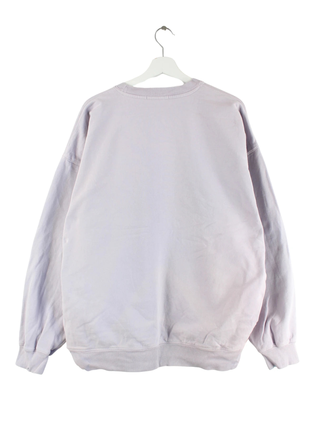 Lilafarbener Vintage Sweater mit gesticktem Logo in Größe XL. Er ist aus einer Baumwollmischung und in gutem Zustand bei uns zu bekommen.