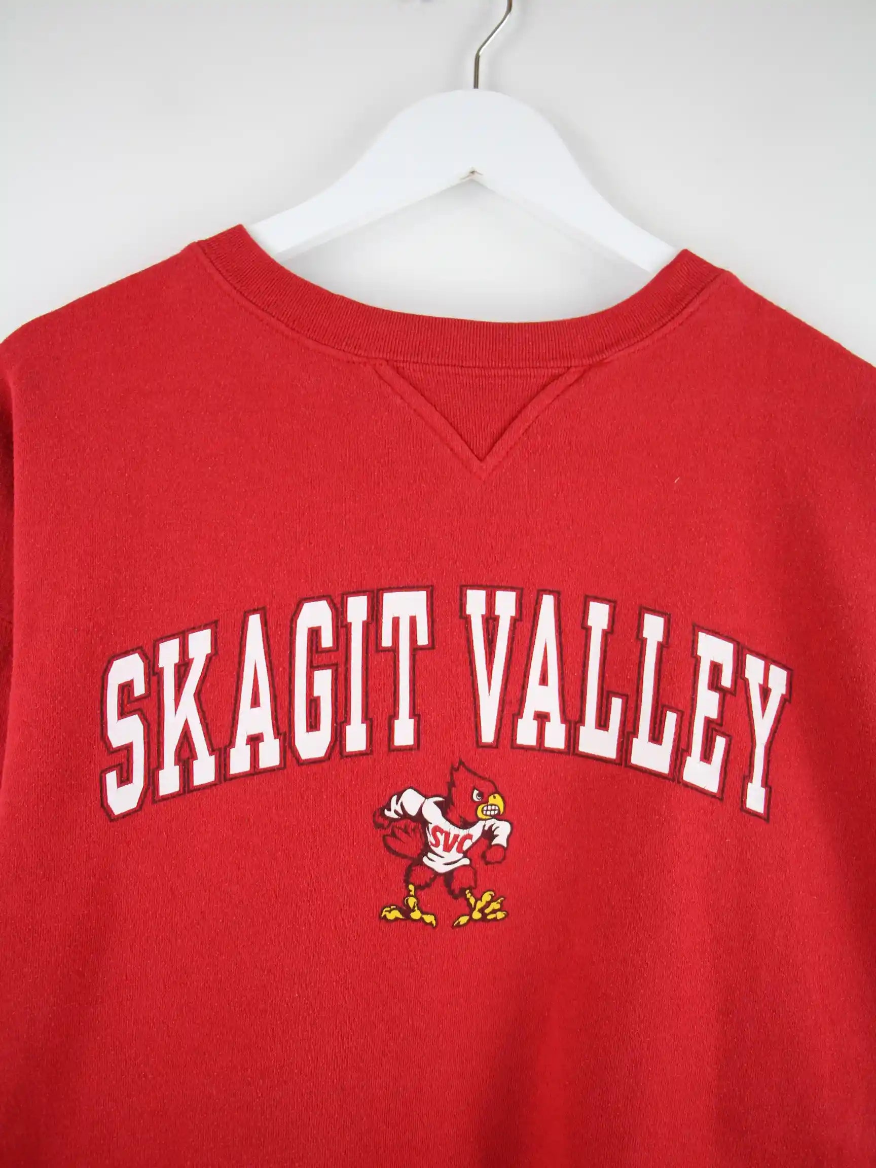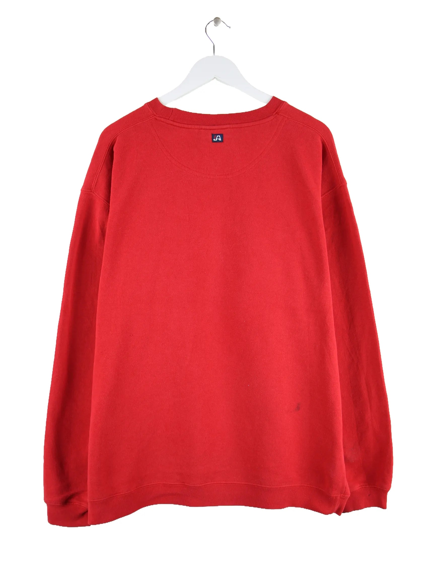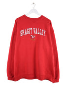 Vintage Sweater in Größe XL. Er ist aus einer Baumwollmischung angefertigt und in Rot auf Lager. Mit chiquem Valley Print.
