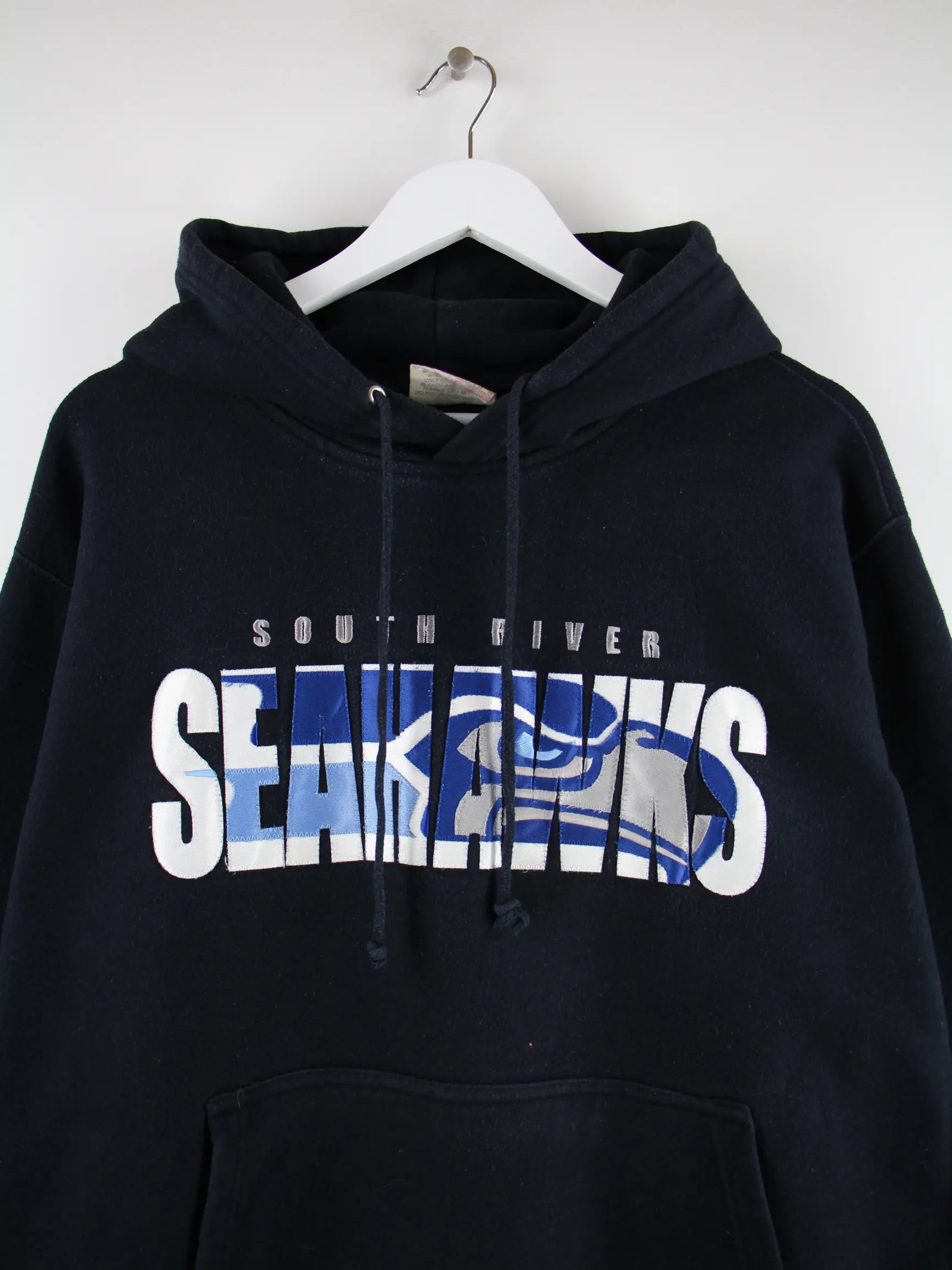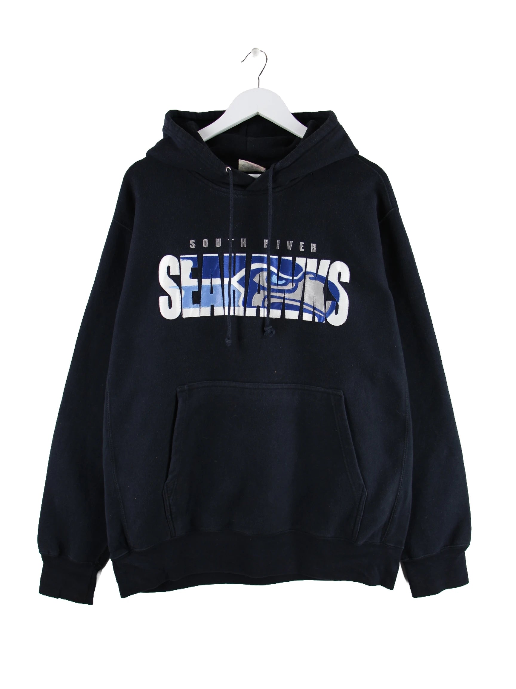 Vintage Hoodie in Größe L. Er ist aus einer Baumwollmischung produziert und in Schwarz zu haben.